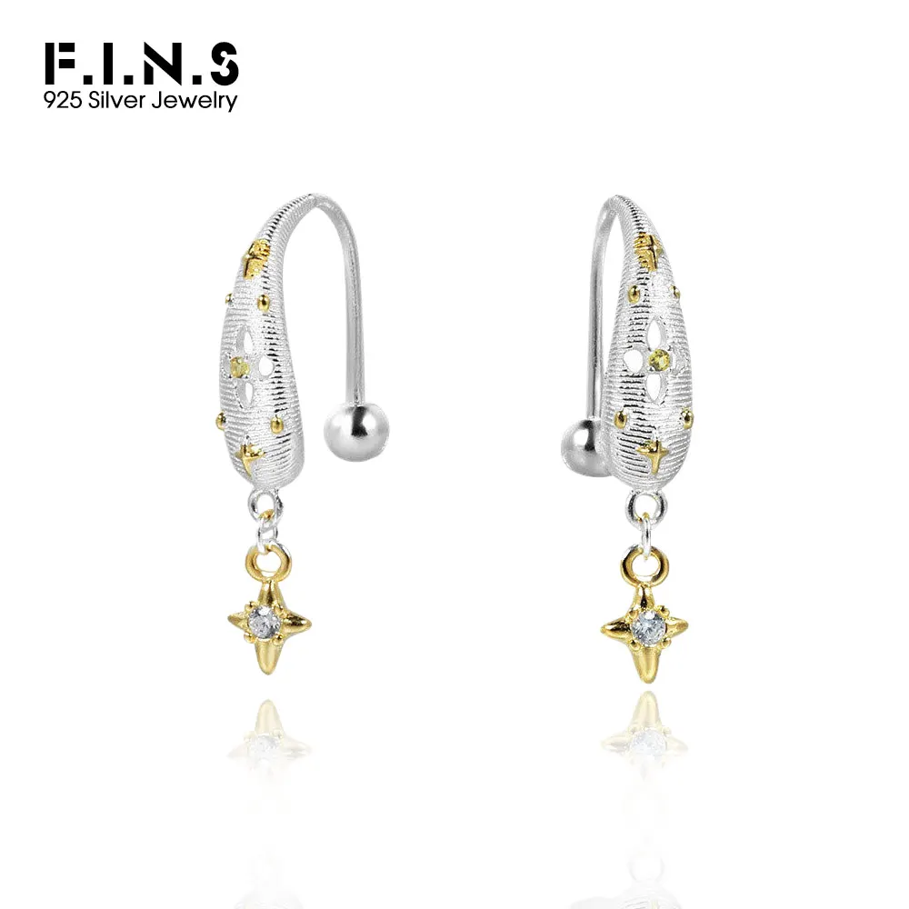 F.I.N.S Original Brushed S925 Sterling Silver Hook Earrings Elegant Screw Bead Color Separation Gold Star Piercing Ear Drops