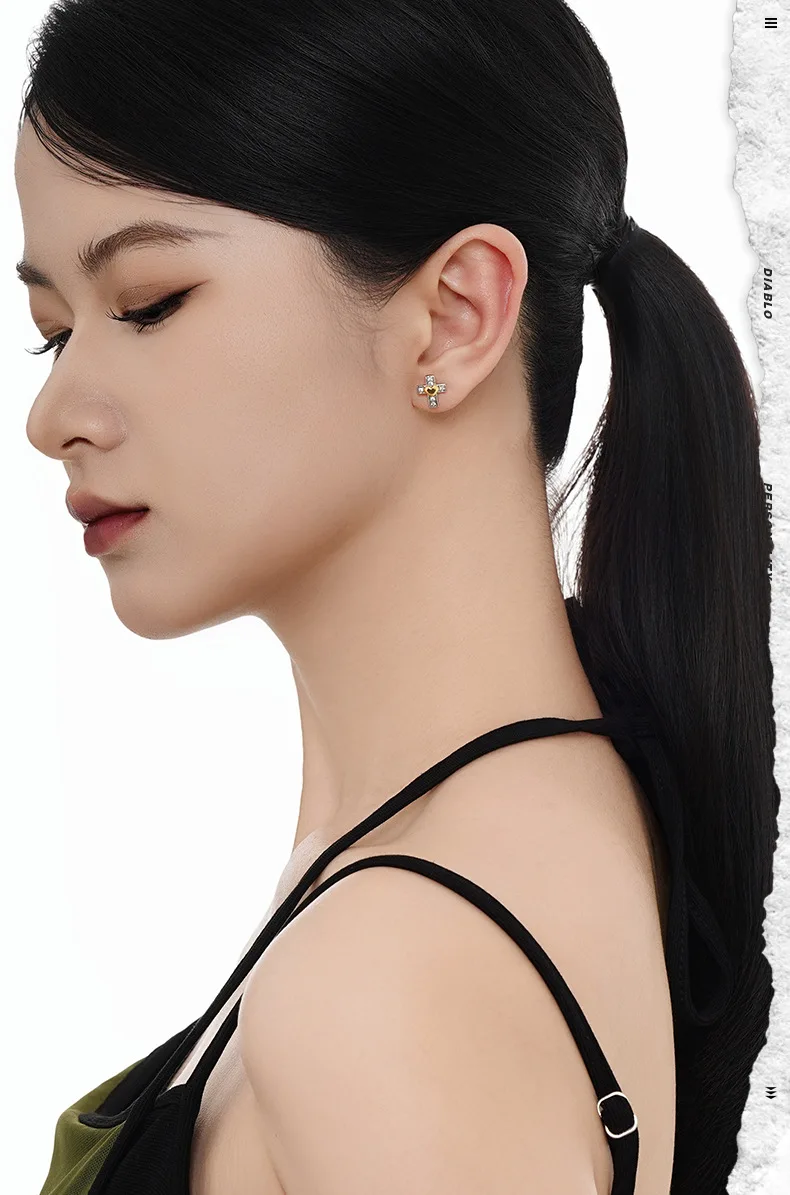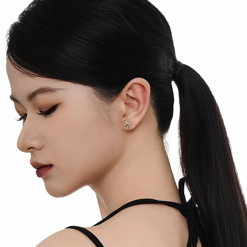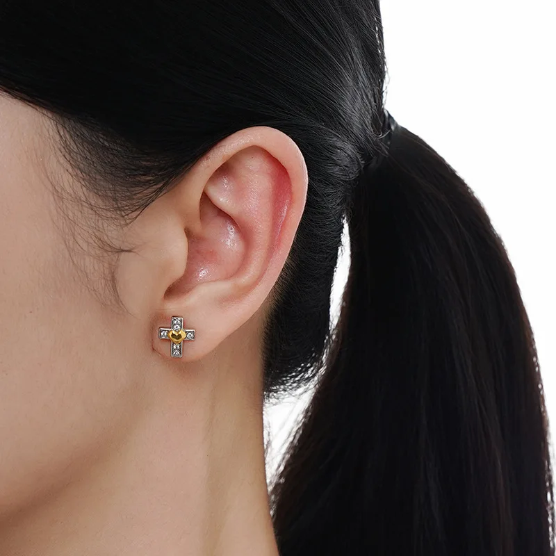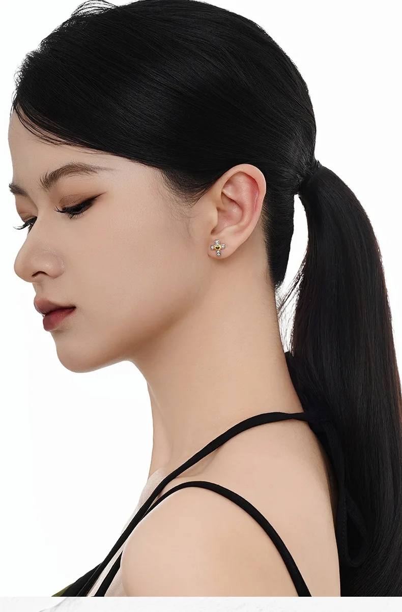 Jewel Type : F.I.N.S Original Color Separation S925 Sterling Silver Zircon Cross Earrings Small Love Heart Piercing Ear Studs Fine Jewelry