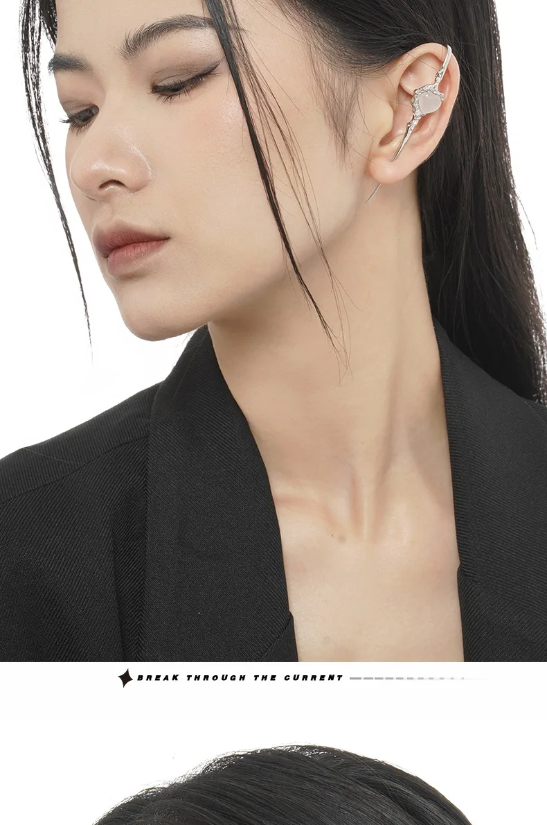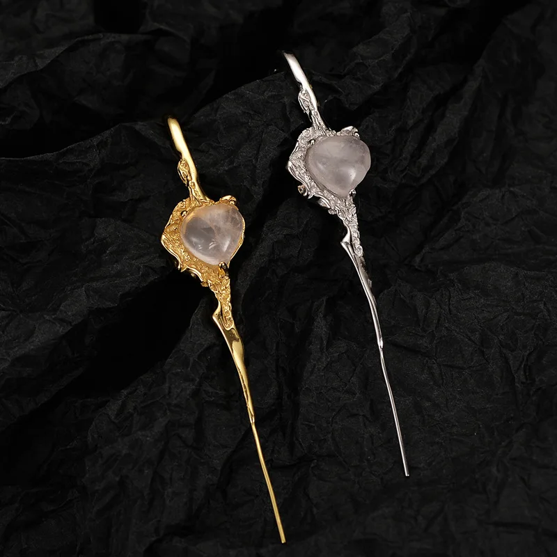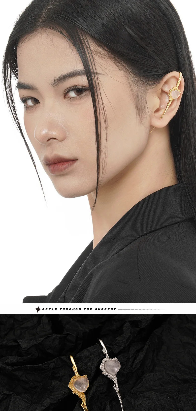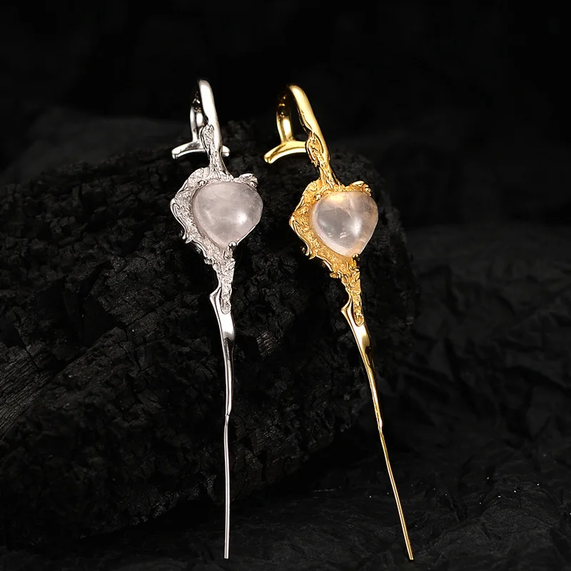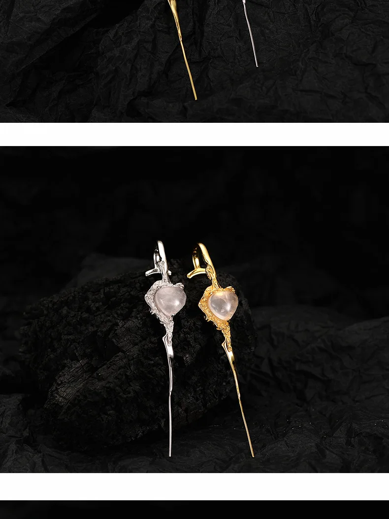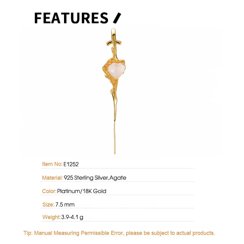 Jewel Type : F.I.N.S Original Design Irregular Powder Stone Heart S925 Sterling Silver Piercing Earrings Studs Long Catilage Fine Jewelry