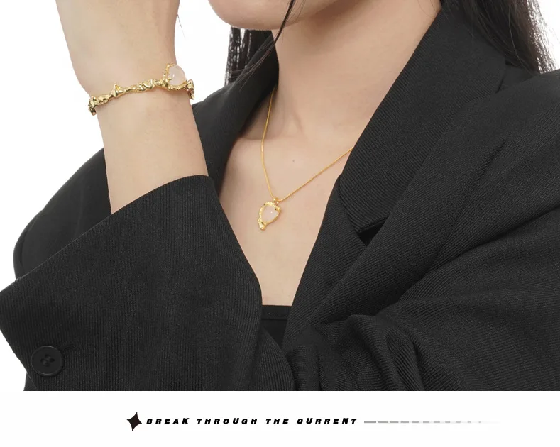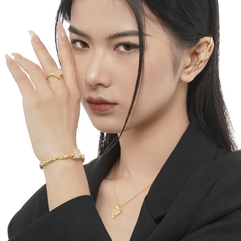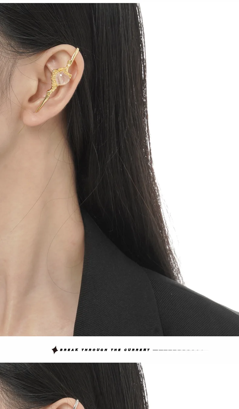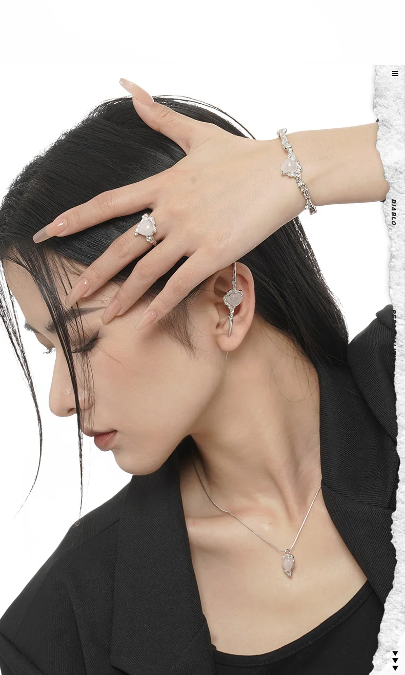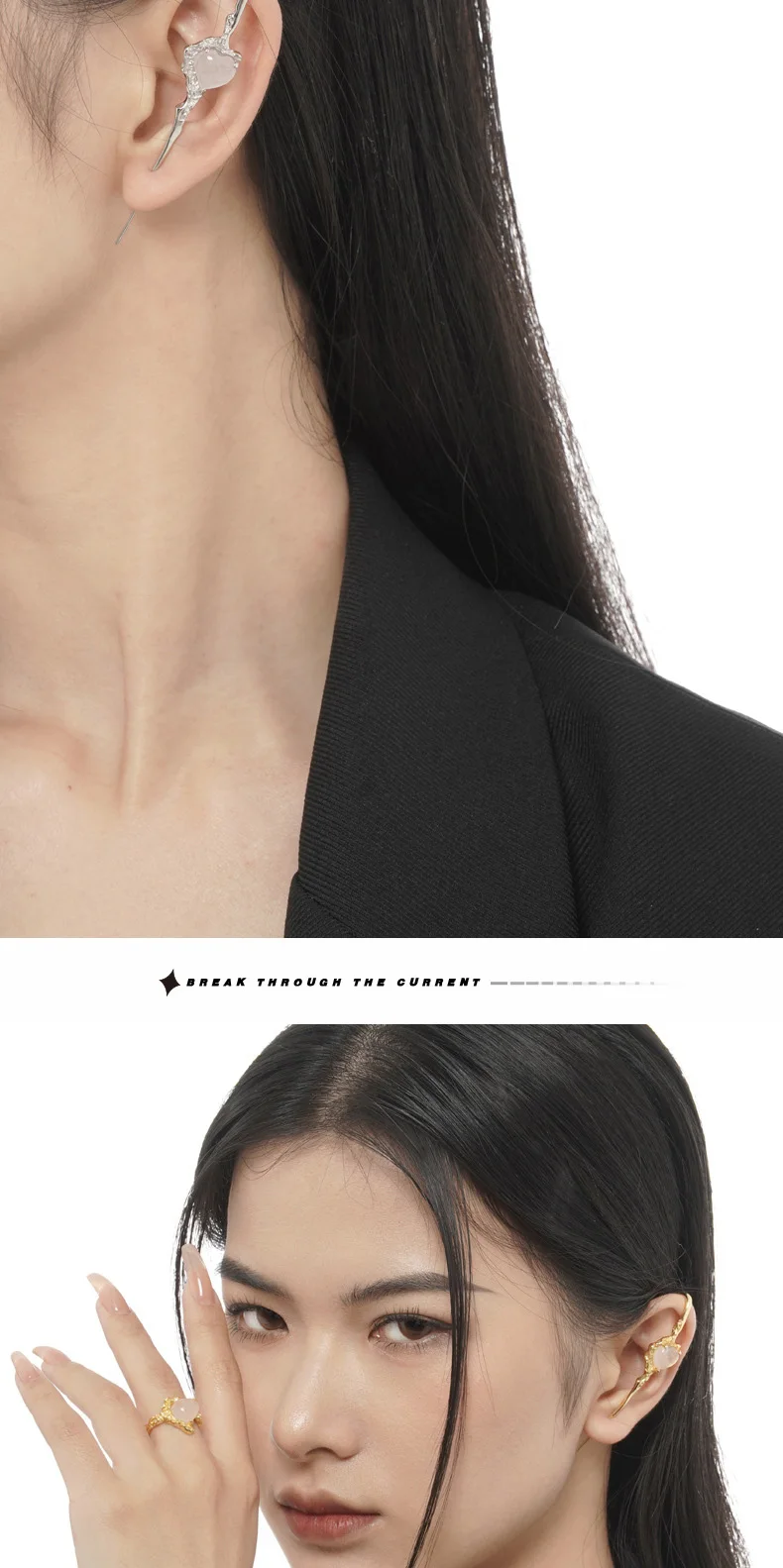 Jewel Type : F.I.N.S Original Design Irregular Powder Stone Heart S925 Sterling Silver Piercing Earrings Studs Long Catilage Fine Jewelry
