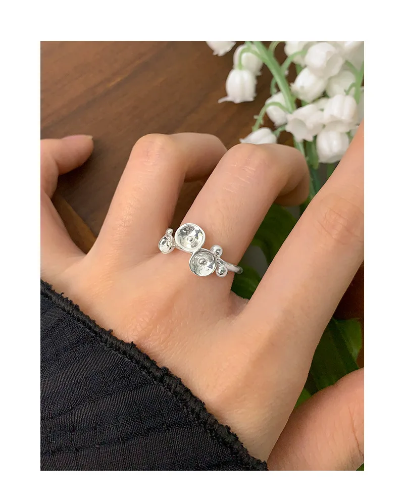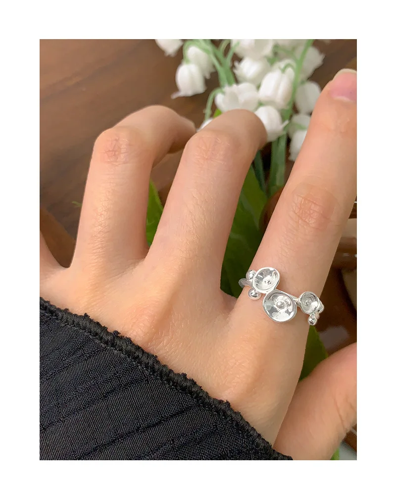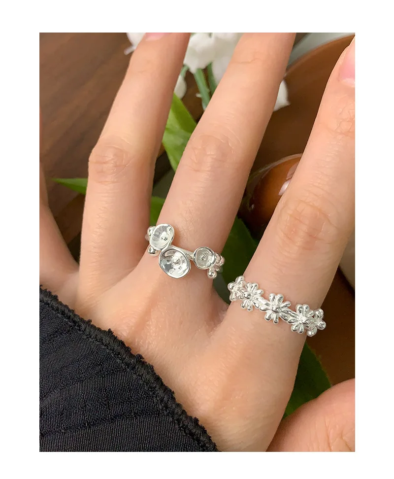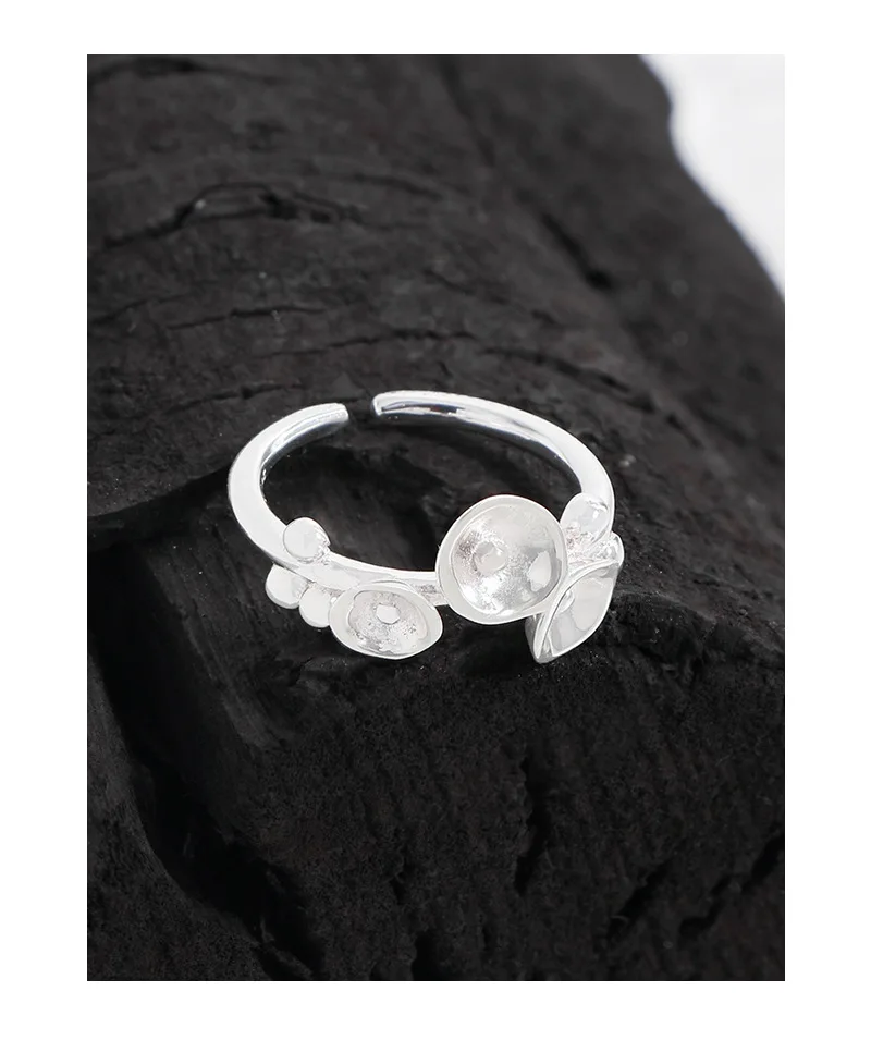 Jewel Type : F.I.N.S Original Design S925 Sterling Silver Open Ring For Women Unique Hyperbole Trumpet Flower Adjustable Finger Fine Jewelry