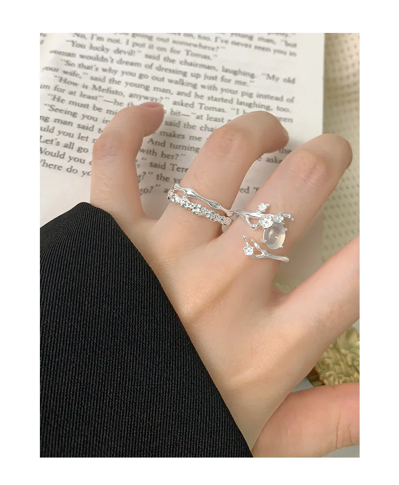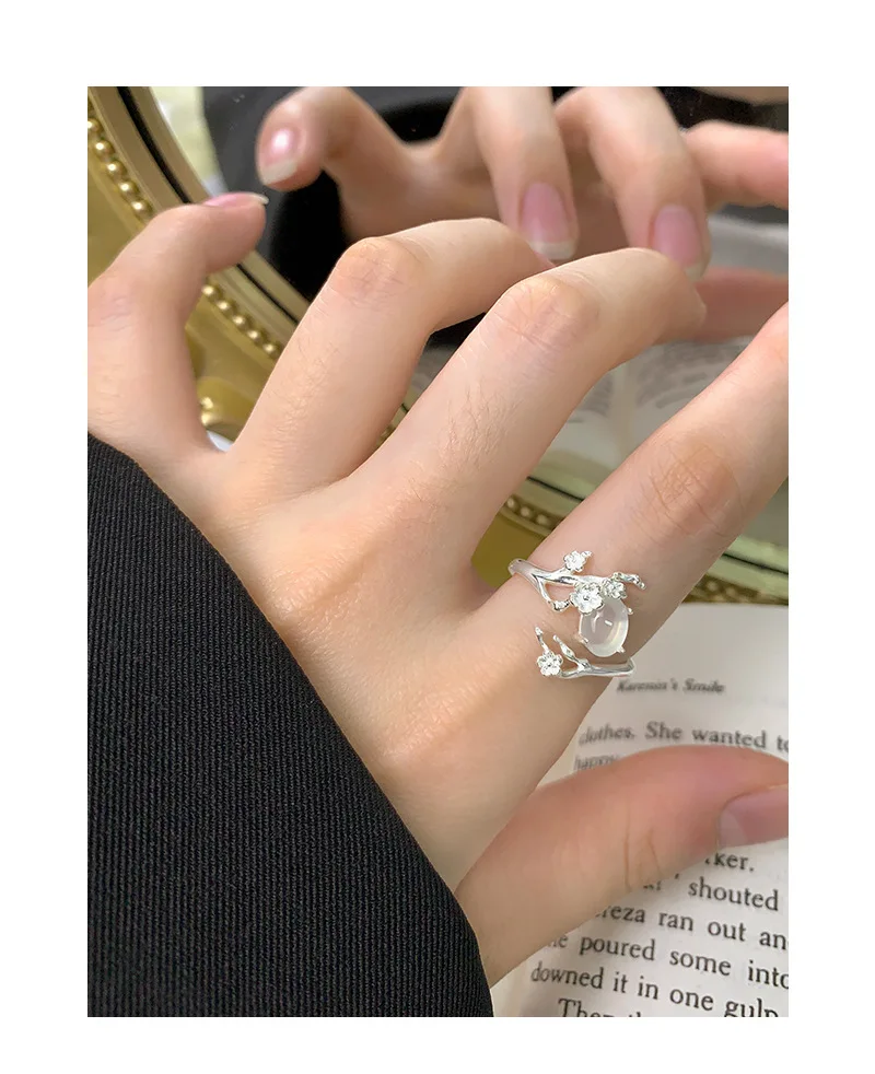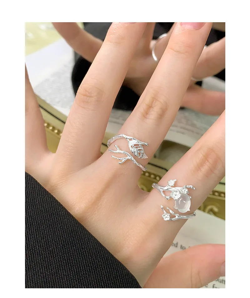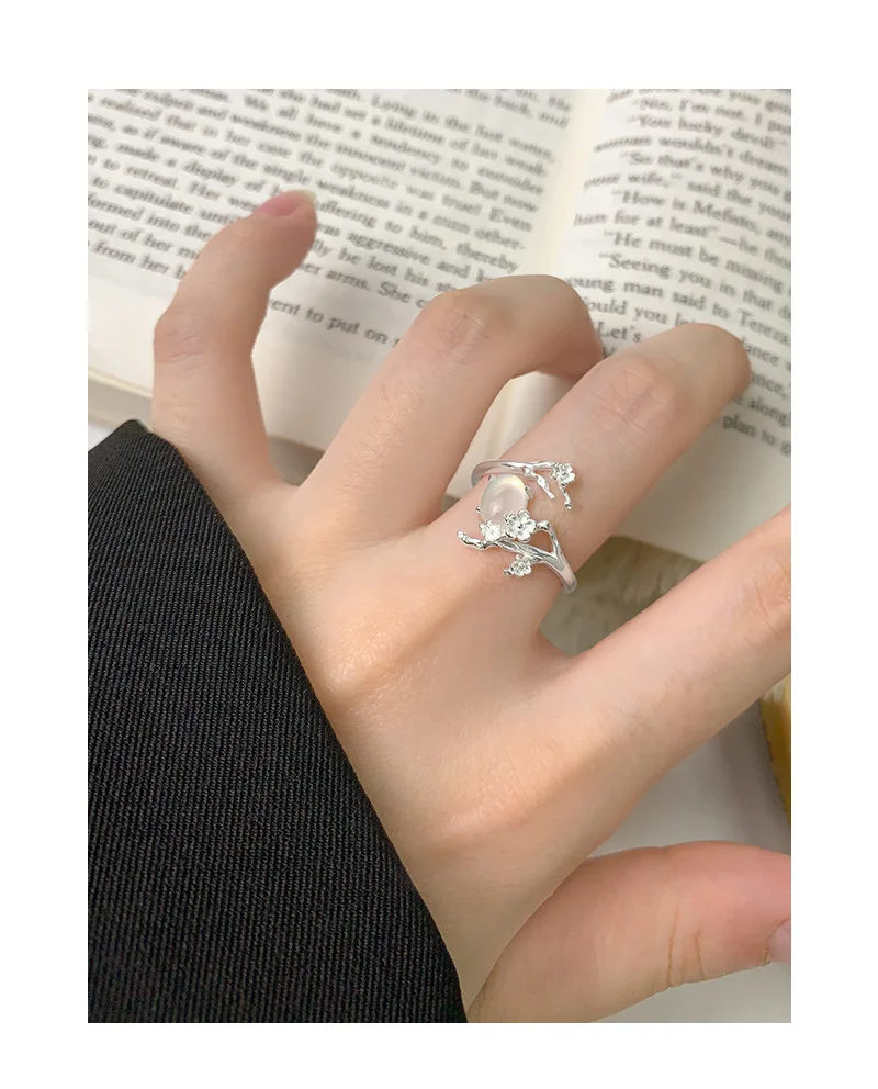 Jewel Type : F.I.N.S Original Design S925 Sterling Silver Ring Plum White Agate Open Adjustable Flower Finger Fine Jewelry Anti-Allergic