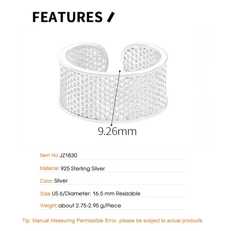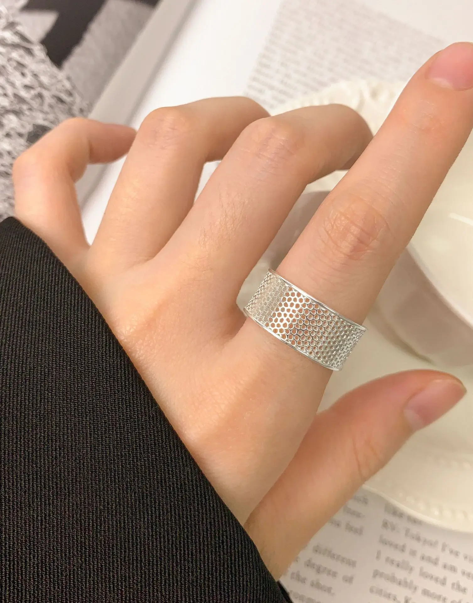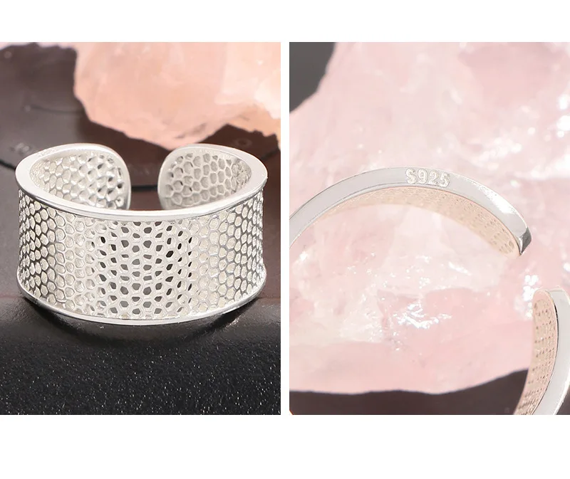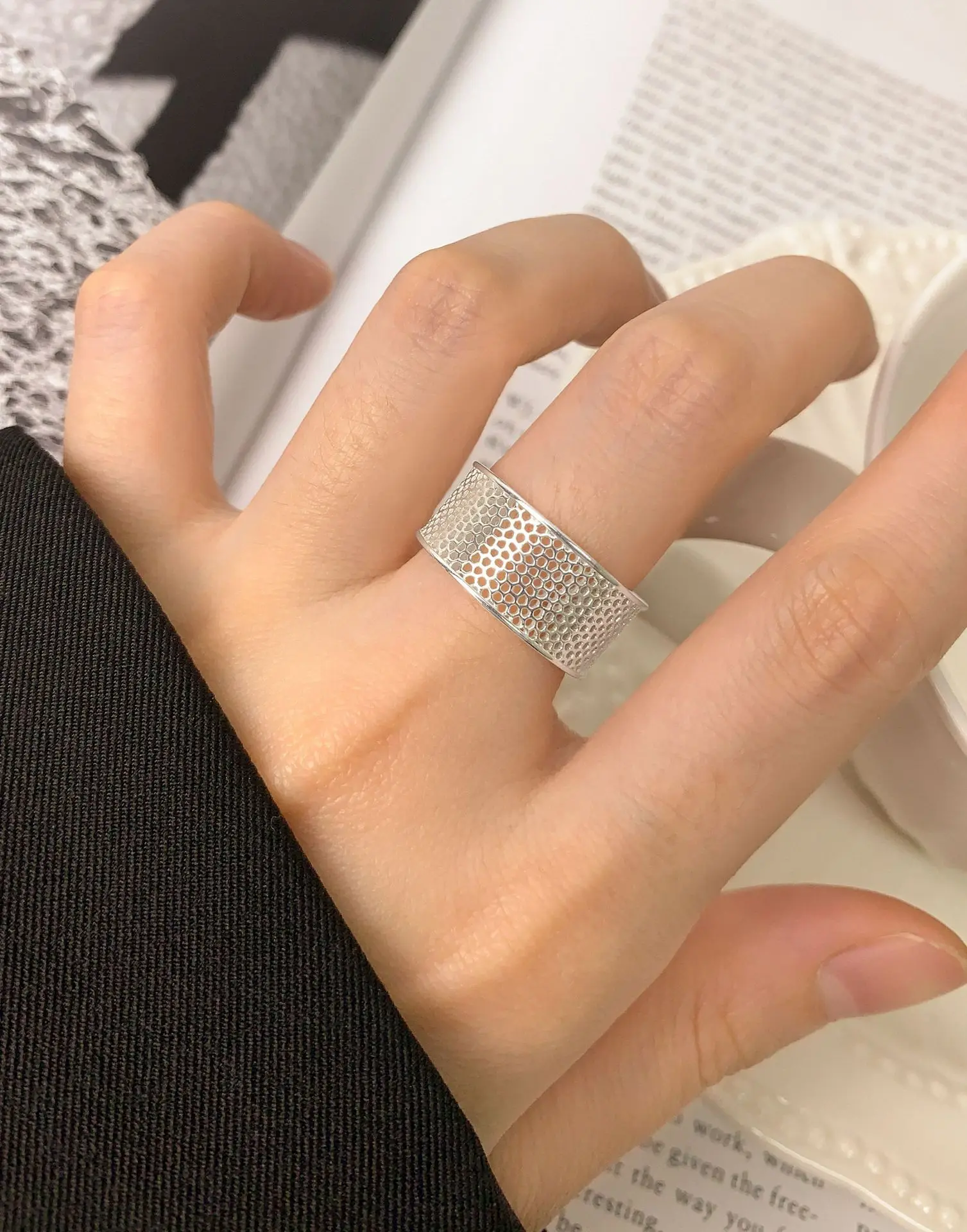 Jewel Type : F.I.N.S Original Hollow Grid S925 Sterling Silver Ring Wide Honeycomb Open Adjustable Index Finger Fine Jewelry For Women Men