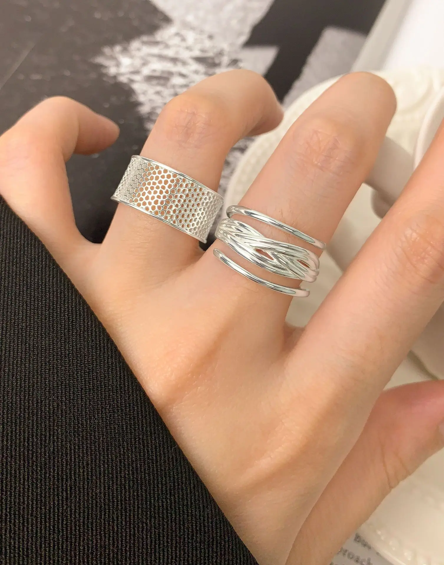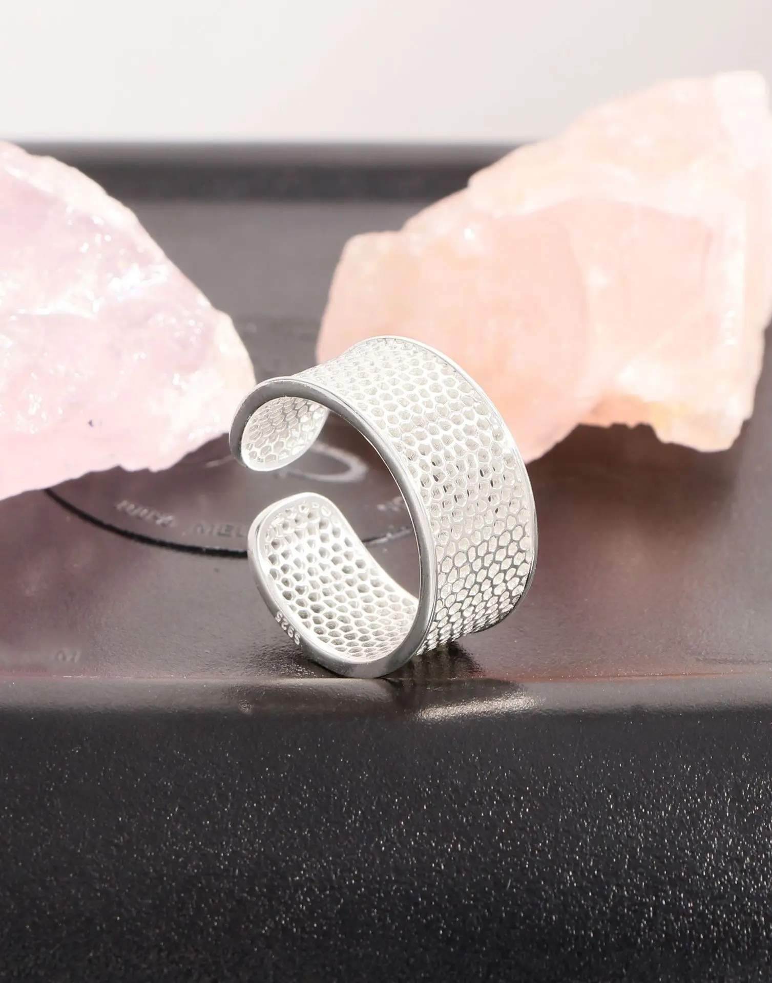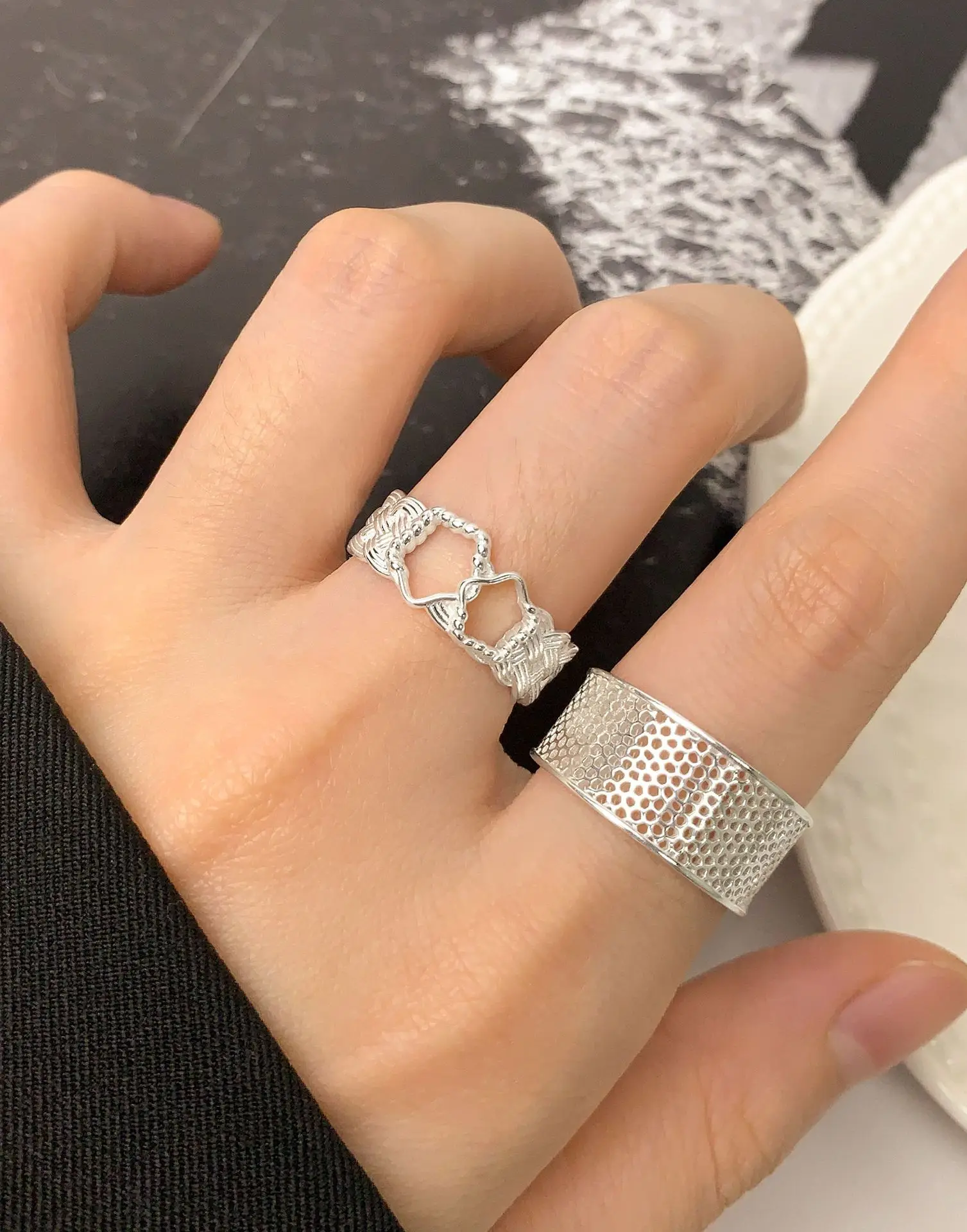 Jewel Type : F.I.N.S Original Hollow Grid S925 Sterling Silver Ring Wide Honeycomb Open Adjustable Index Finger Fine Jewelry For Women Men