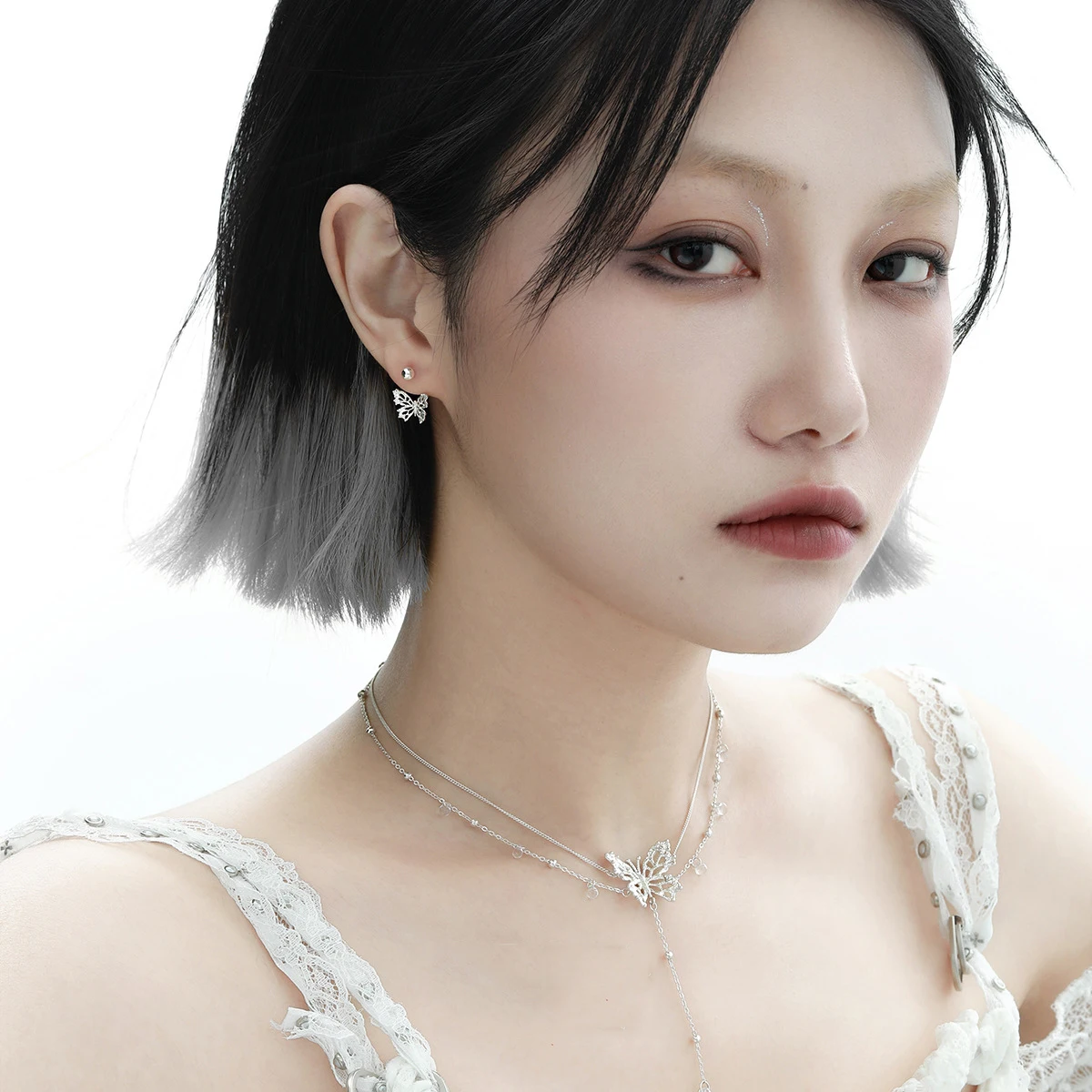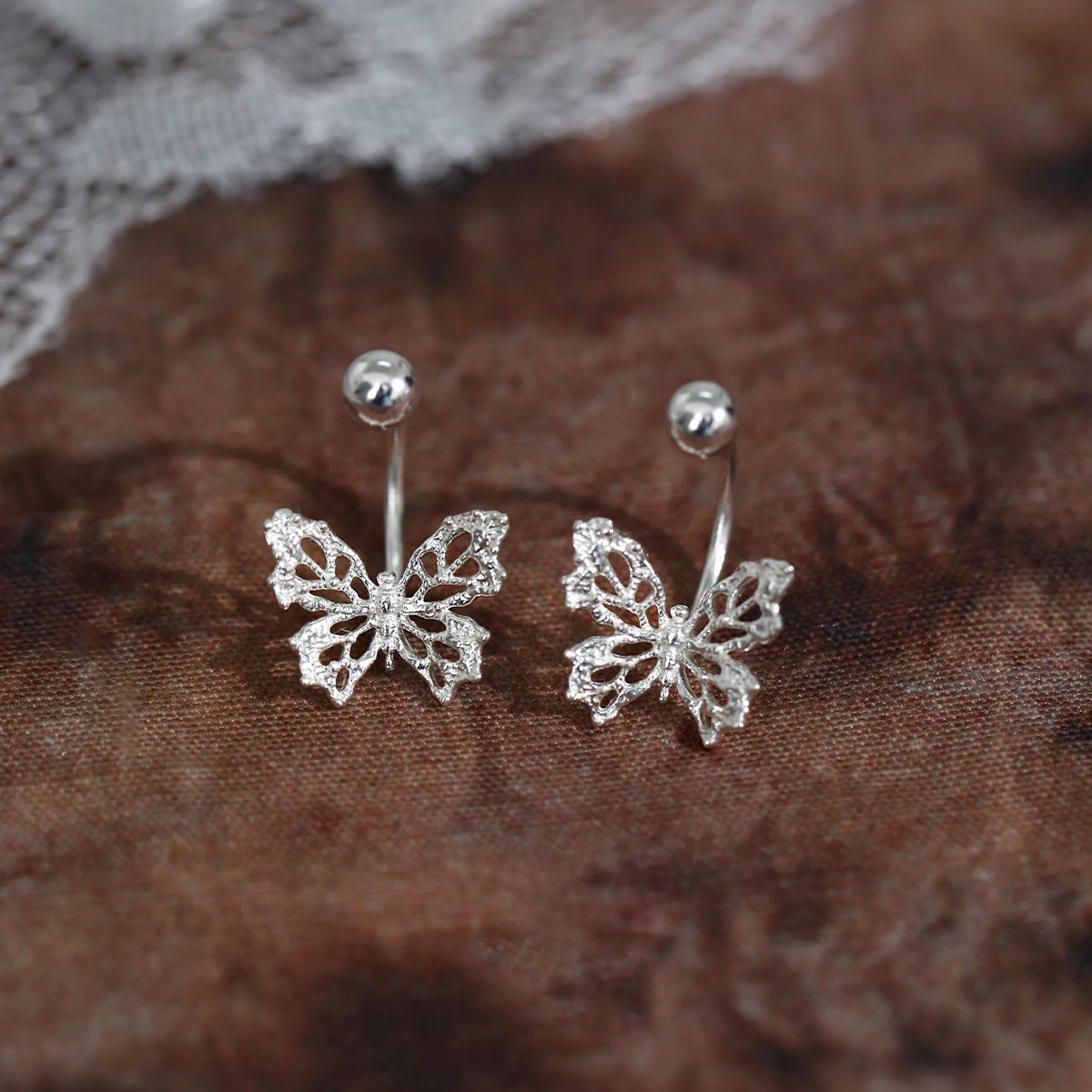 F.I.N.S Original Lace Butterfly S925 Sterling Silver Earrings Hollowed Piercing Small Ear Studs Fashion Fine Jewelry Accessories
