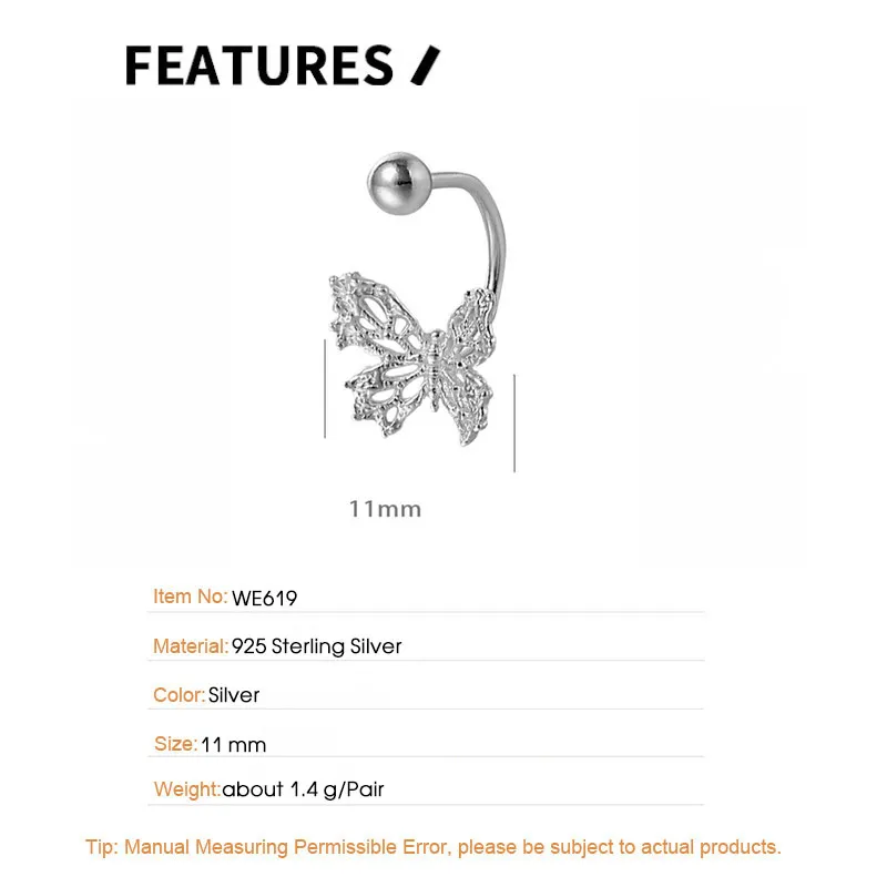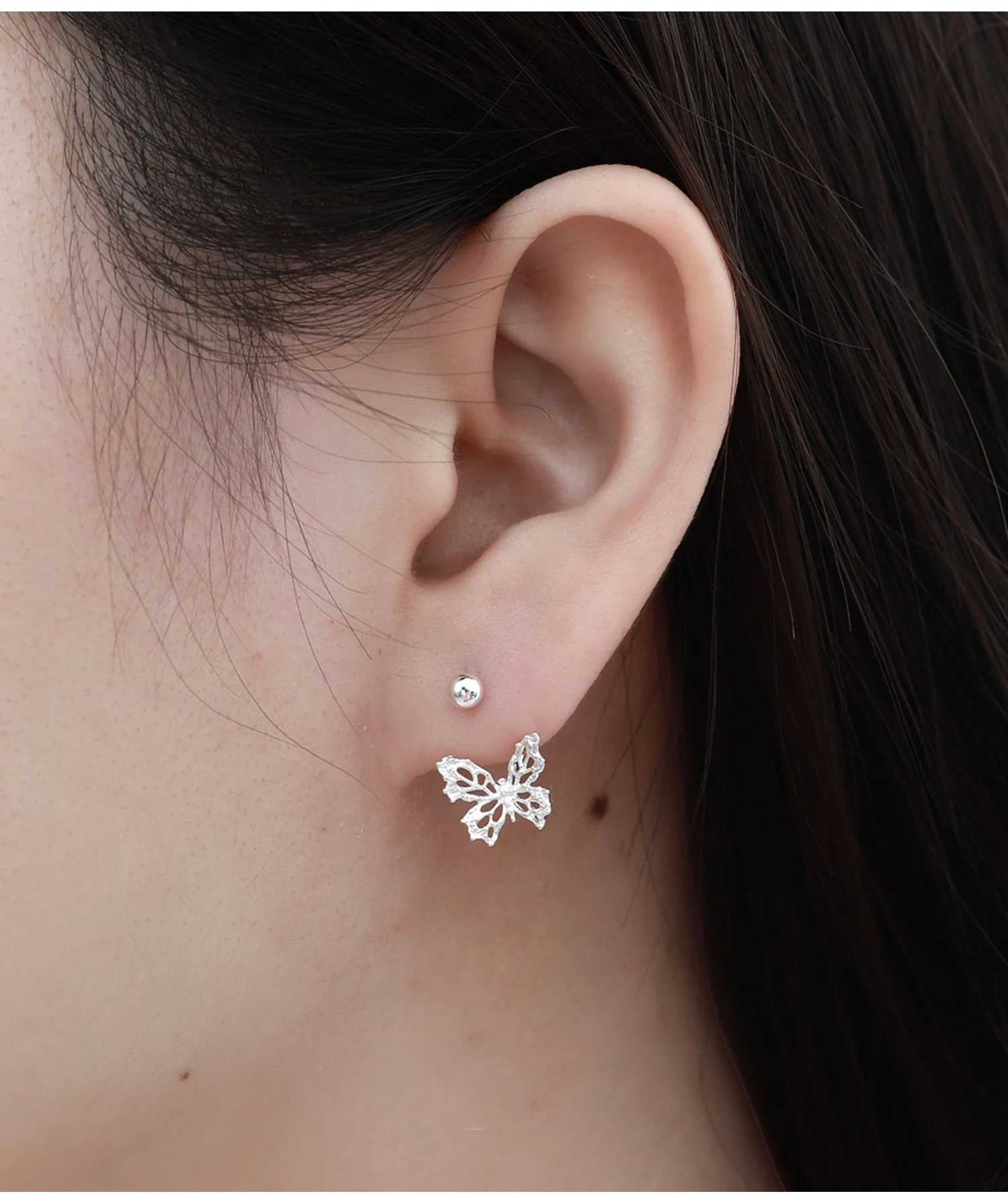 Jewel Type : F.I.N.S Original Lace Butterfly S925 Sterling Silver Earrings Hollowed Piercing Small Ear Studs Fashion Fine Jewelry Accessories