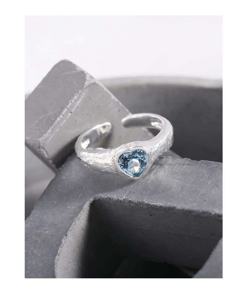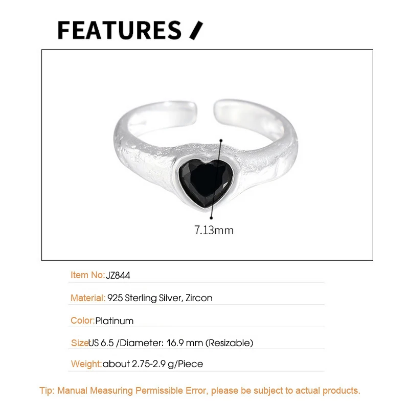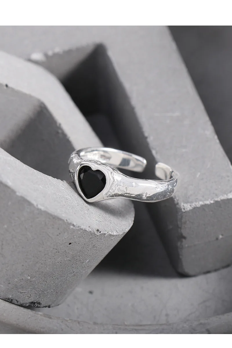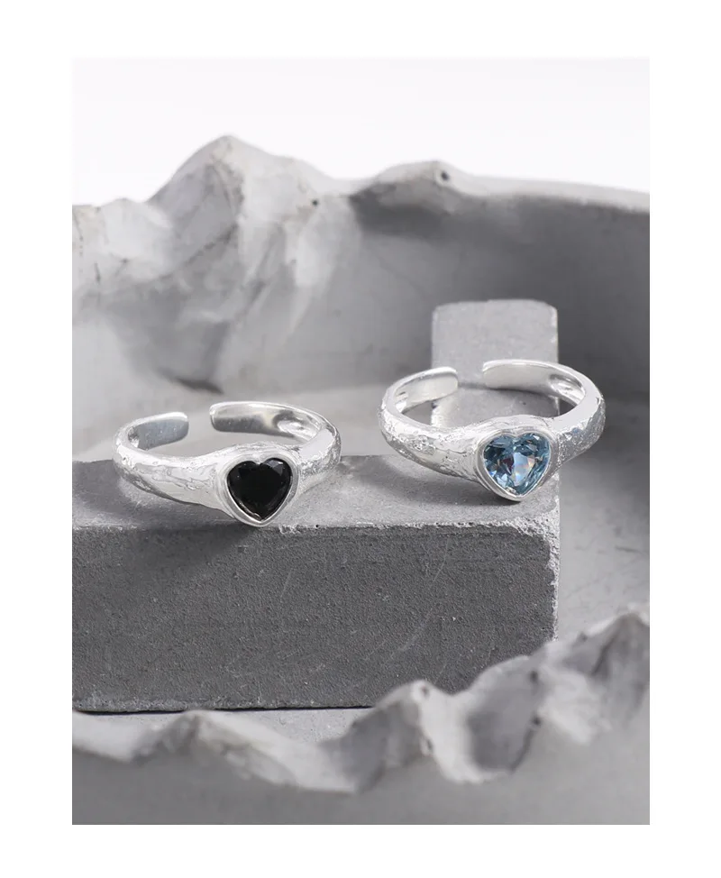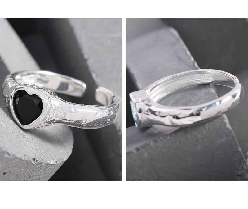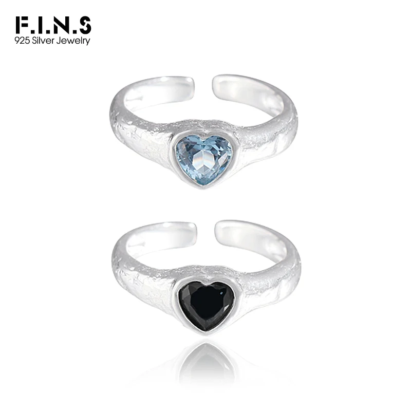 Jewel Type : F.I.N.S Original Luxury Tin Foil Texture Heart Zircon S925 Sterling Silver Ring Open Adjustable Wedding Engagement Finger Jewels
