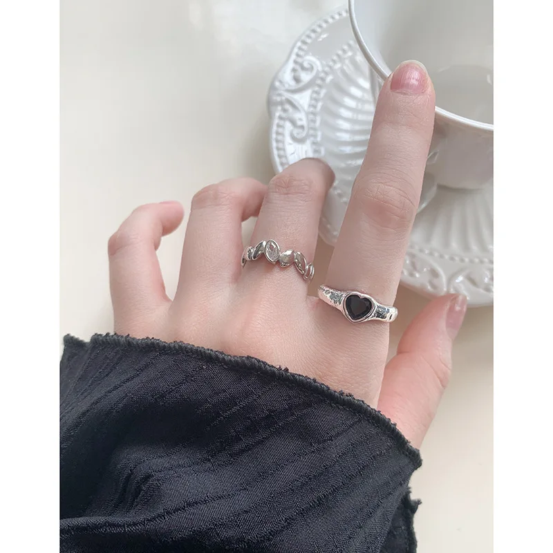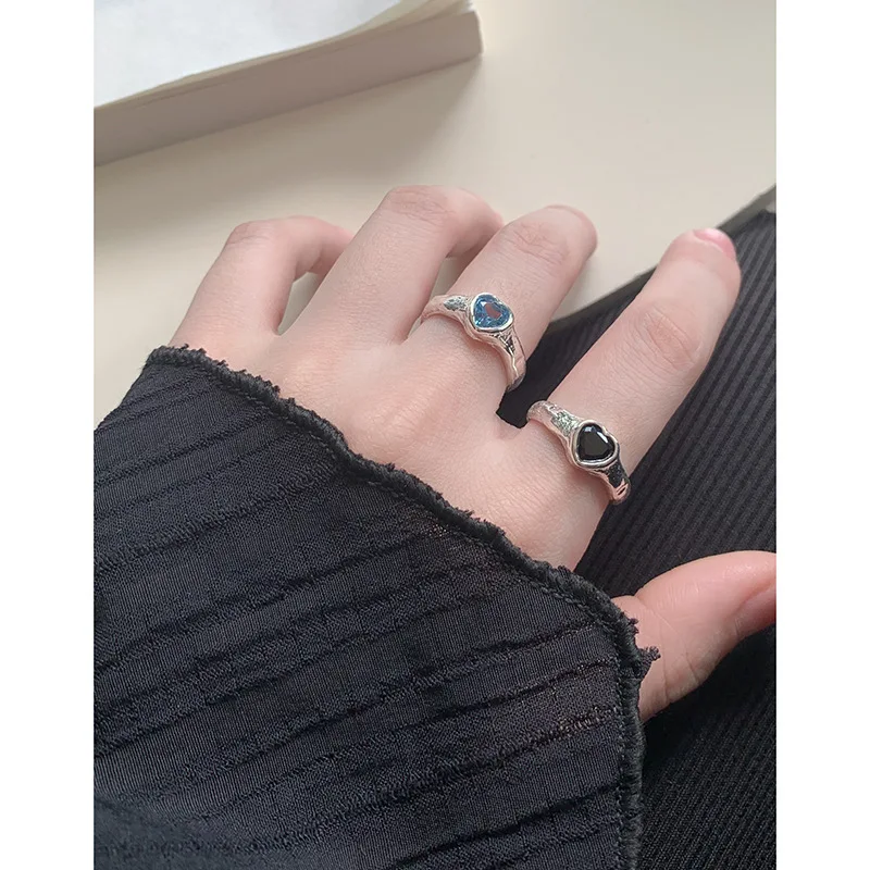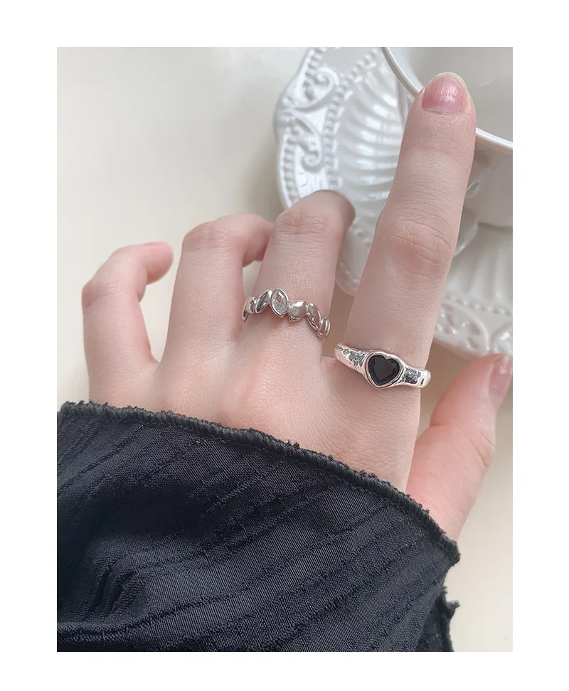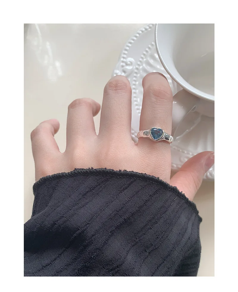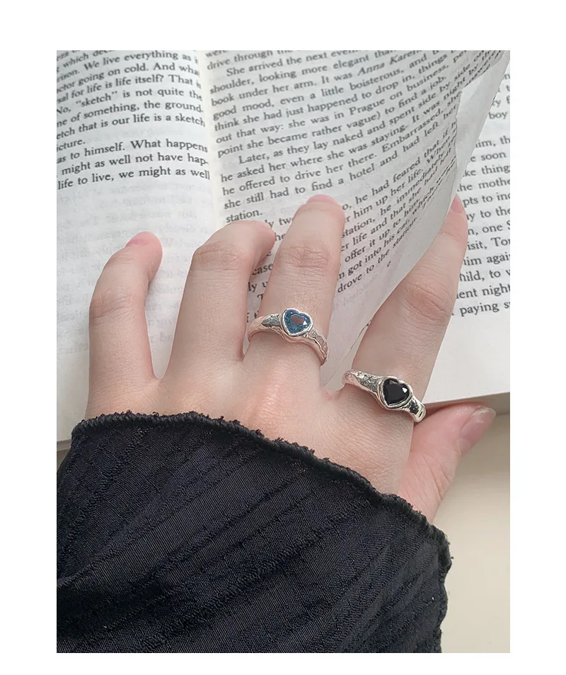Jewel Type : F.I.N.S Original Luxury Tin Foil Texture Heart Zircon S925 Sterling Silver Ring Open Adjustable Wedding Engagement Finger Jewels