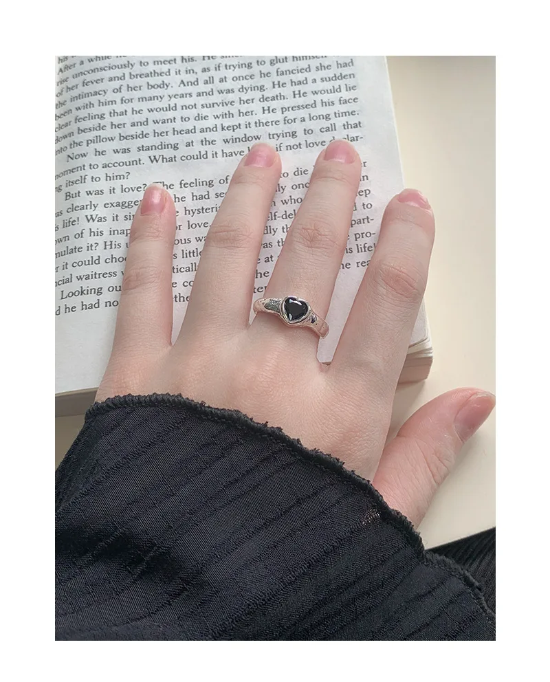 F.I.N.S Original Luxury Tin Foil Texture Heart Zircon S925 Sterling Silver Ring Open Adjustable Wedding Engagement Finger Jewels