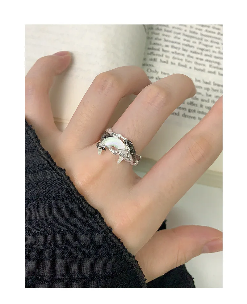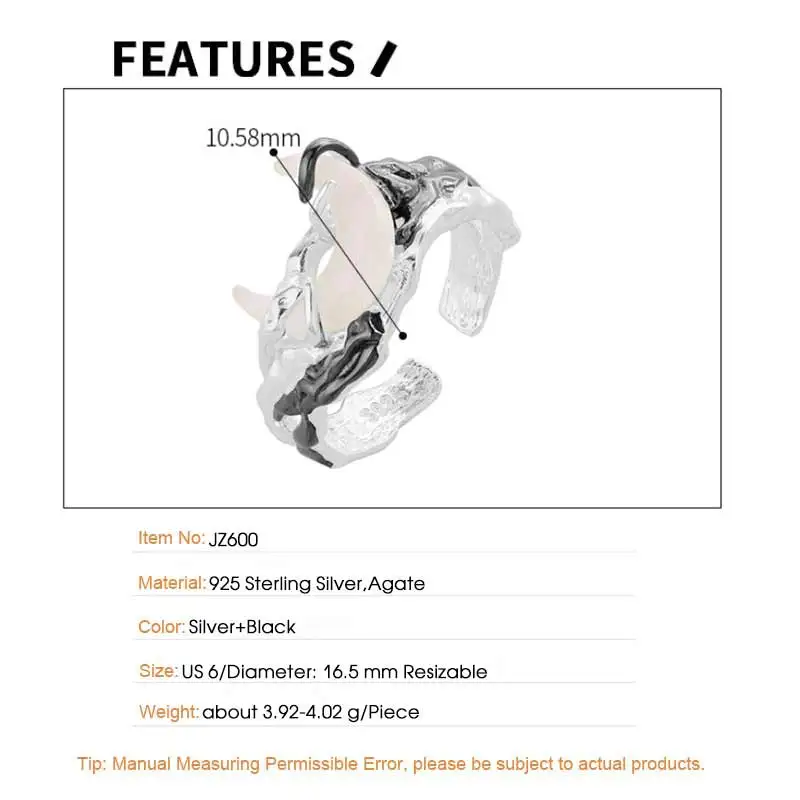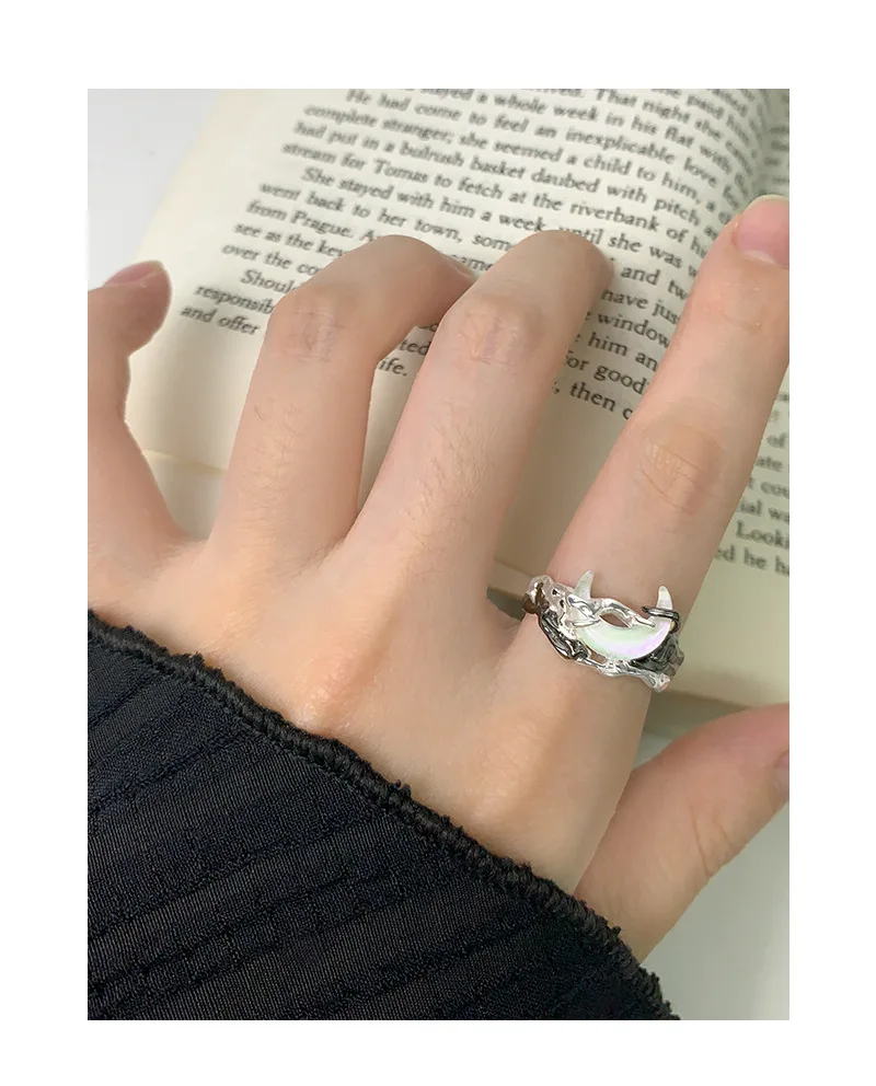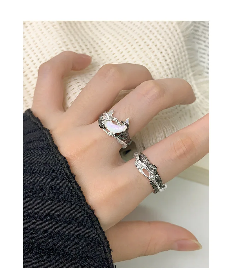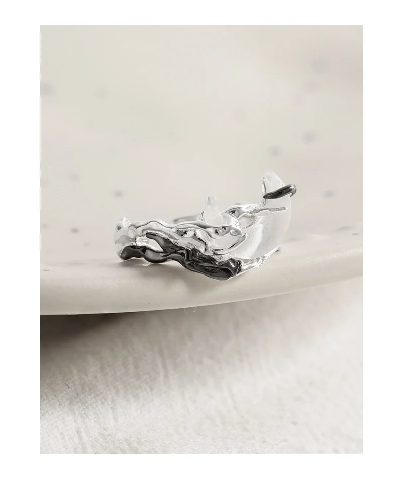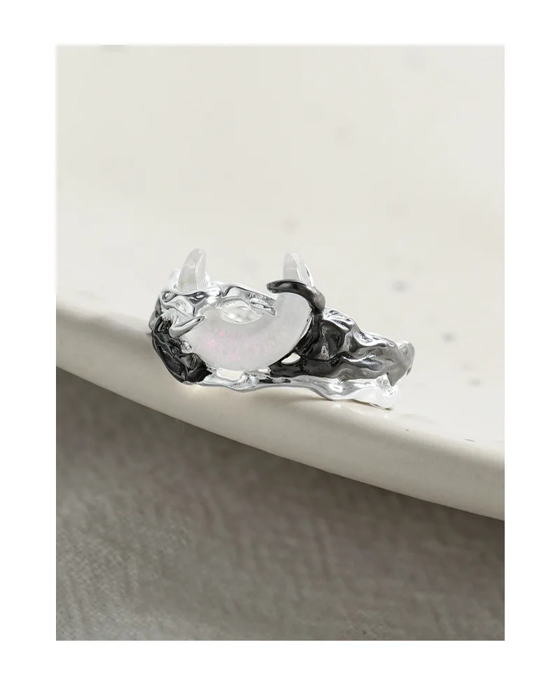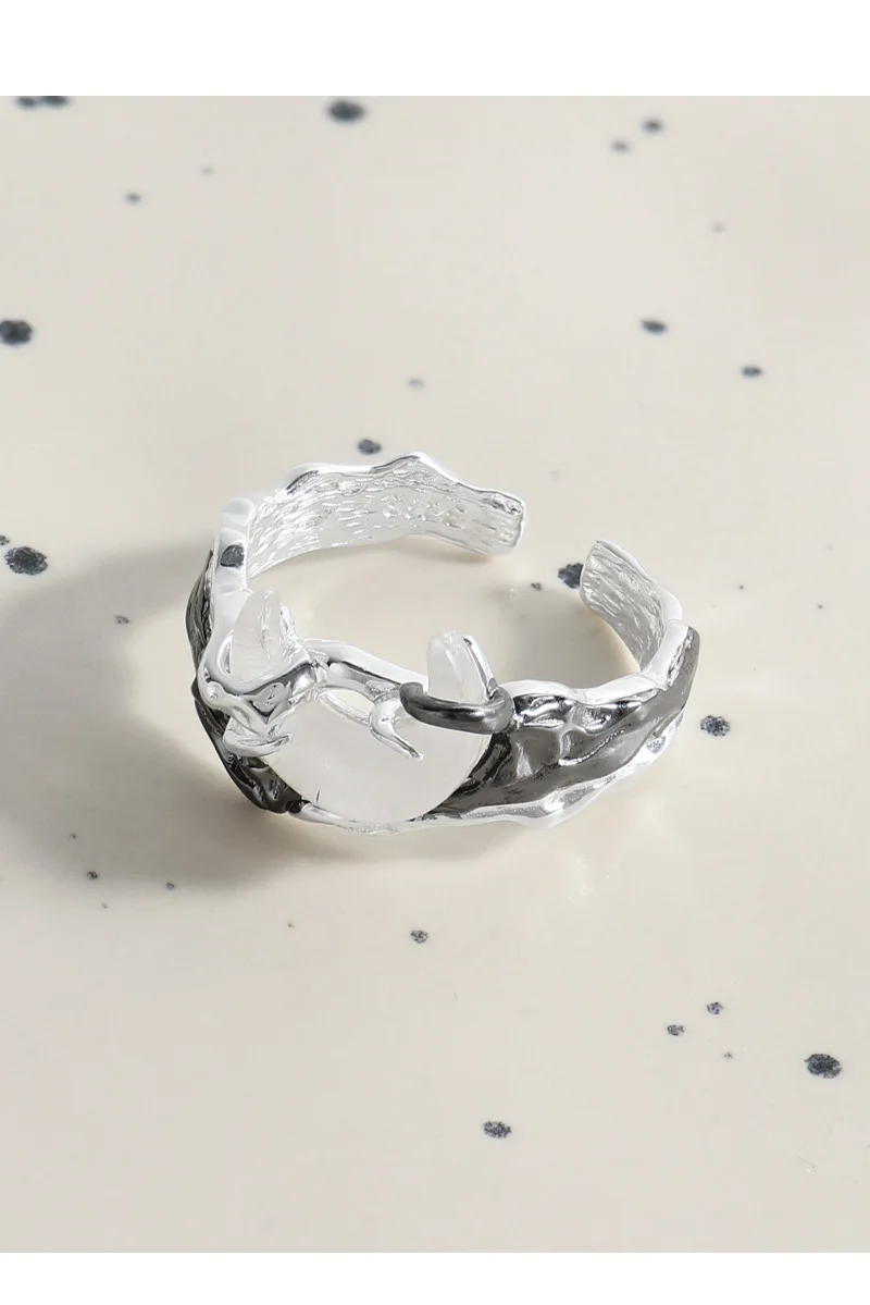 Jewel Type : F.I.N.S Original Moon S925 Sterling Silver Ring Color Sepaparation Irregular Open Adjustable Finger Fine Jewelry Accessories