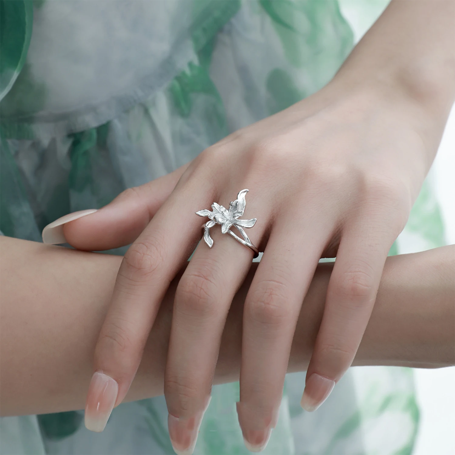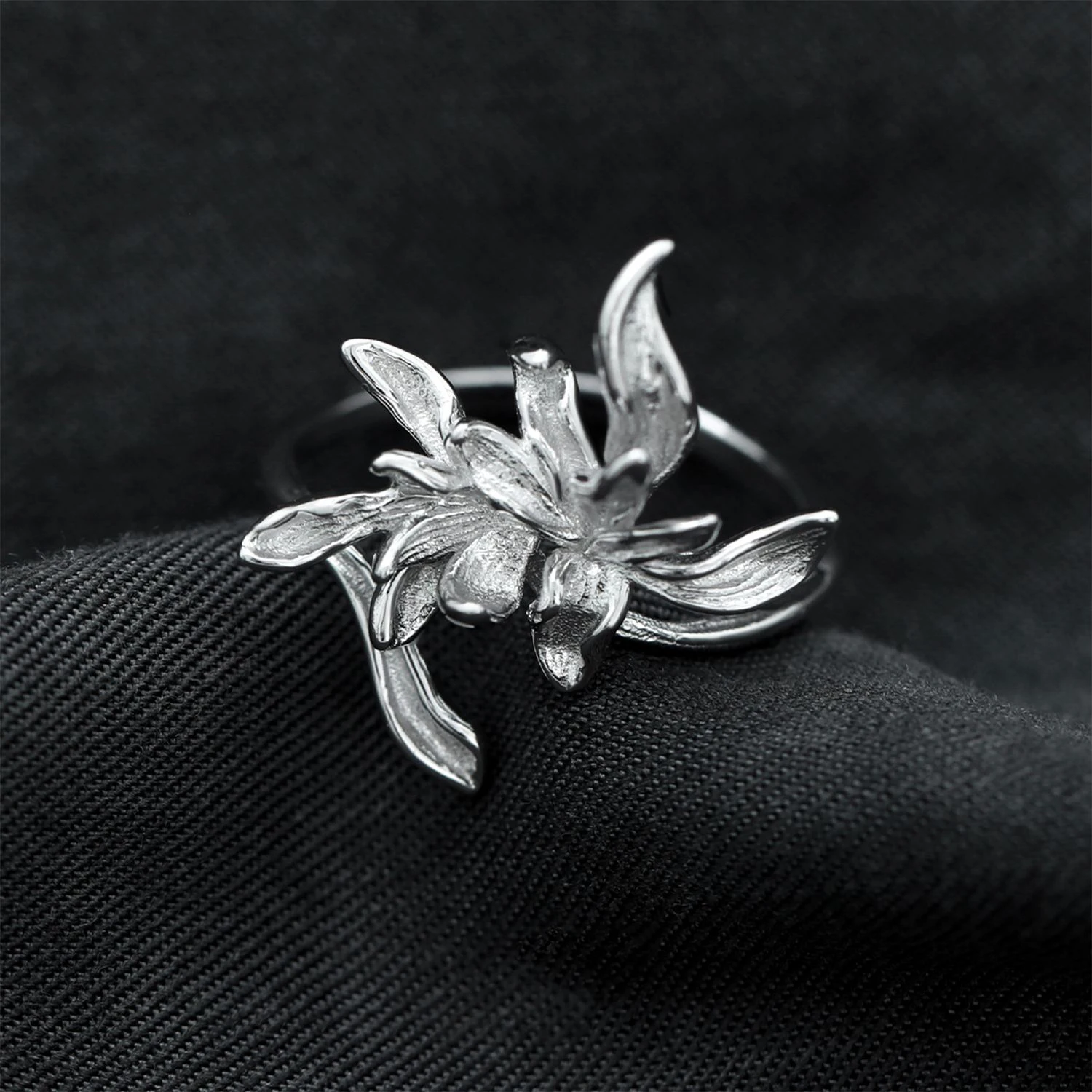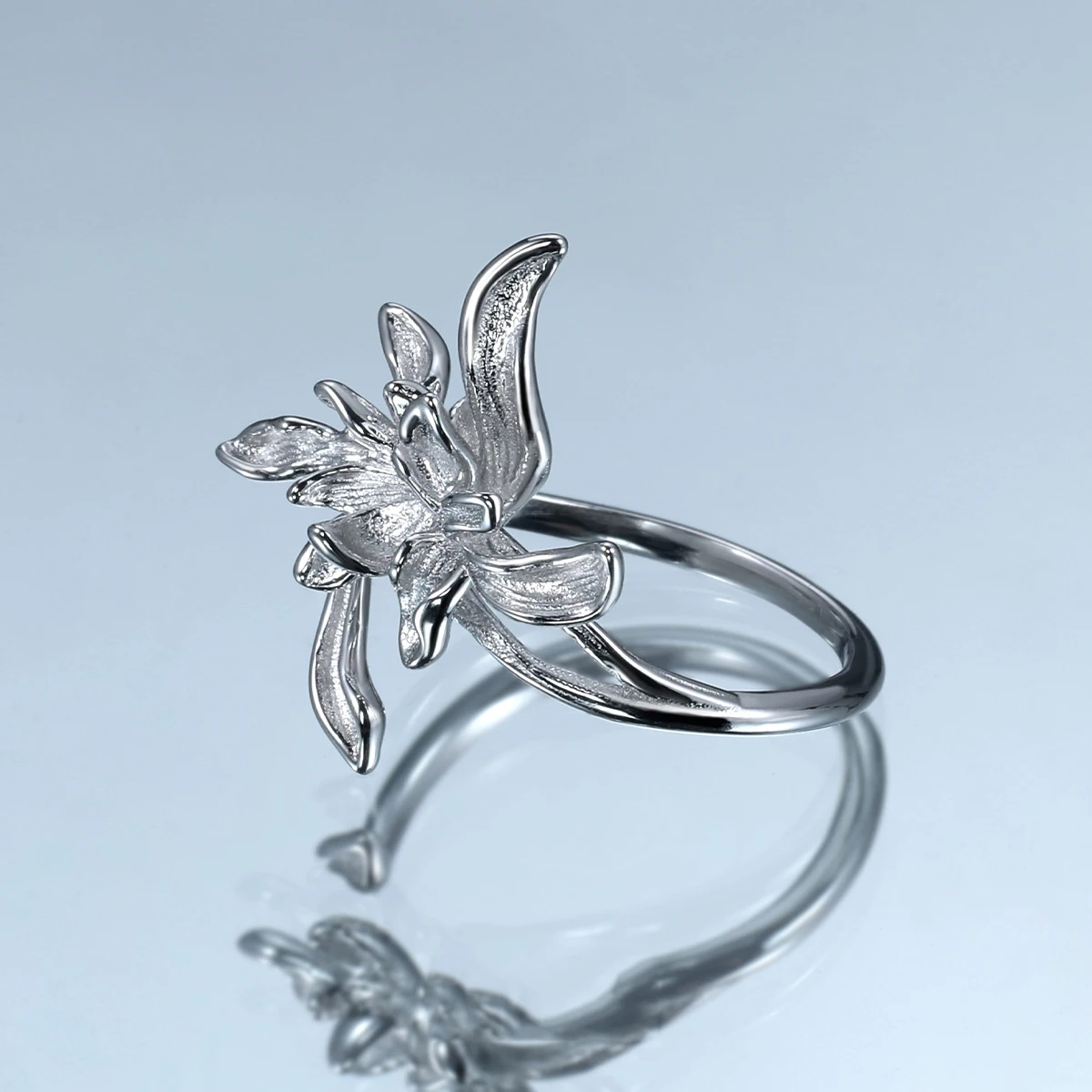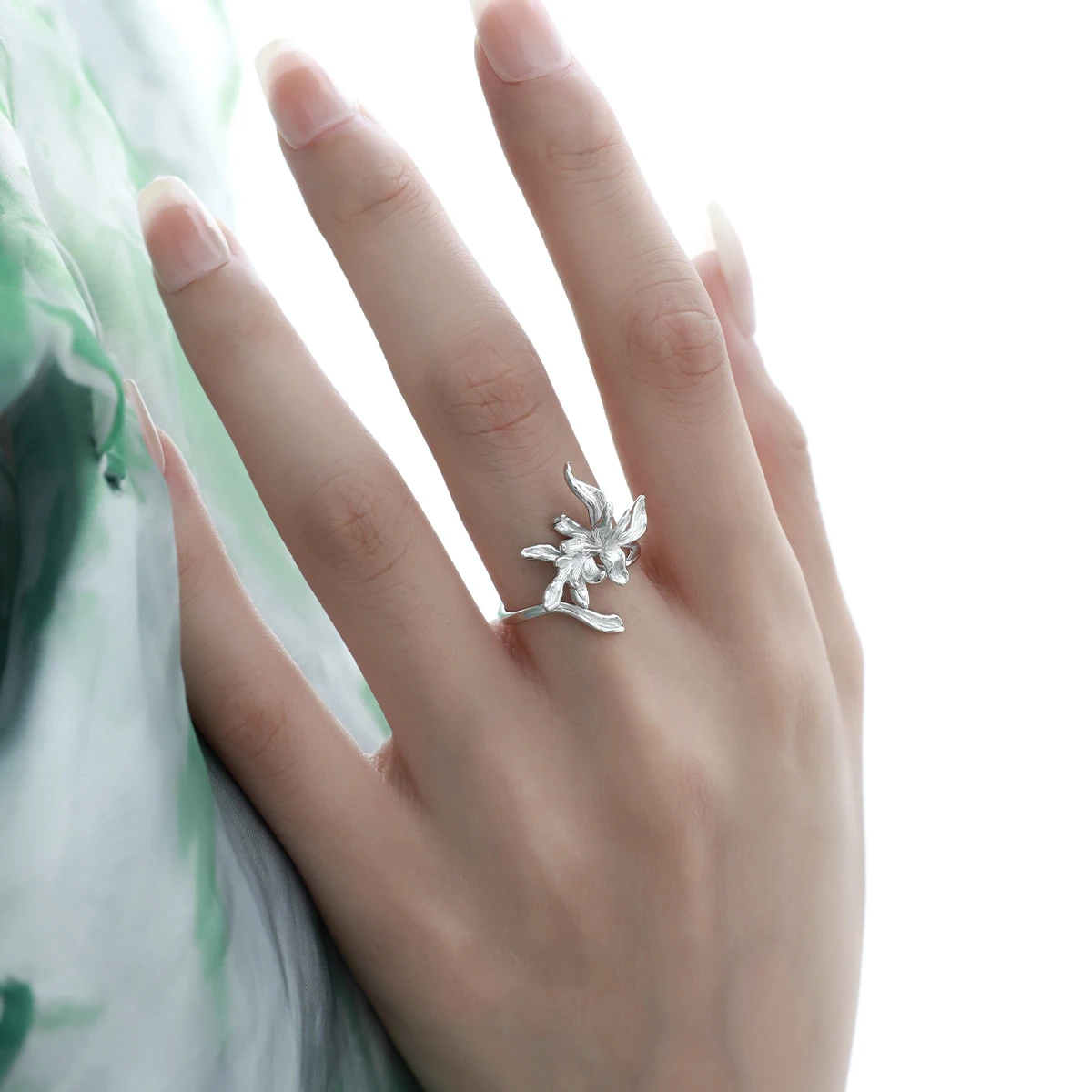 Jewel Type : F.I.N.S Original Orchid S925 Sterling Silver Open Rings Hyperbole Flower Temperament Adjustable Mid Finger Fine Jewelry Gifts