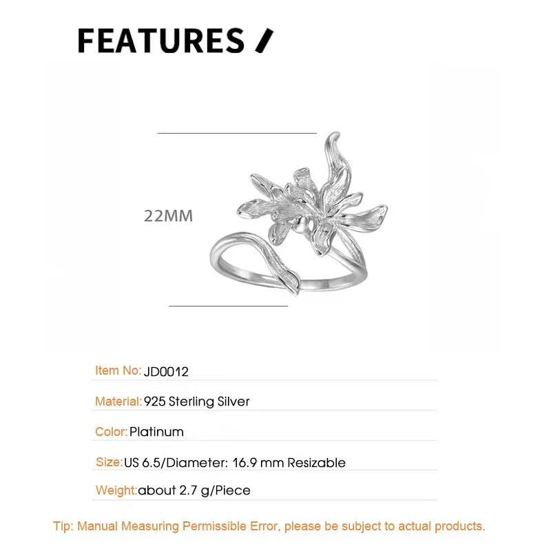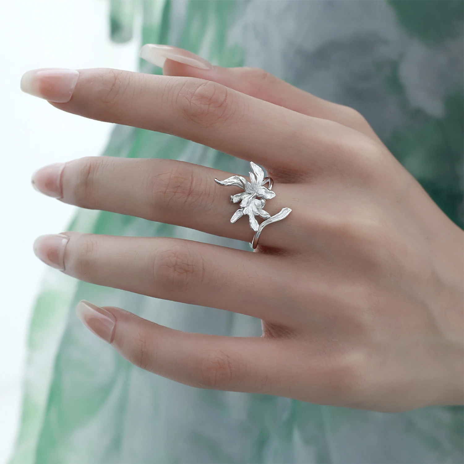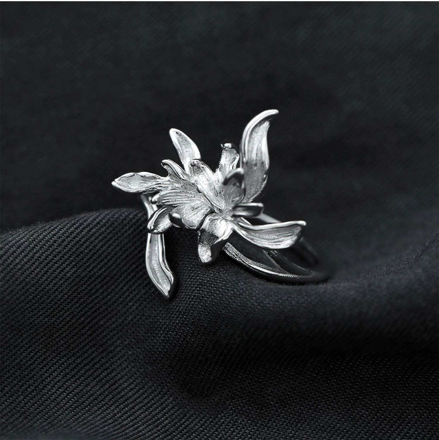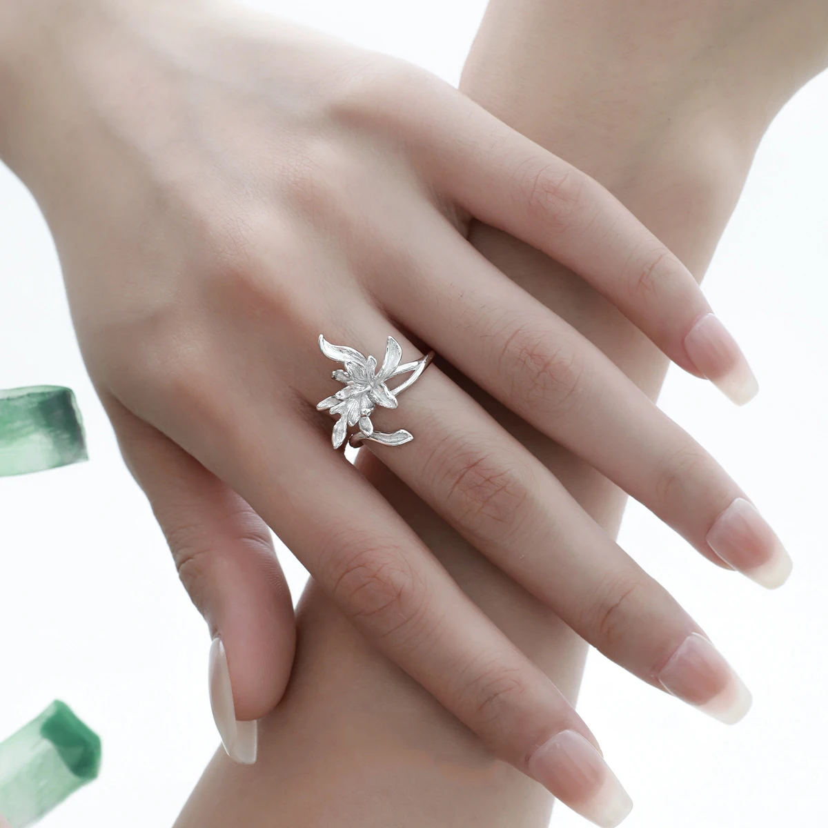 Jewel Type : F.I.N.S Original Orchid S925 Sterling Silver Open Rings Hyperbole Flower Temperament Adjustable Mid Finger Fine Jewelry Gifts