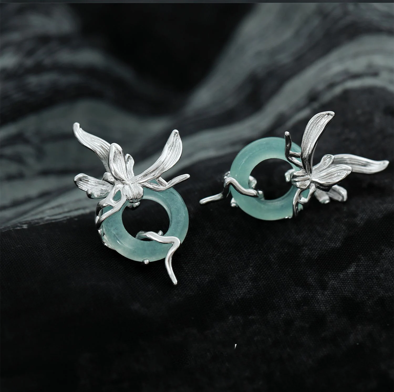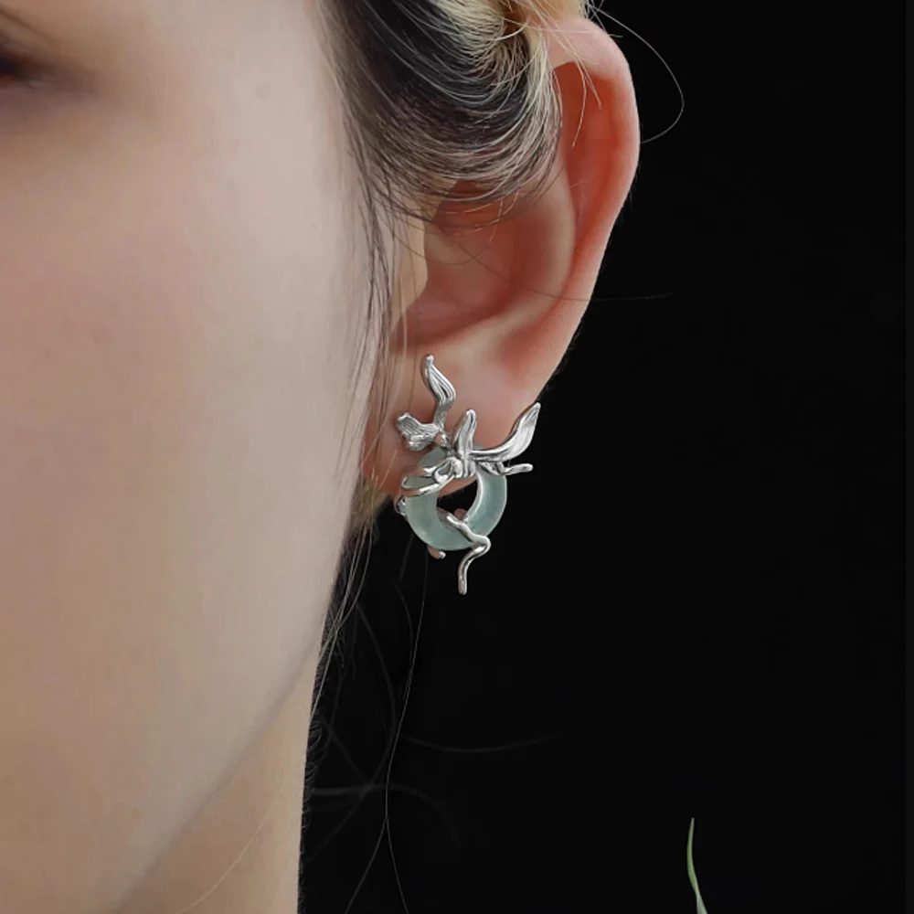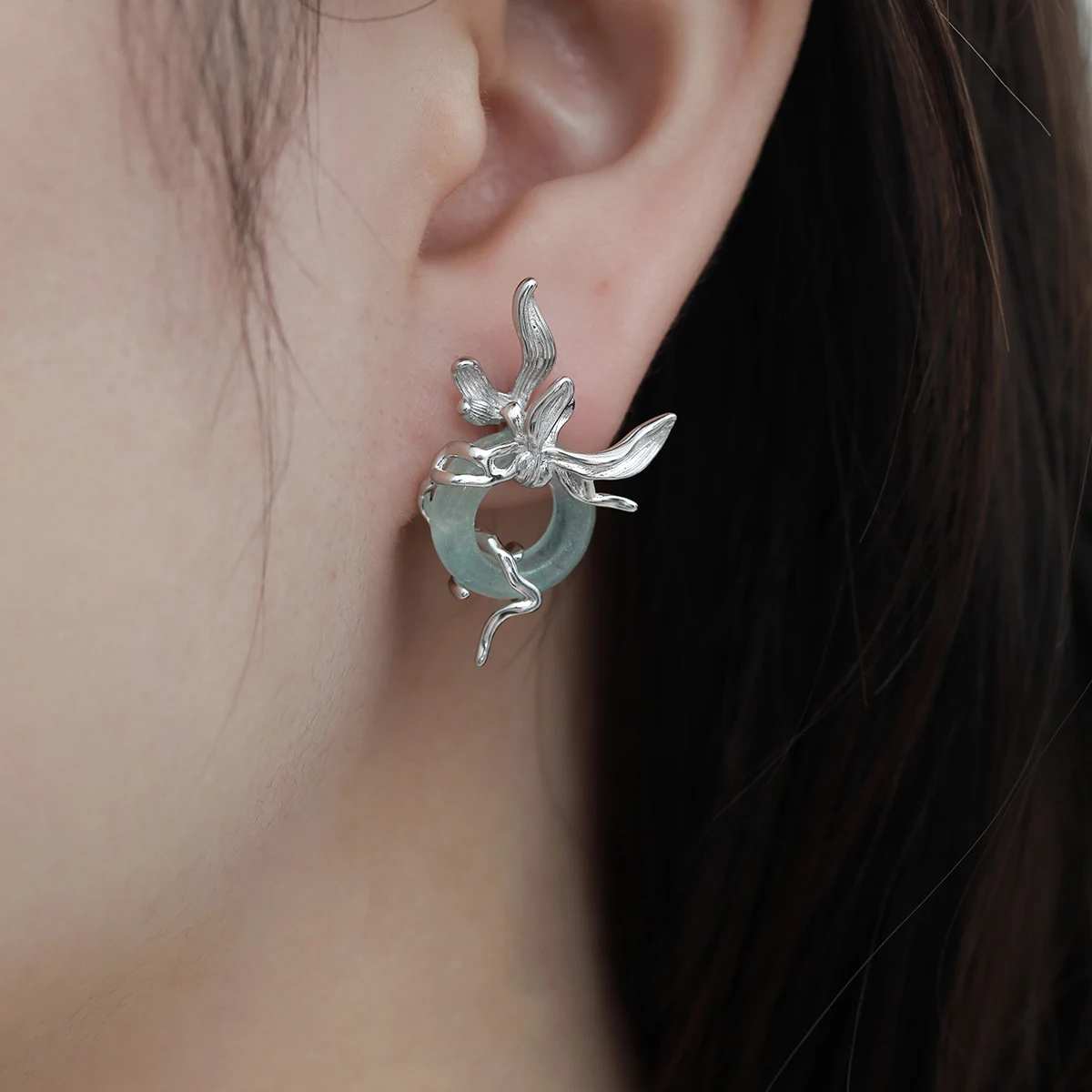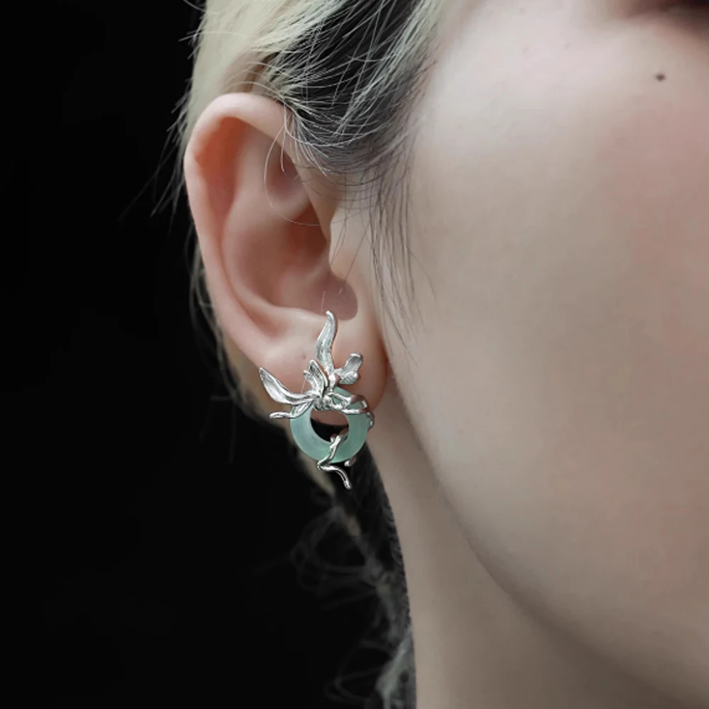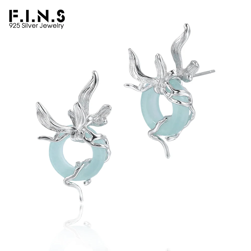 F.I.N.S Original Orchid S925 Sterling Silver Stud Earrings Iris Hollowed Round Stone Piercing Ear Party Fashion Fine Jewelry