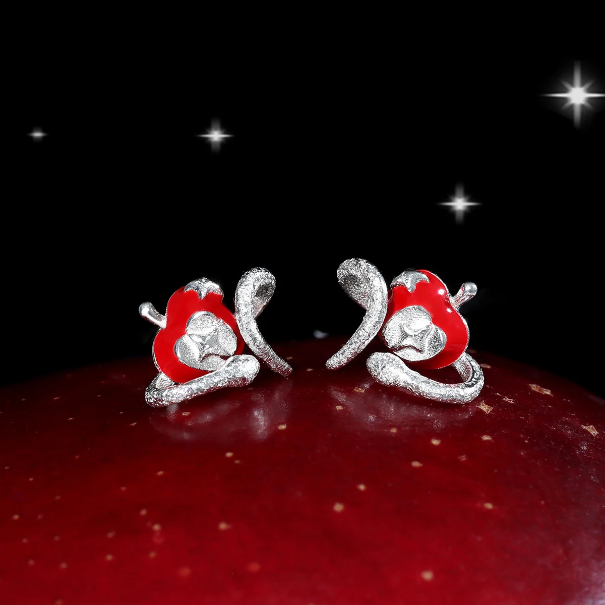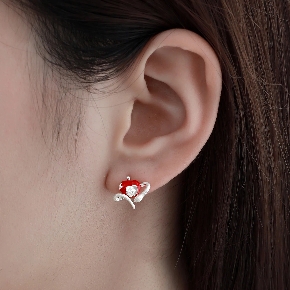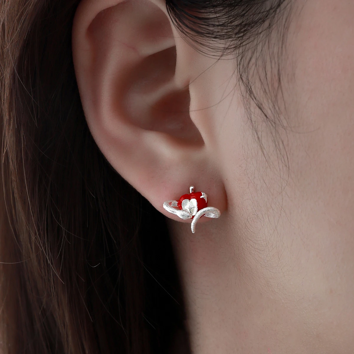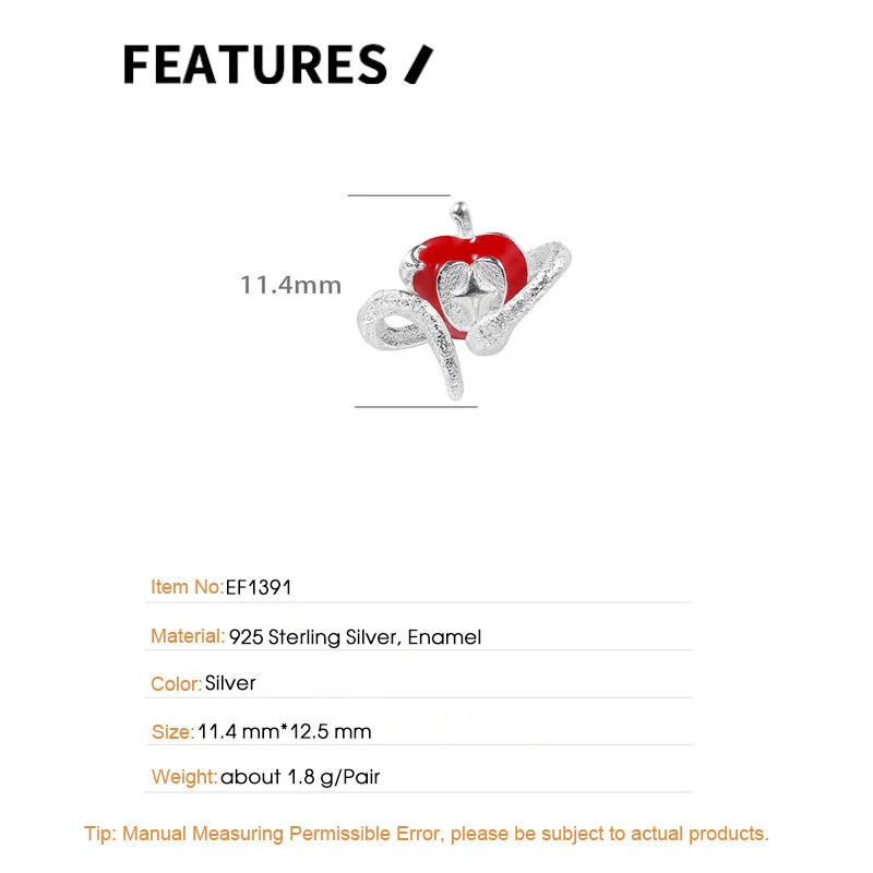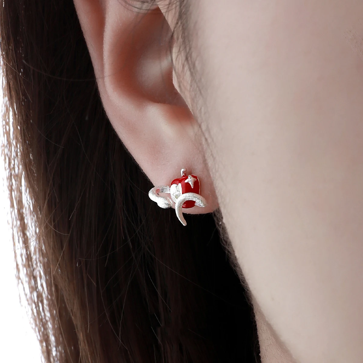Jewel Type : F.I.N.S Original Red Apple and Snake S925 Sterling Silver Stud Earrings Cute Sweet Brush Glitter Piercing Ear Fine Jewelry Gifts