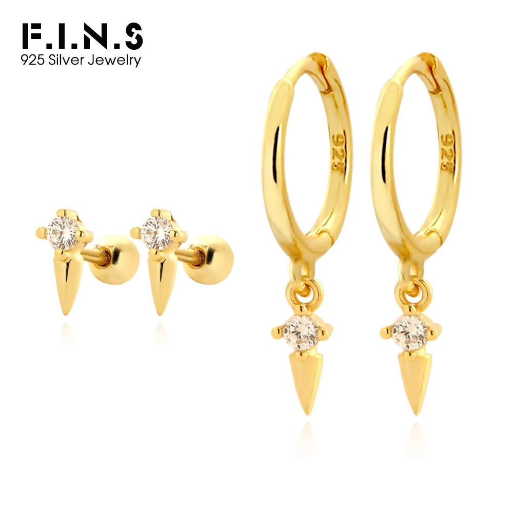 Jewel Type : F.I.N.S Original Rivet S925 Sterling Silver Screw Earrings Fashion Punk Stackable Piercing Ear Studs Prevent Allergy Fine Jewels