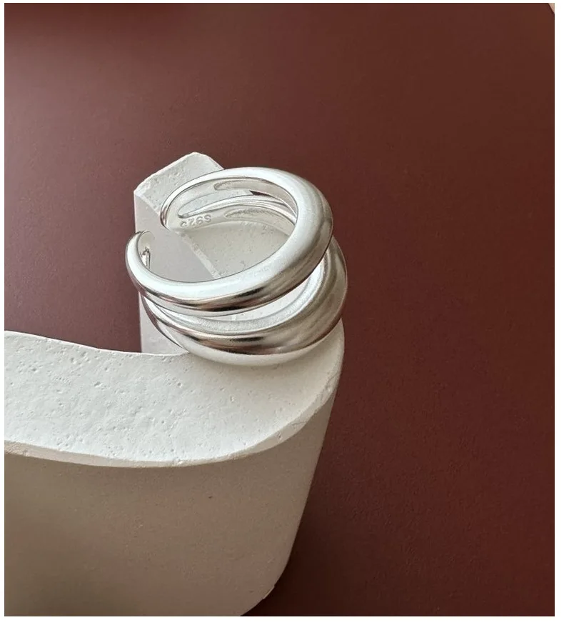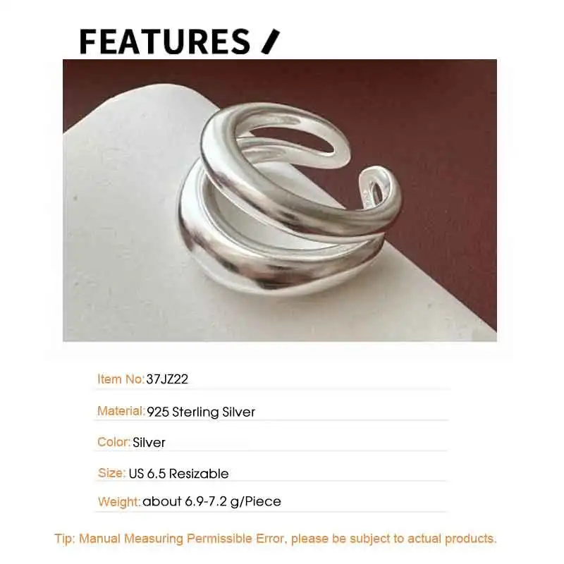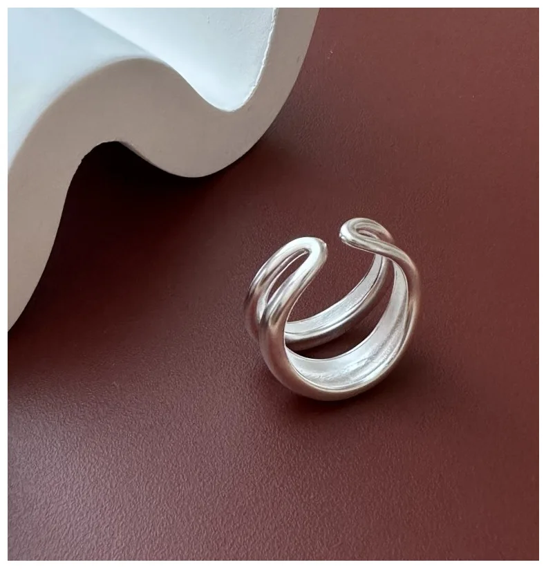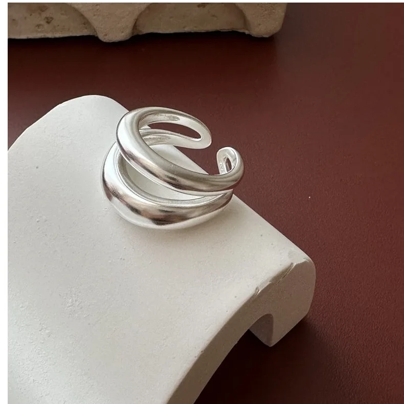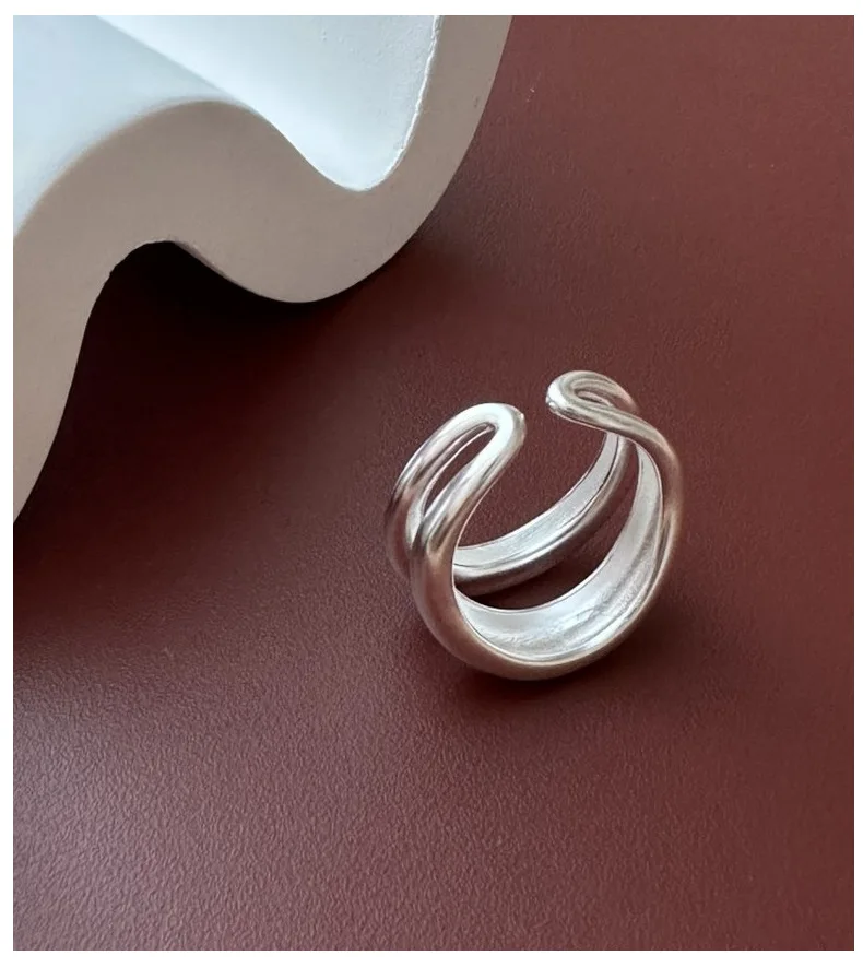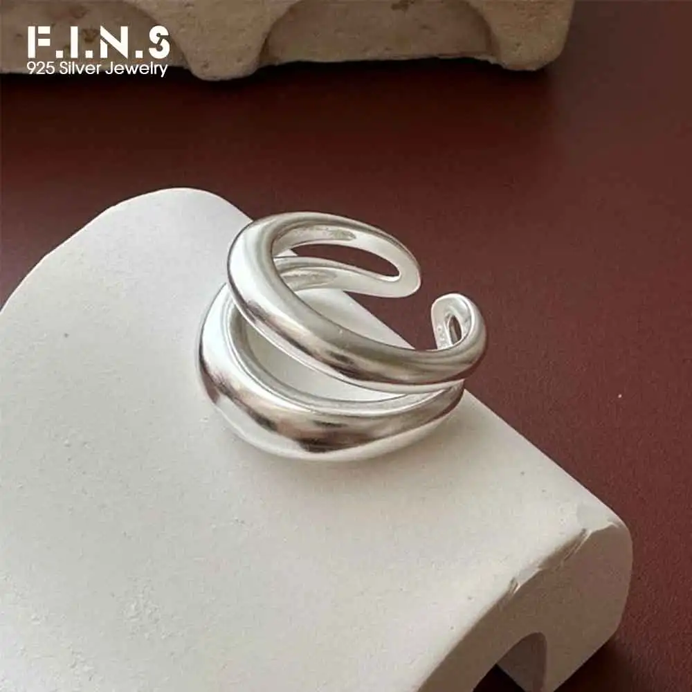 Jewel Type : F.I.N.S Original S925 Sterling Silver Double-Layer Matte Ring Minimalist Open Adjustable Anti-Allergic Finger Jewelry Gifts