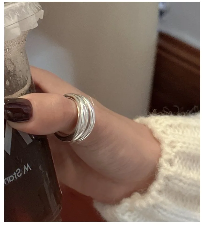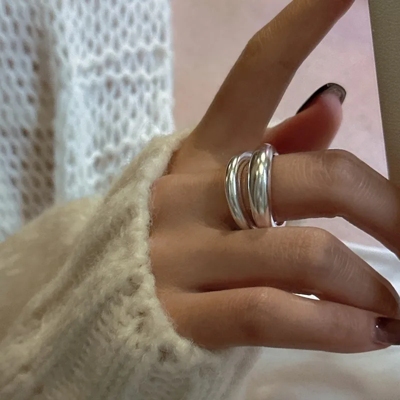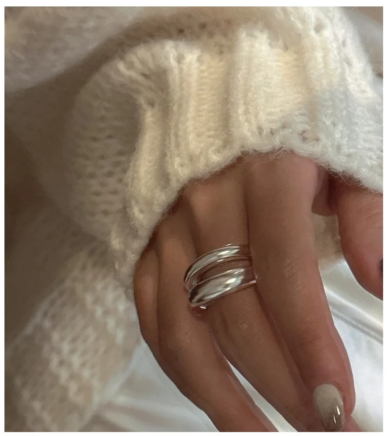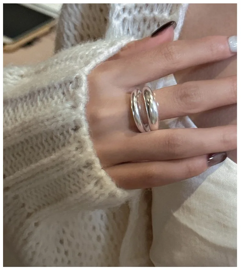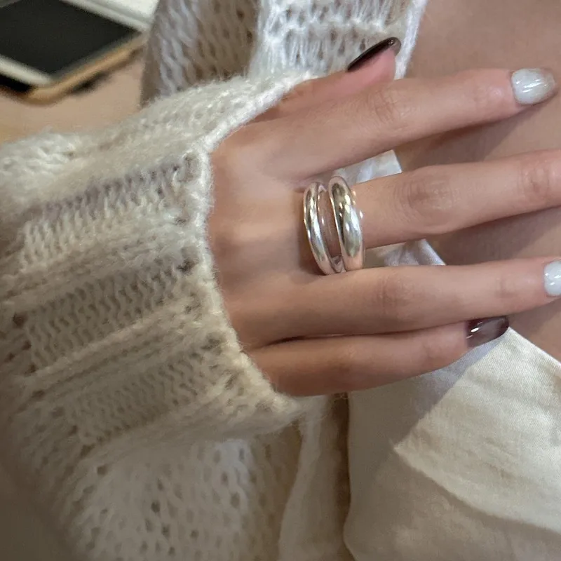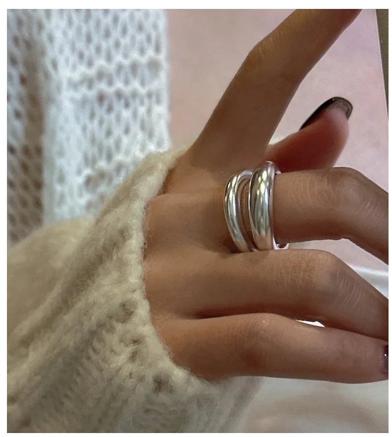 Jewel Type : F.I.N.S Original S925 Sterling Silver Double-Layer Matte Ring Minimalist Open Adjustable Anti-Allergic Finger Jewelry Gifts