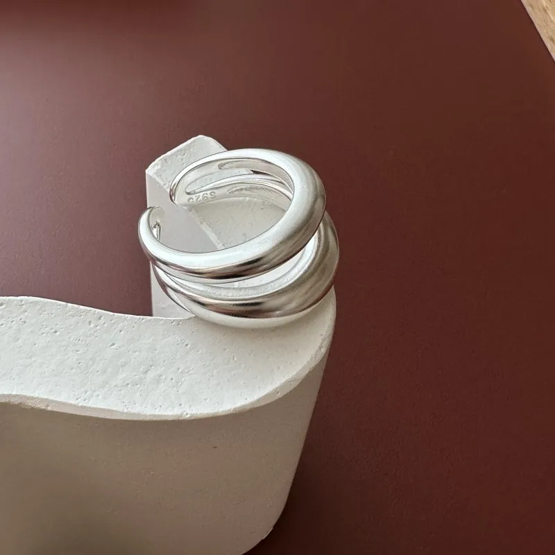 F.I.N.S Original S925 Sterling Silver Double-Layer Matte Ring Minimalist Open Adjustable Anti-Allergic Finger Jewelry Gifts