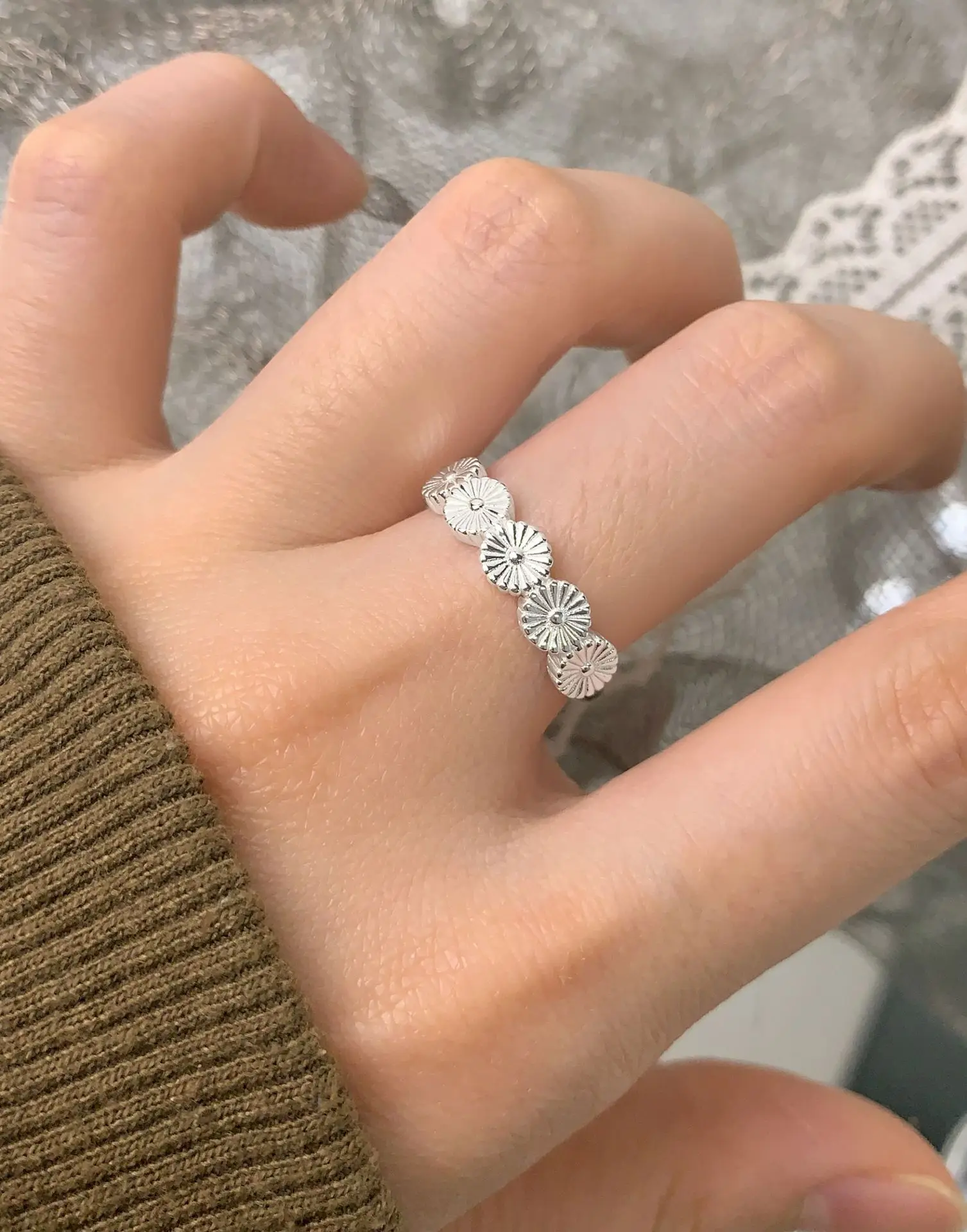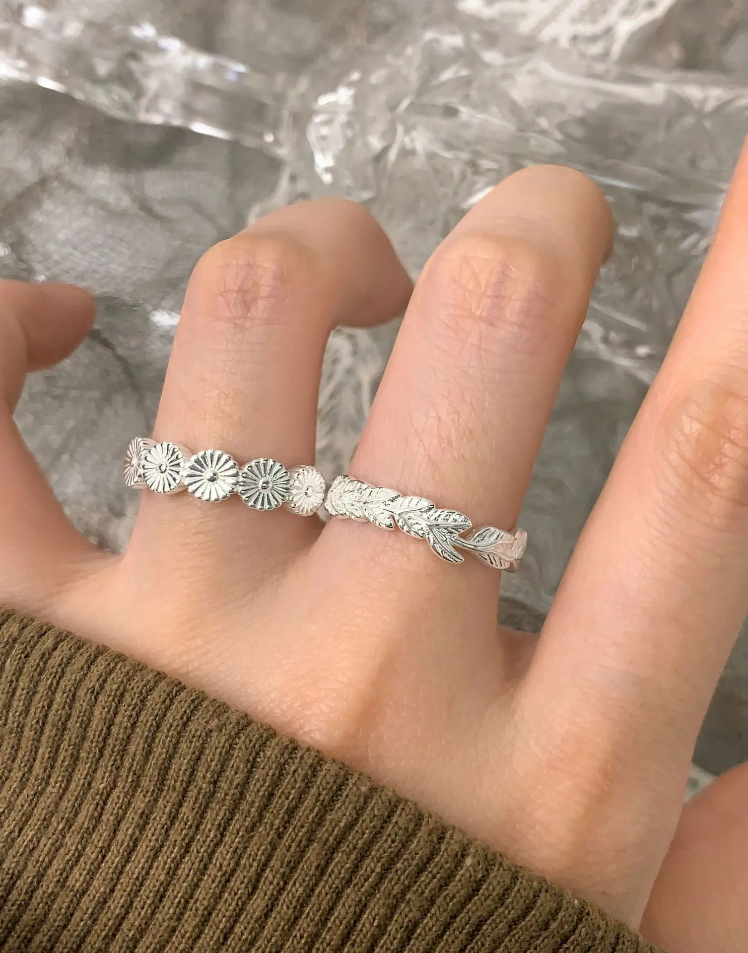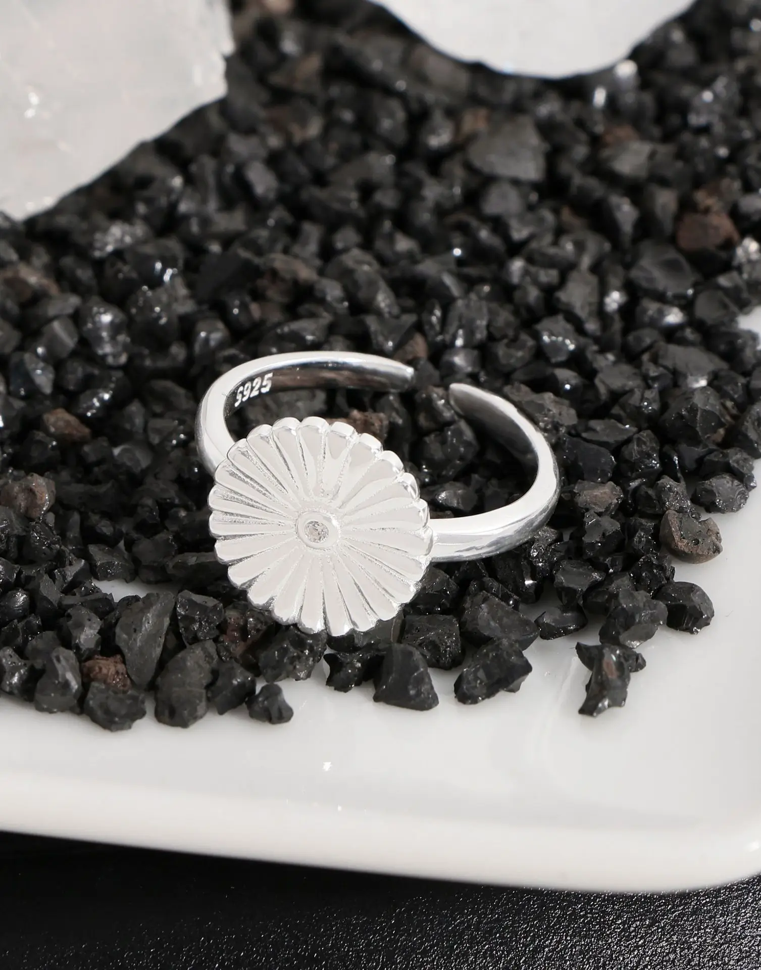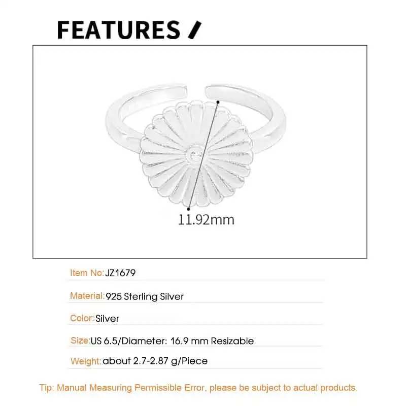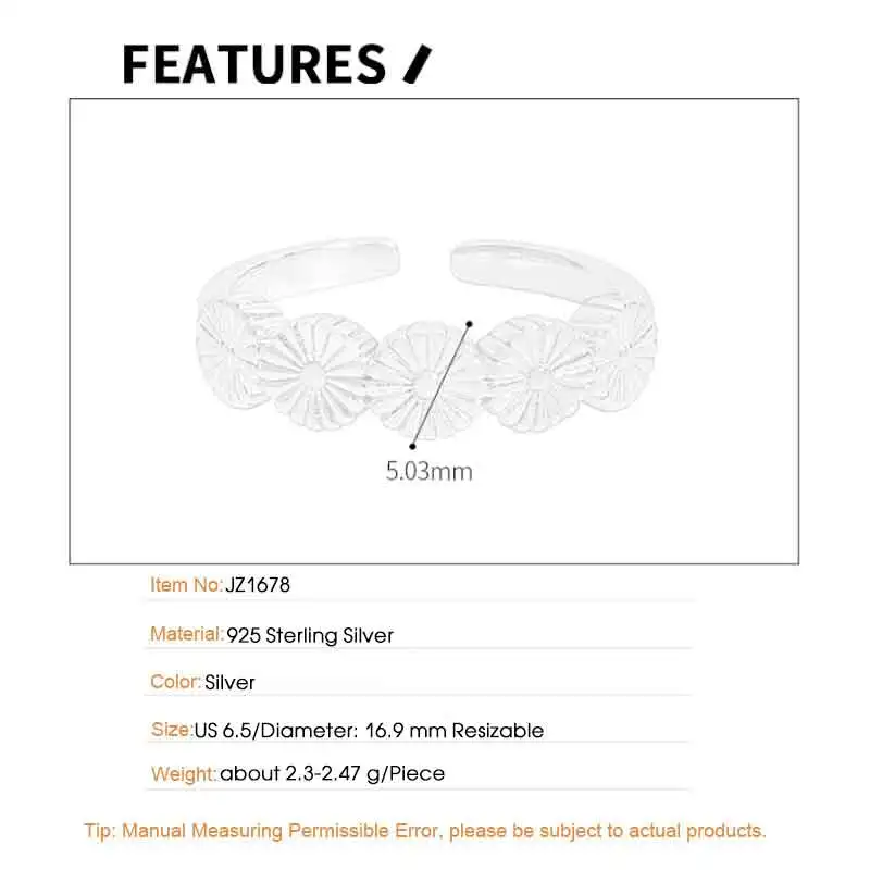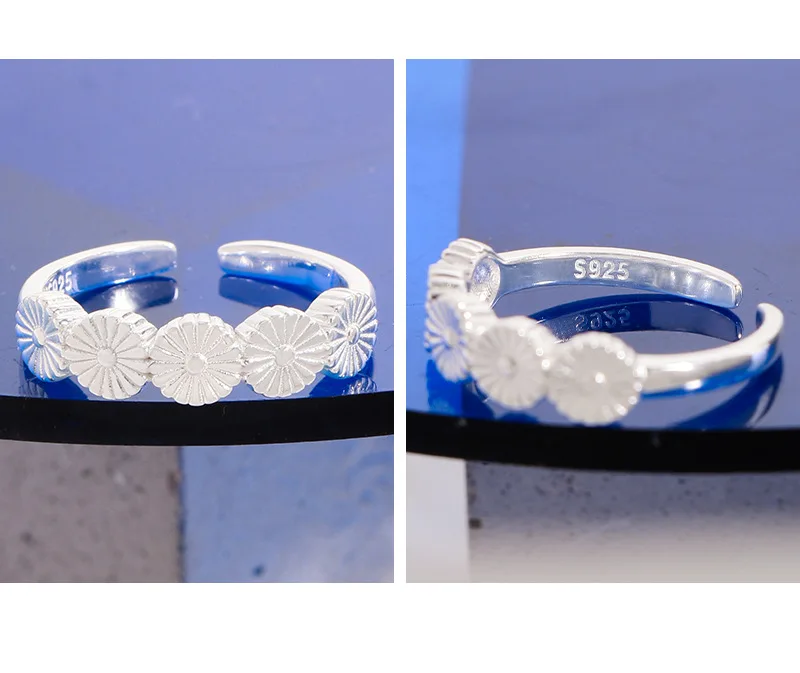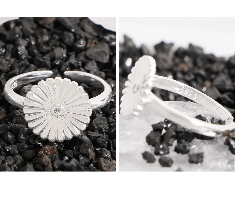 Jewel Type : F.I.N.S Original S925 Sterling Silver Flower Ring Stackable Opening Chrysanthemum Adjustable Finger Fine Jewelry Accessories