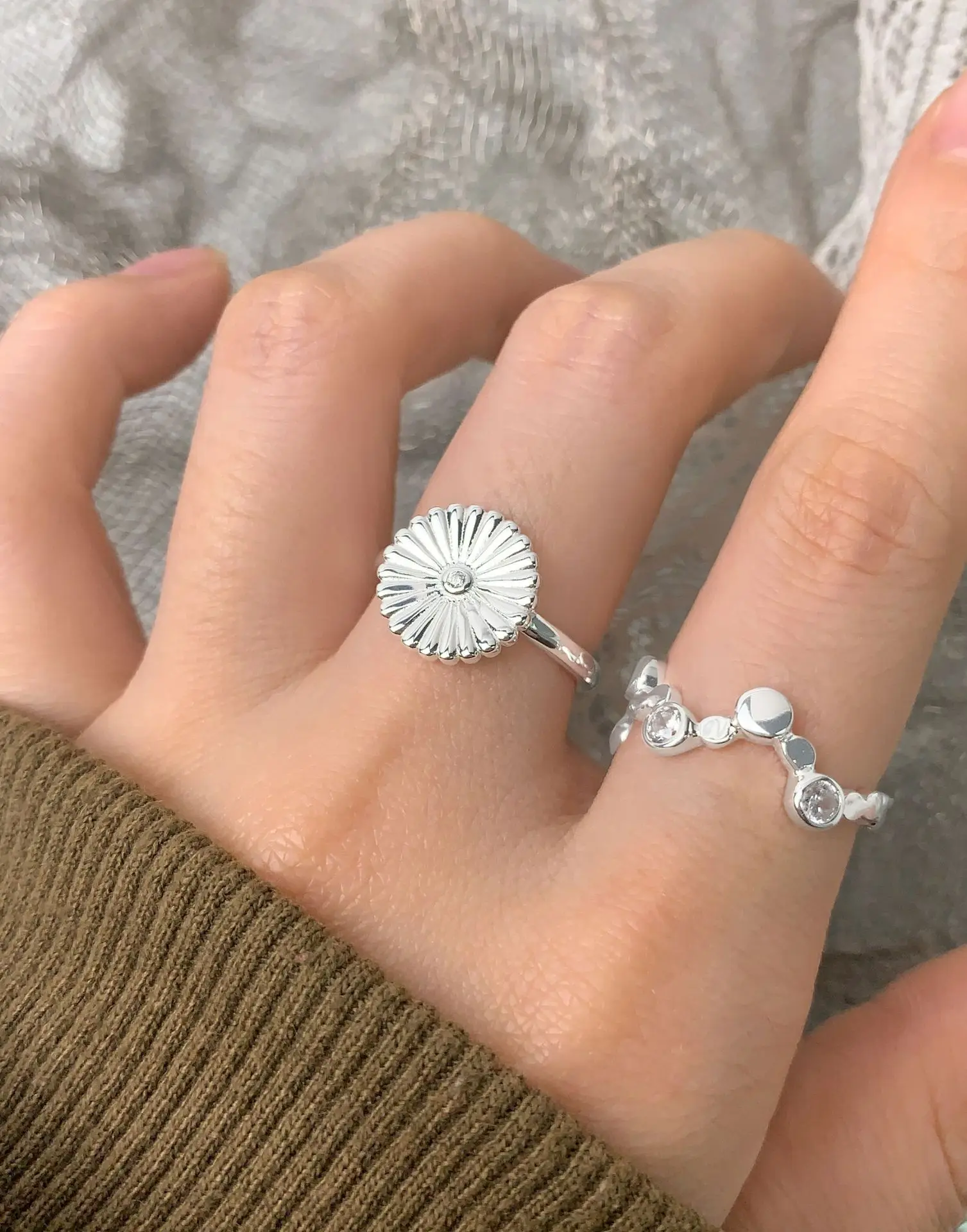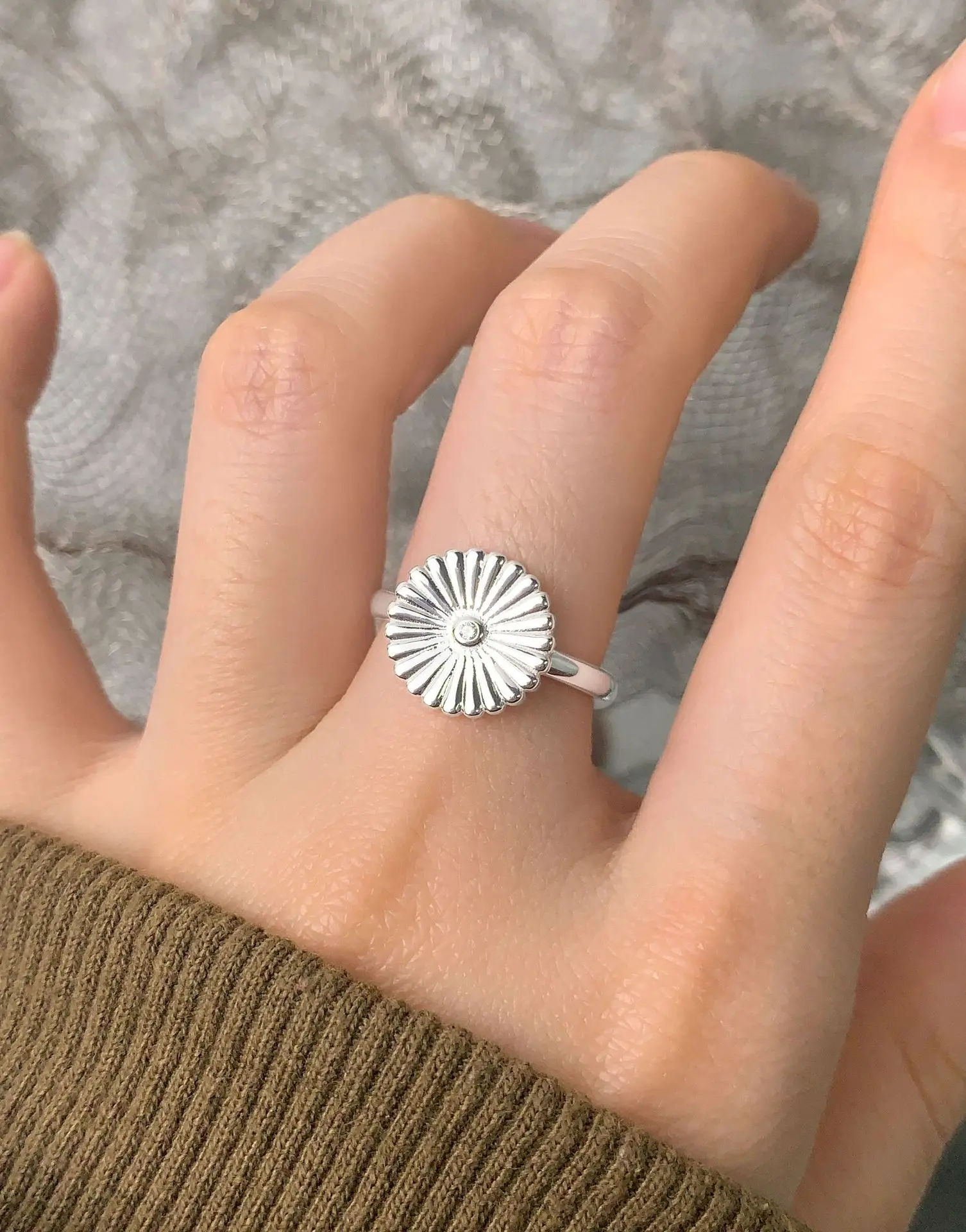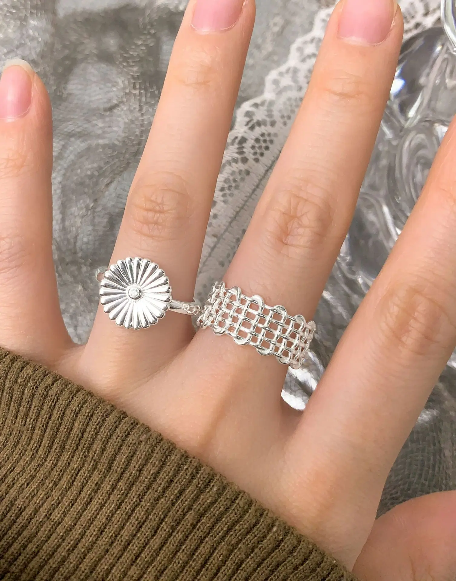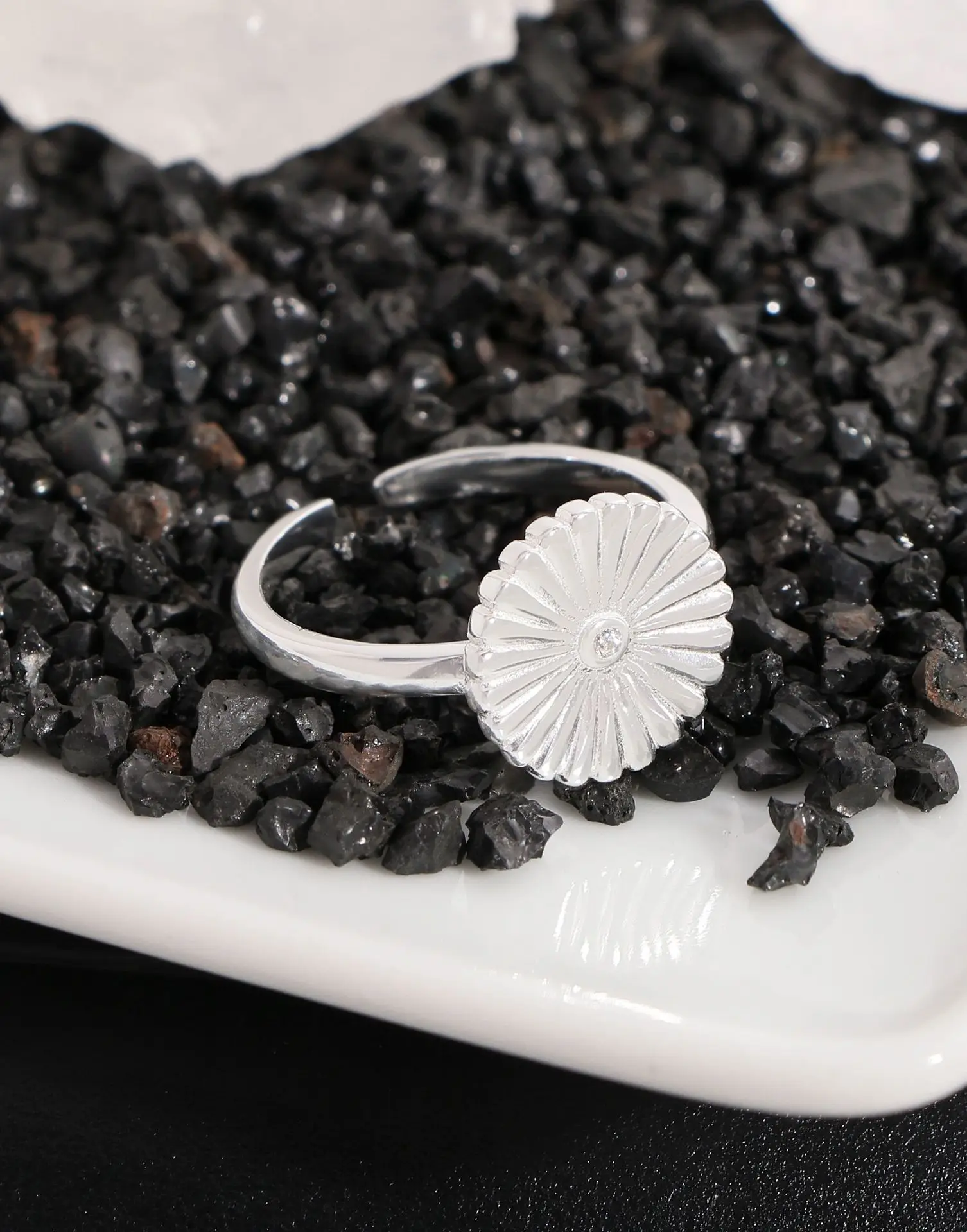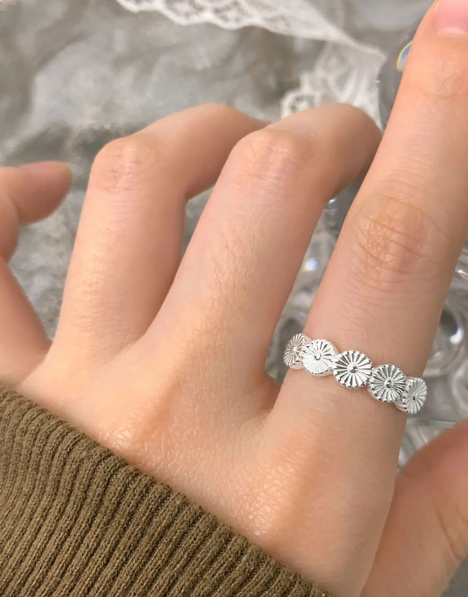 Jewel Type : F.I.N.S Original S925 Sterling Silver Flower Ring Stackable Opening Chrysanthemum Adjustable Finger Fine Jewelry Accessories