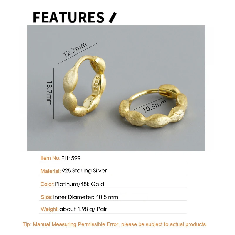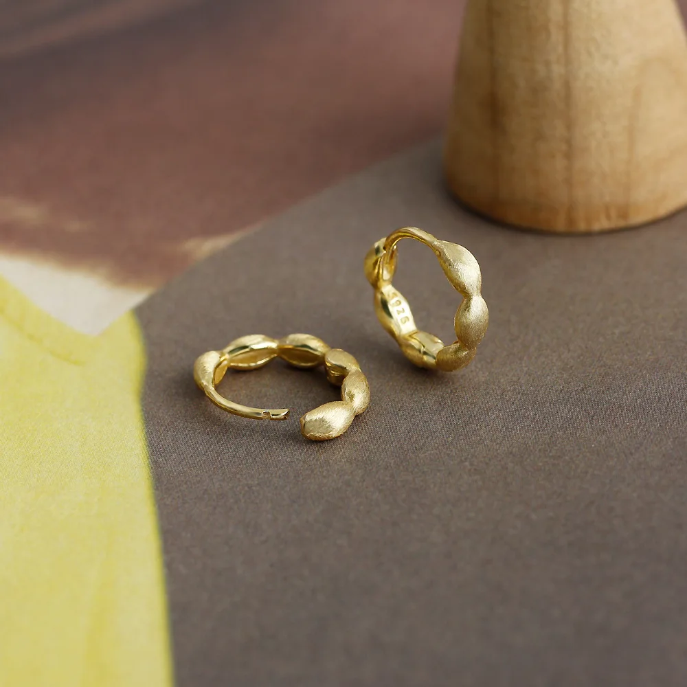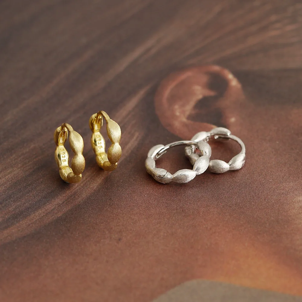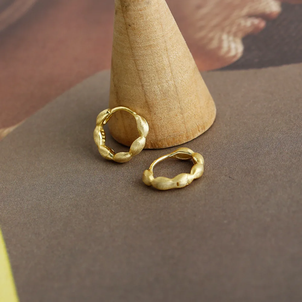 Jewel Type : F.I.N.S Original S925 Sterling Silver Gold Hoop Earrings Brushed Piercing Ear Buckles Minimalist Hypoallergenic Fine Jewelry