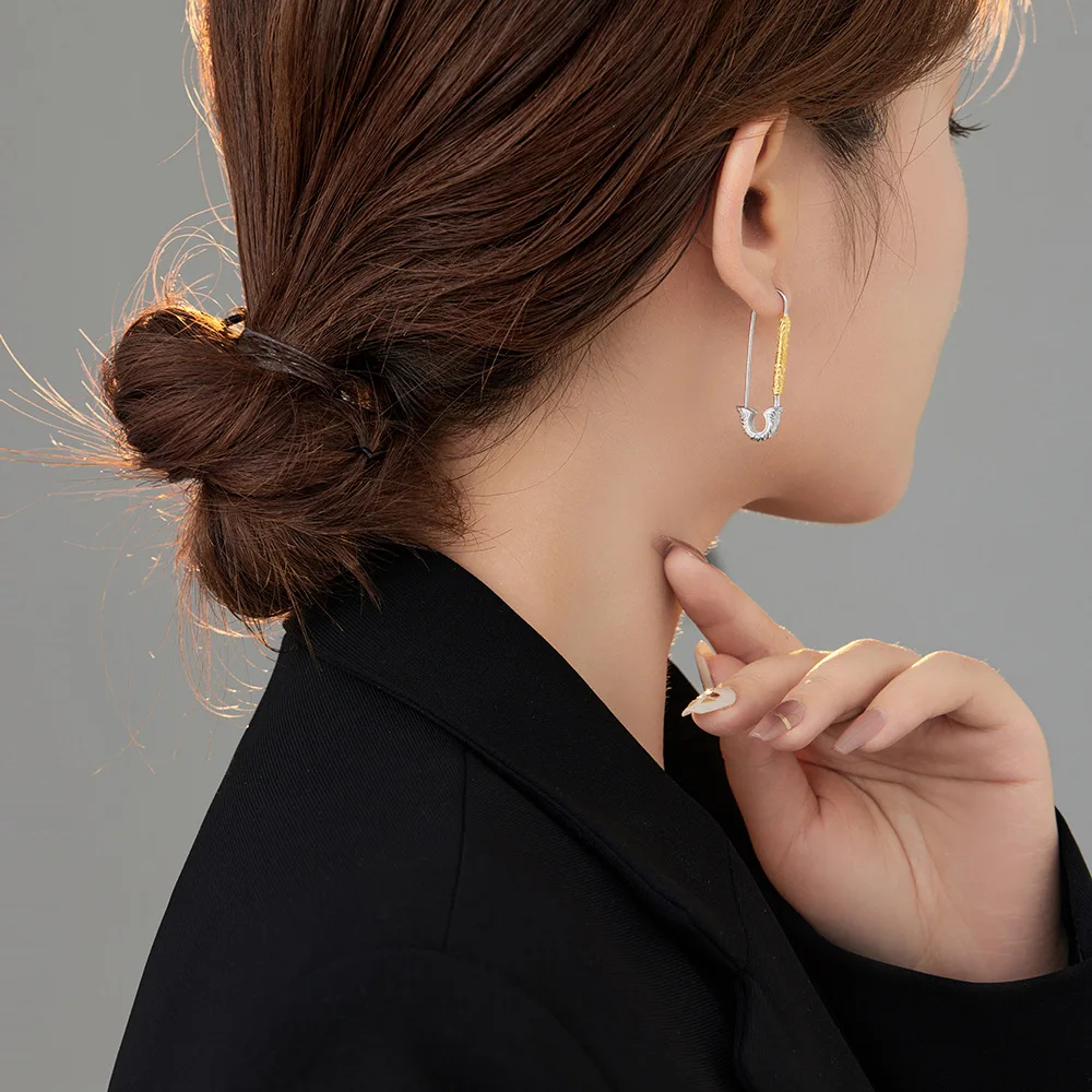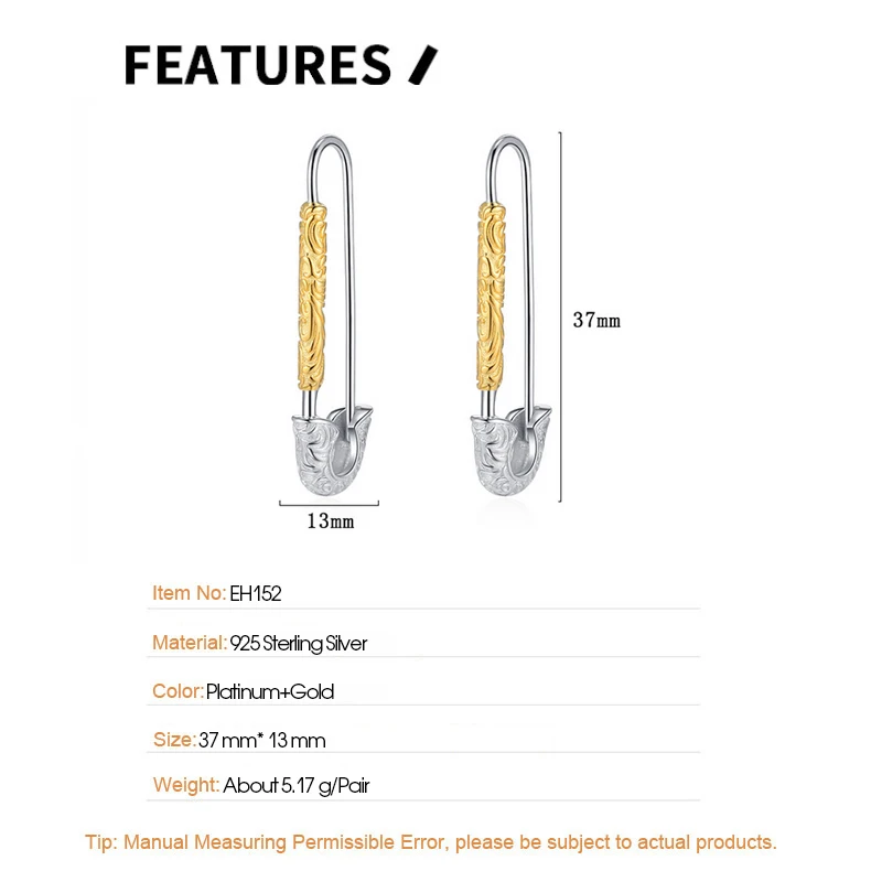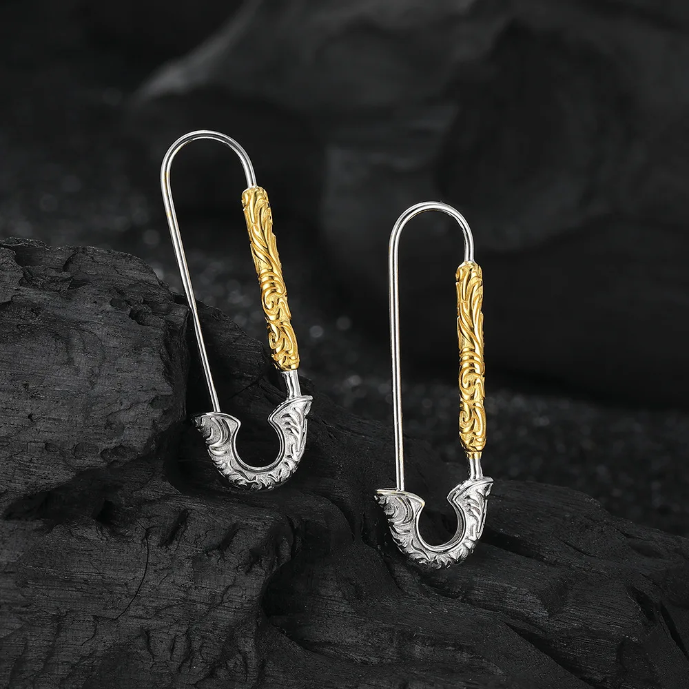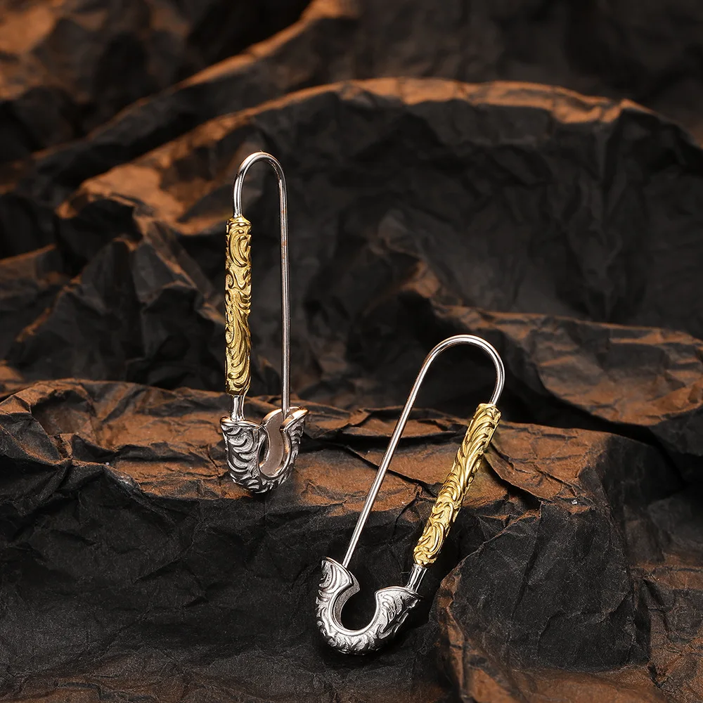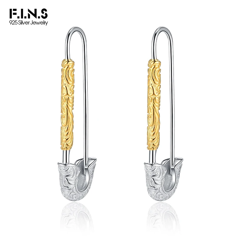 Jewel Type : F.I.N.S Original S925 Sterling Silver Gold Tangcao Patterns Drop Earrings Unique Safe Pin Piercing Relief Pendientes Plata 925