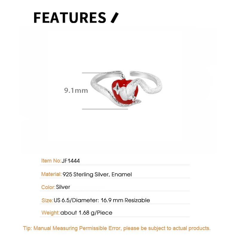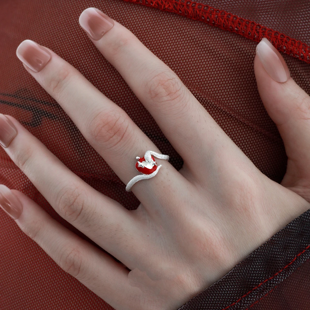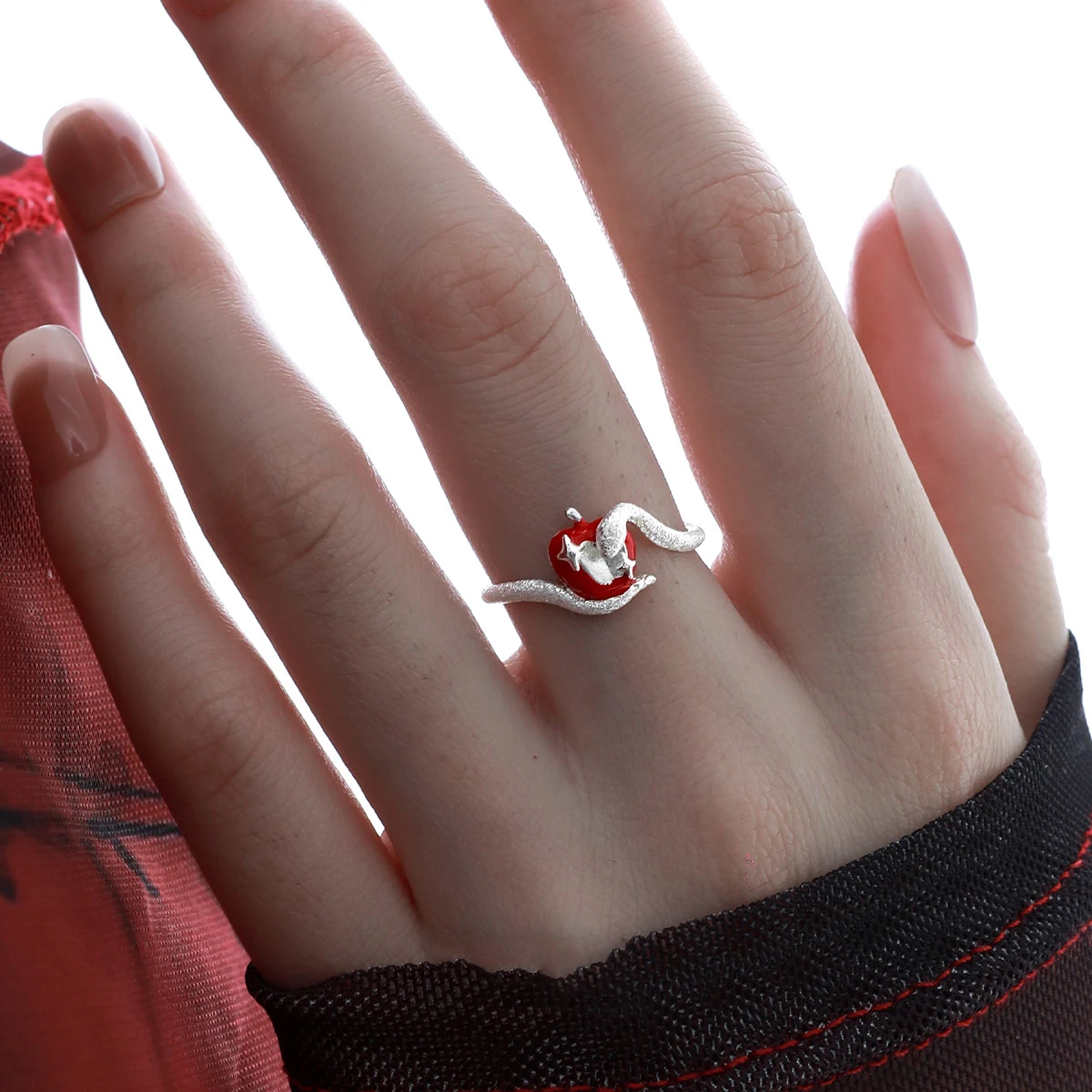F.I.N.S Original S925 Sterling Silver Red Apple Snake Ring Cute Sweet Glitter Star Brushed Open Adjustable Finger Fine Jewelry