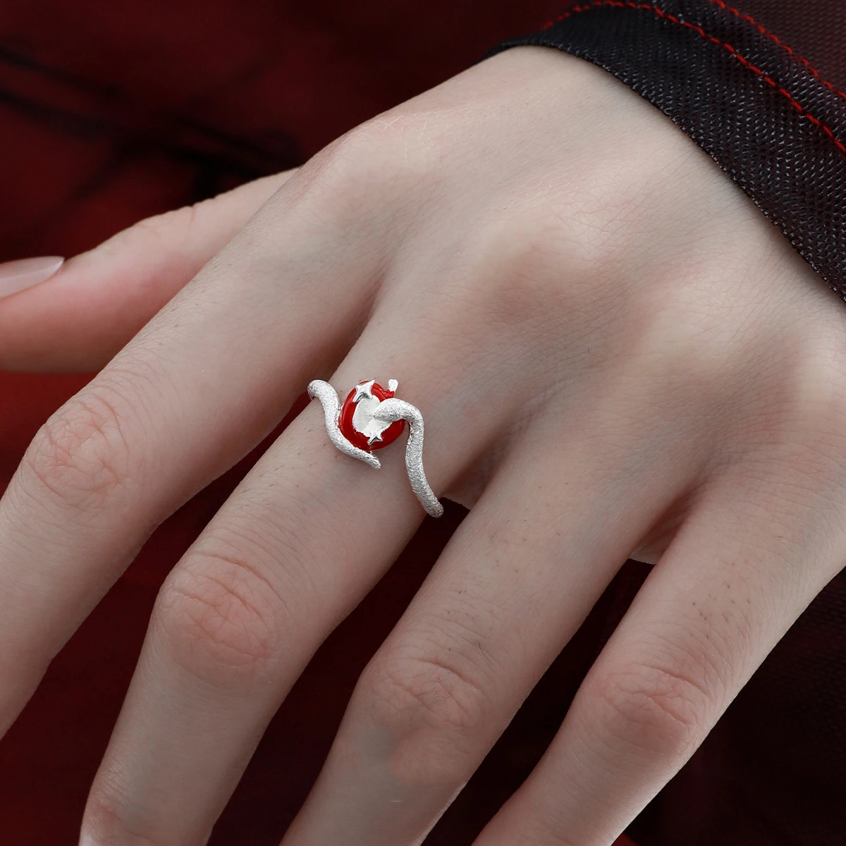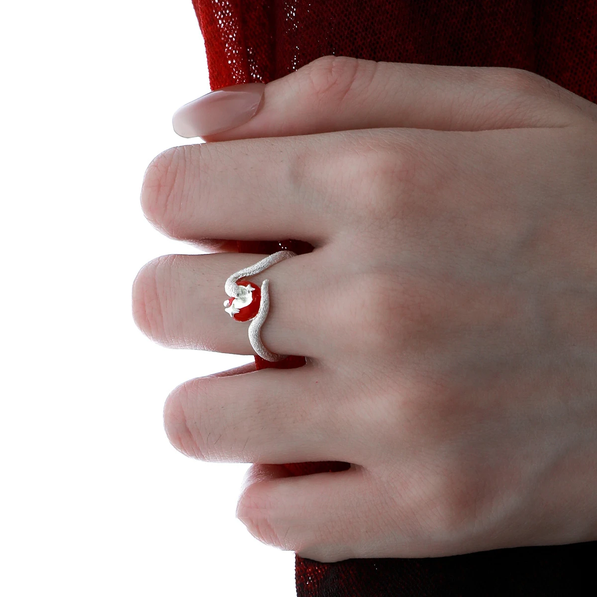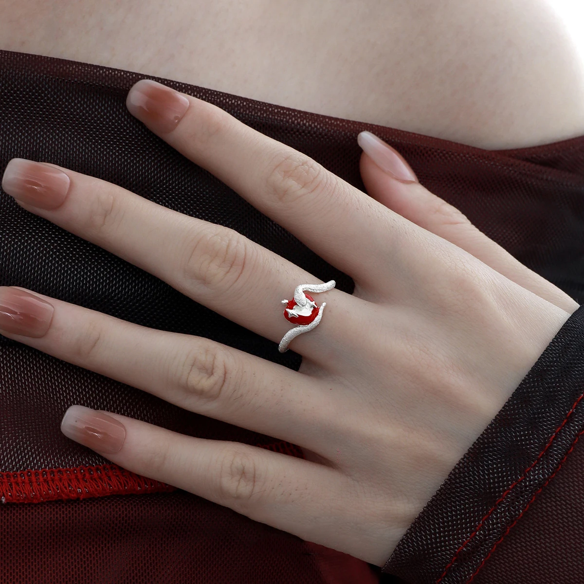 F.I.N.S Original S925 Sterling Silver Red Apple Snake Ring Cute Sweet Glitter Star Brushed Open Adjustable Finger Fine Jewelry