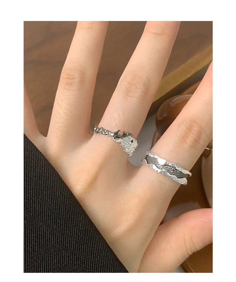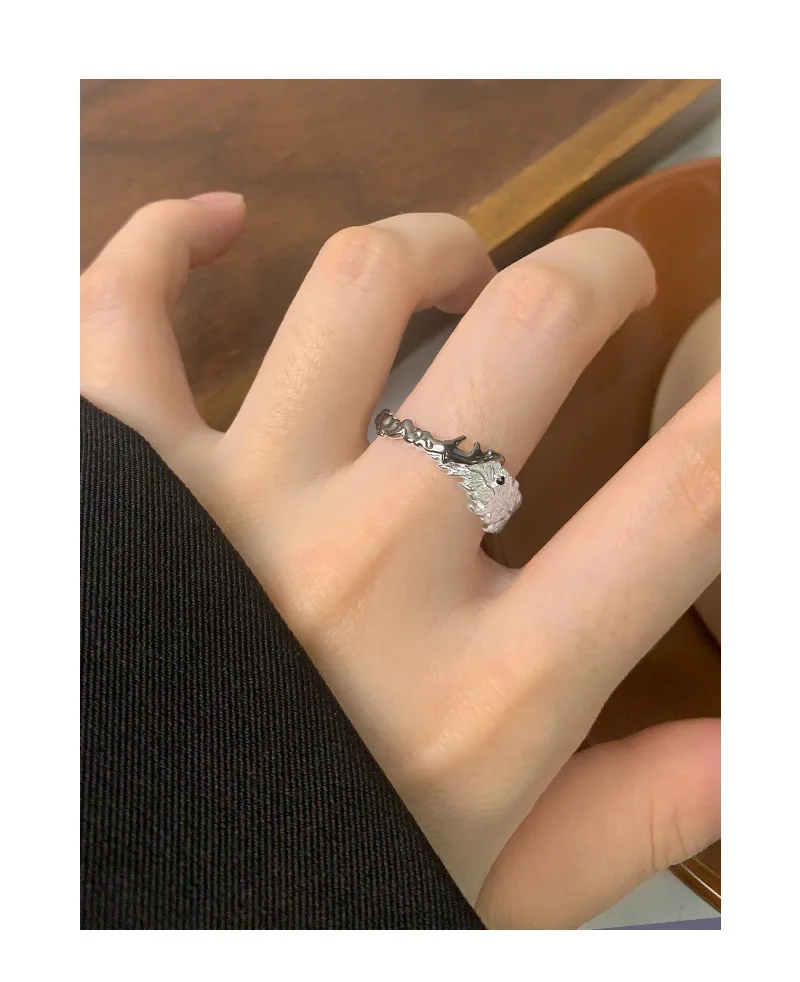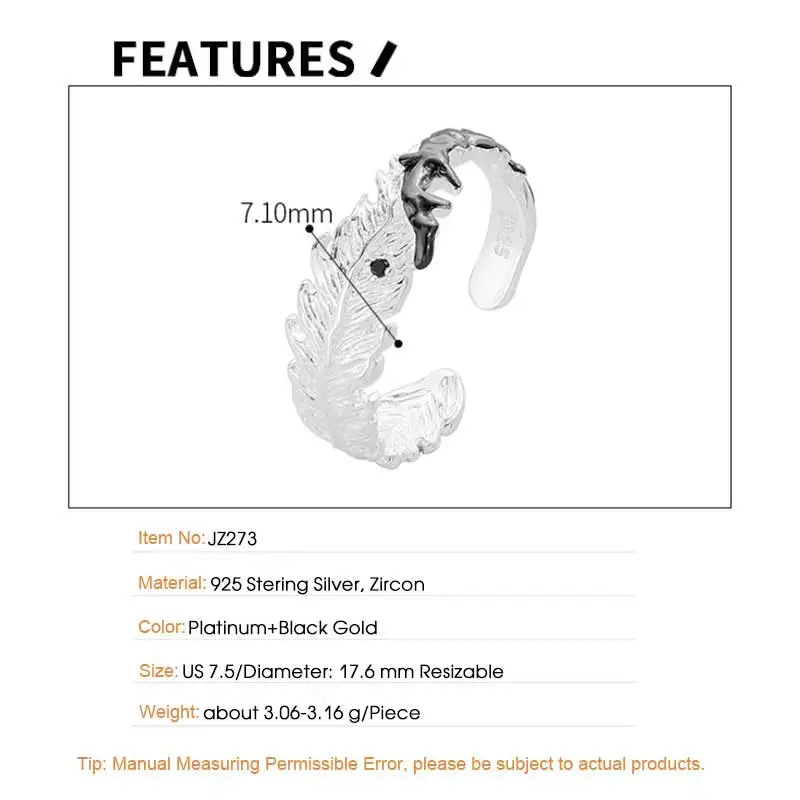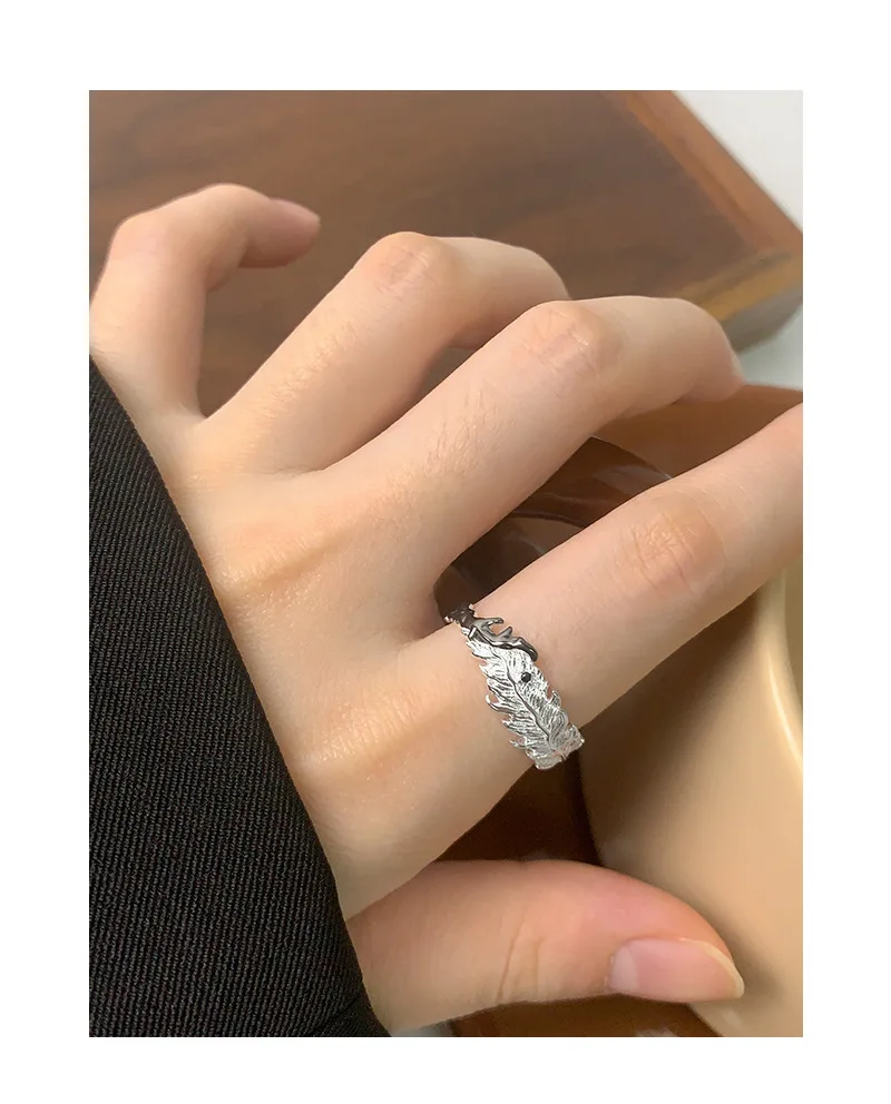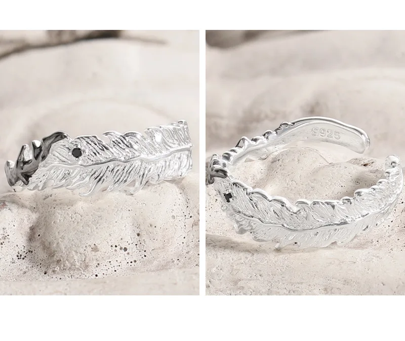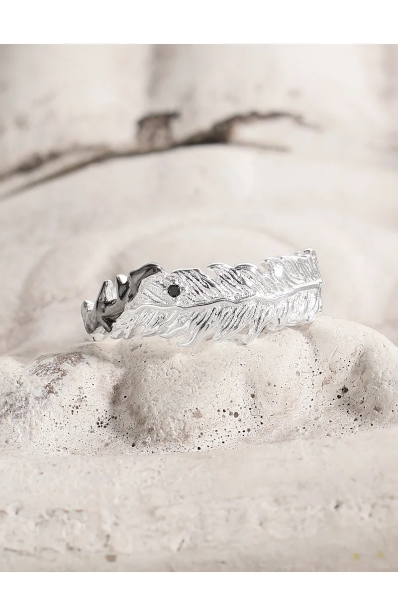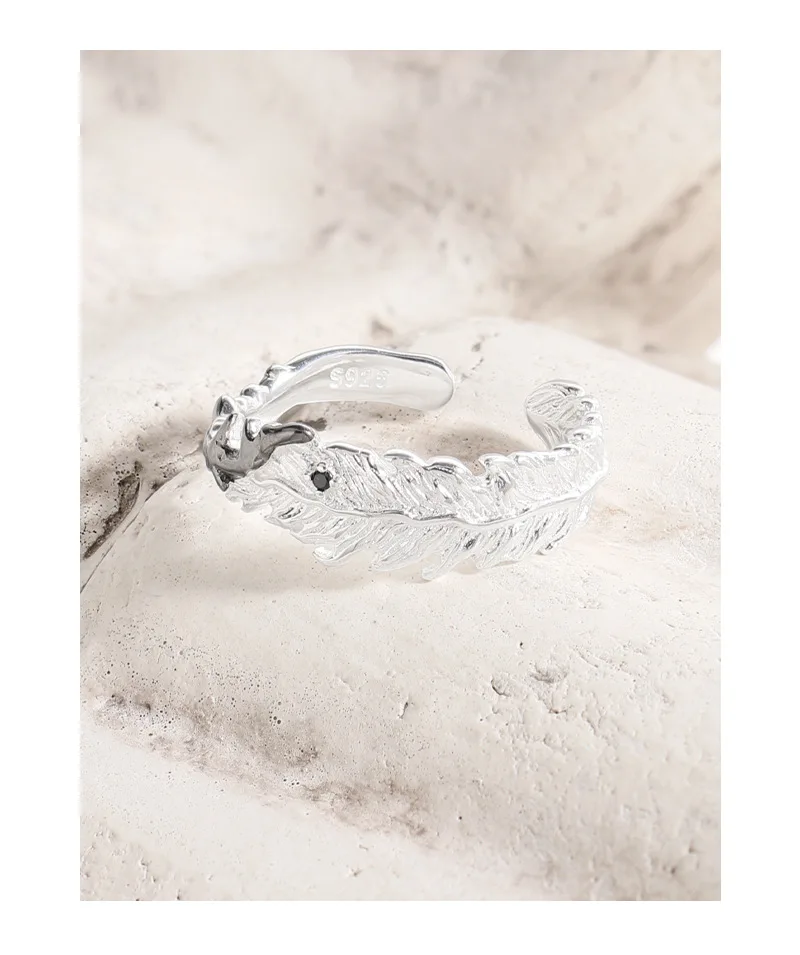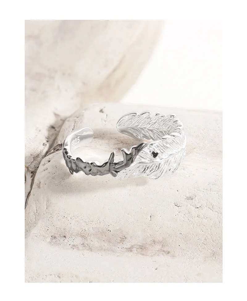 Jewel Type : F.I.N.S Original S925 Sterling Silver Ring Feather Irregular Fold Color Collision Texture Open Adjustable Finger Fine Jewelry