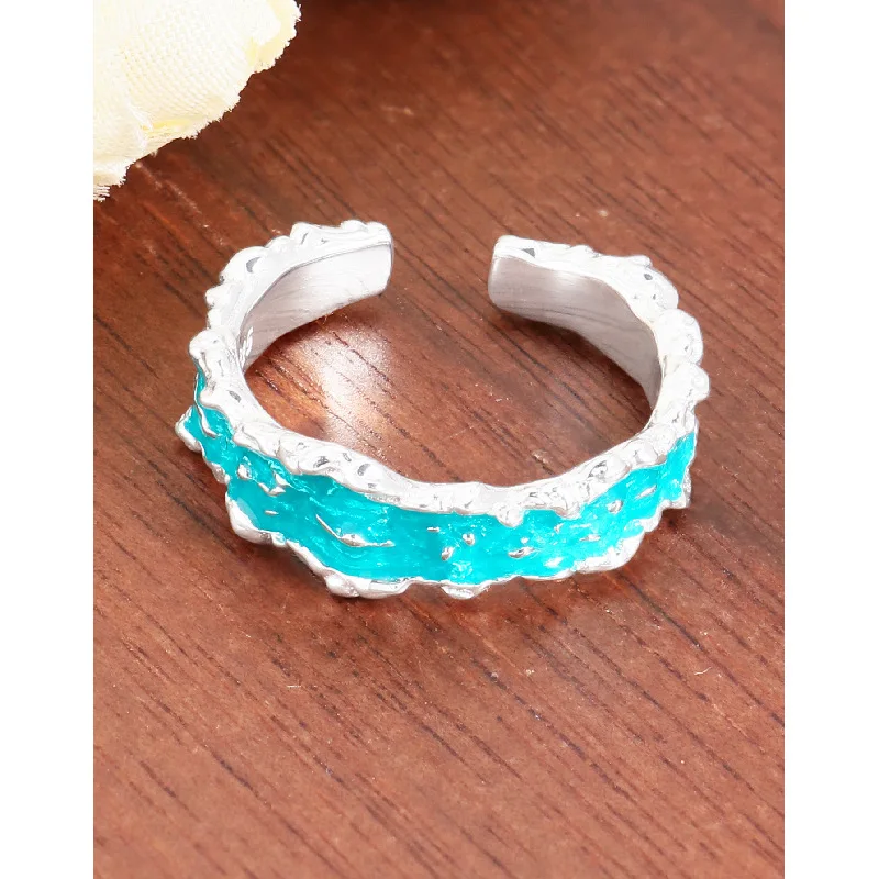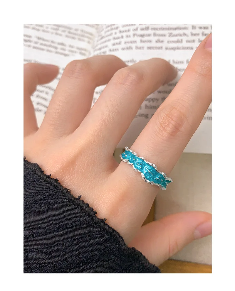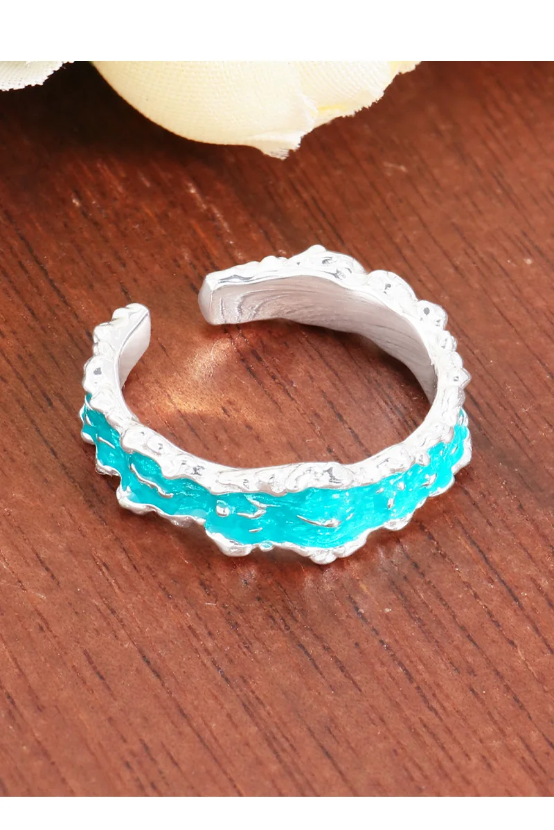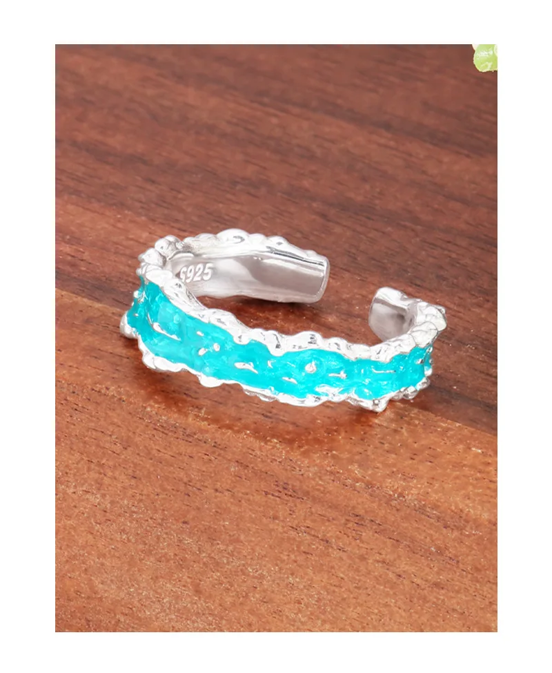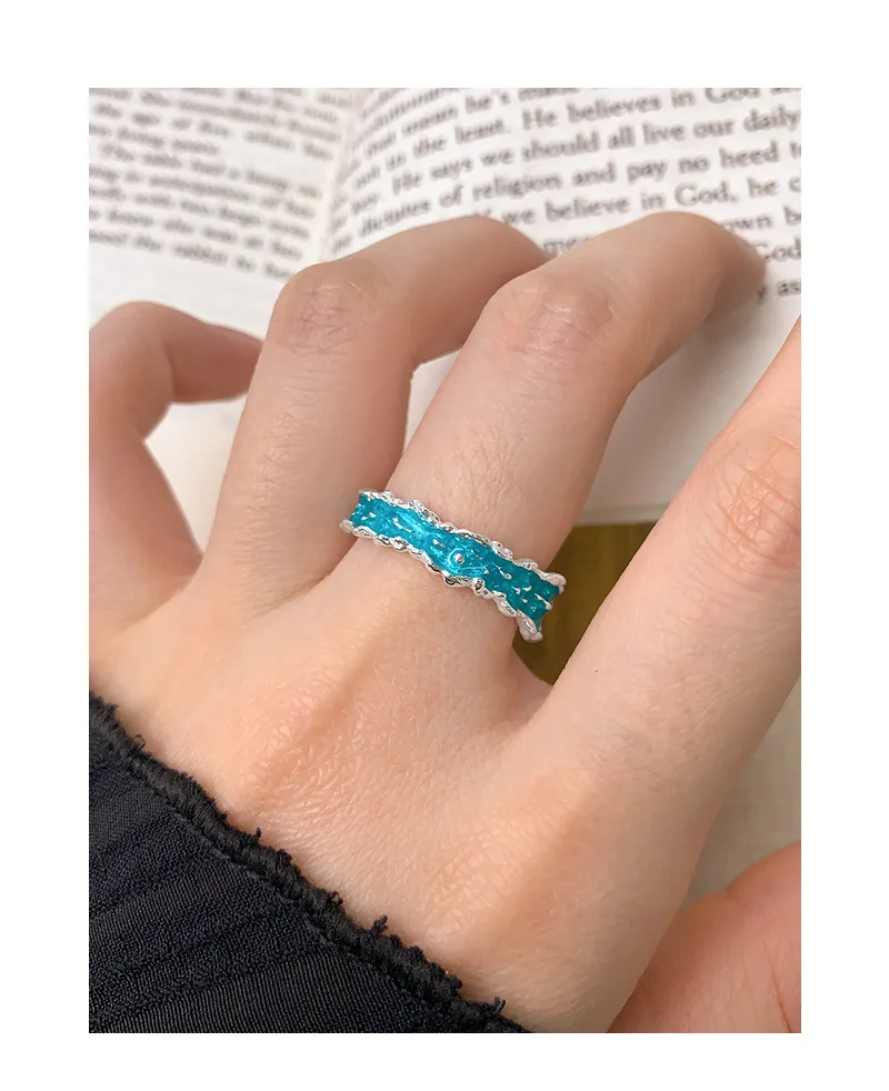 F.I.N.S Original S925 Sterling Silver Ring Irregular Fold Texture Blue Drip Oil Opening Adjustable Finger Jewelry for Women