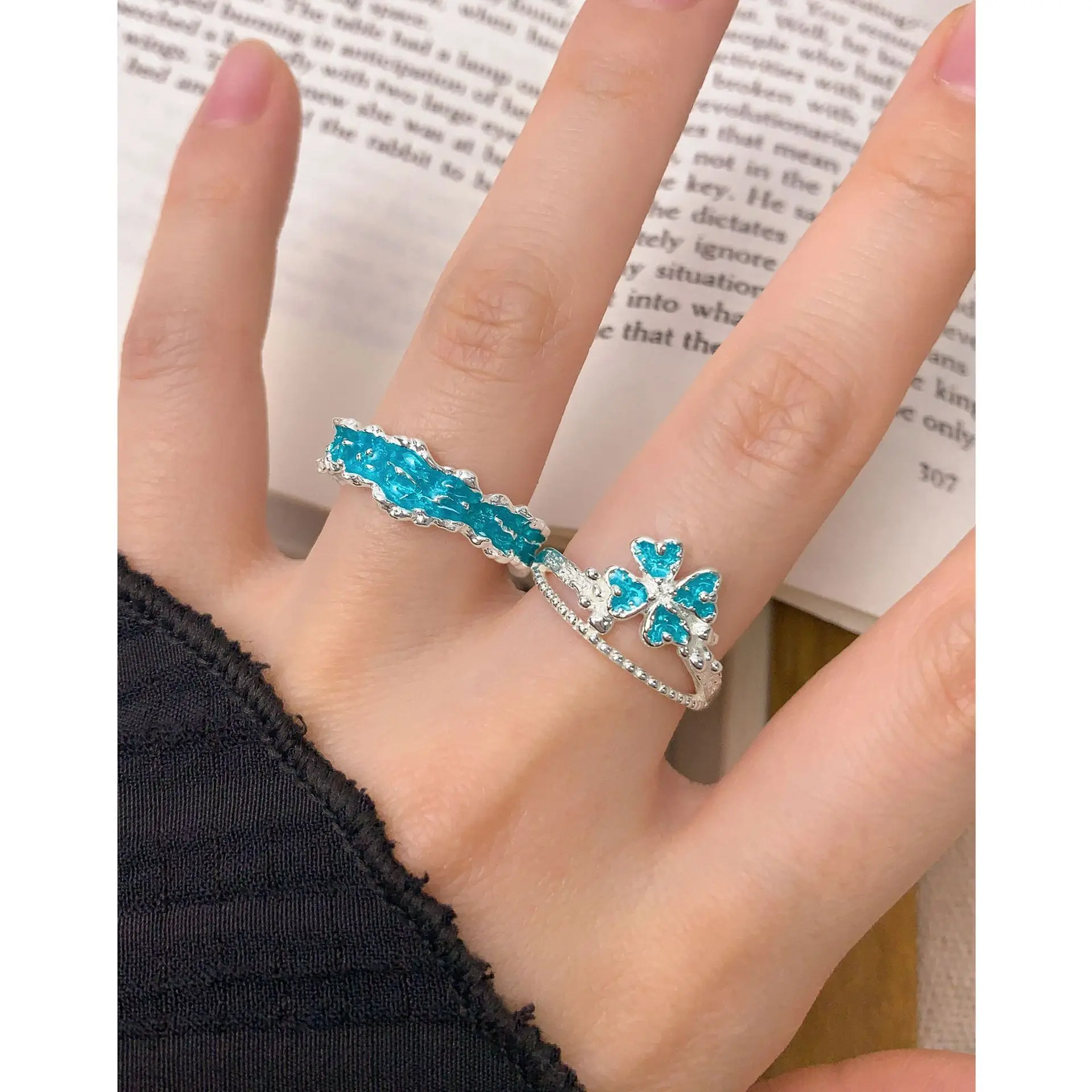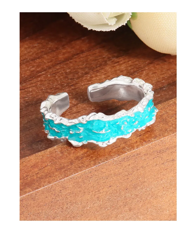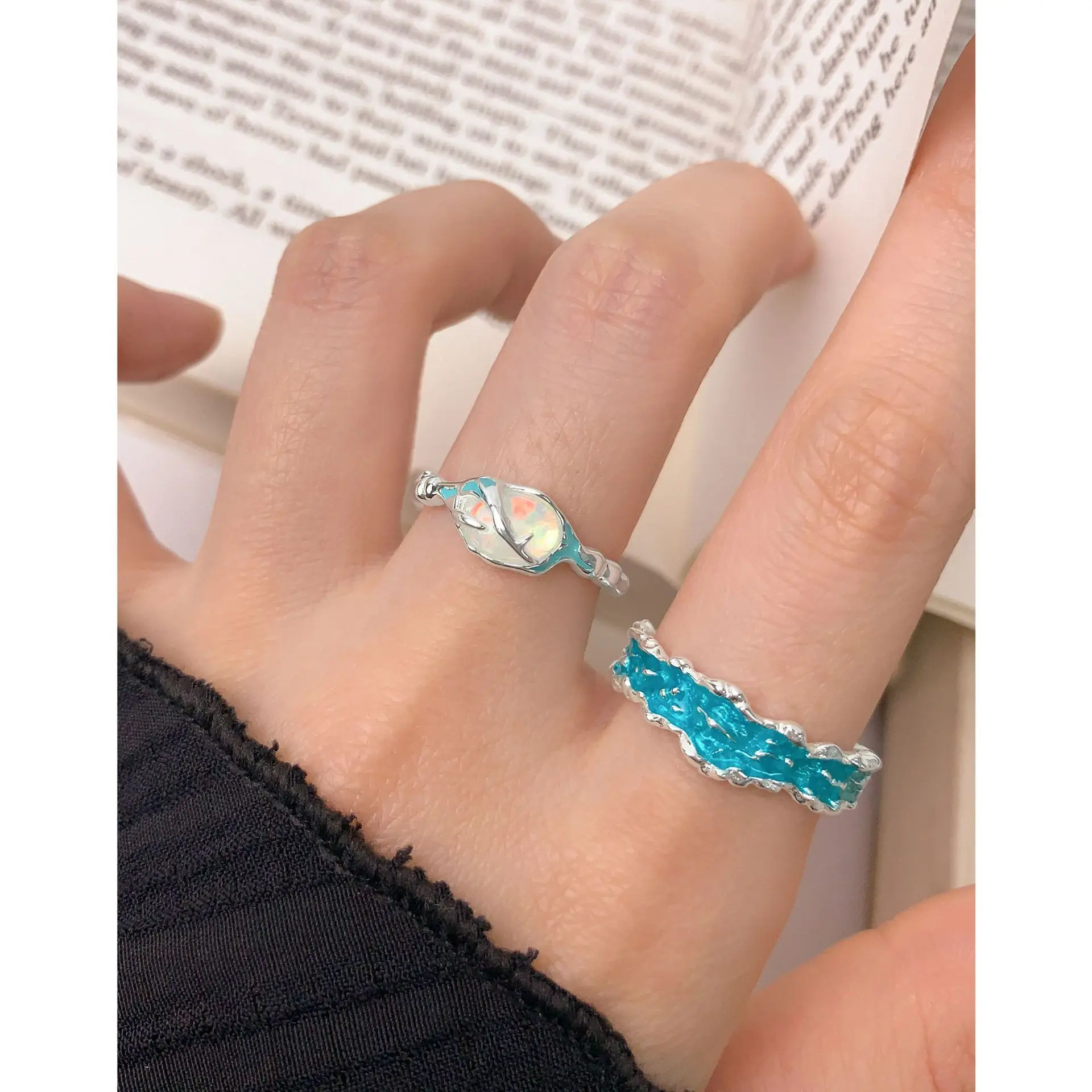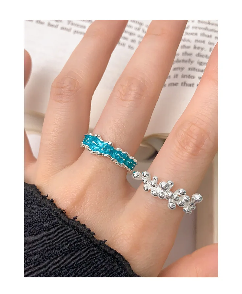 F.I.N.S Original S925 Sterling Silver Ring Irregular Fold Texture Blue Drip Oil Opening Adjustable Finger Jewelry for Women