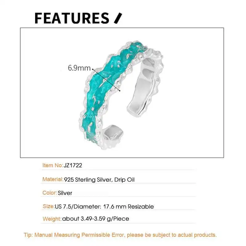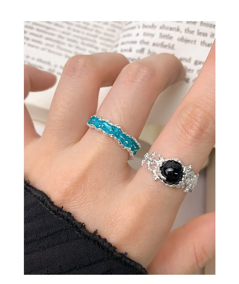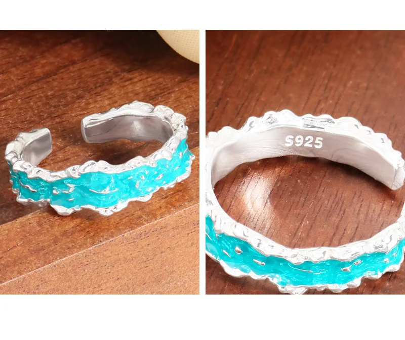 Jewel Type : F.I.N.S Original S925 Sterling Silver Ring Irregular Fold Texture Blue Drip Oil Opening Adjustable Finger Jewelry for Women