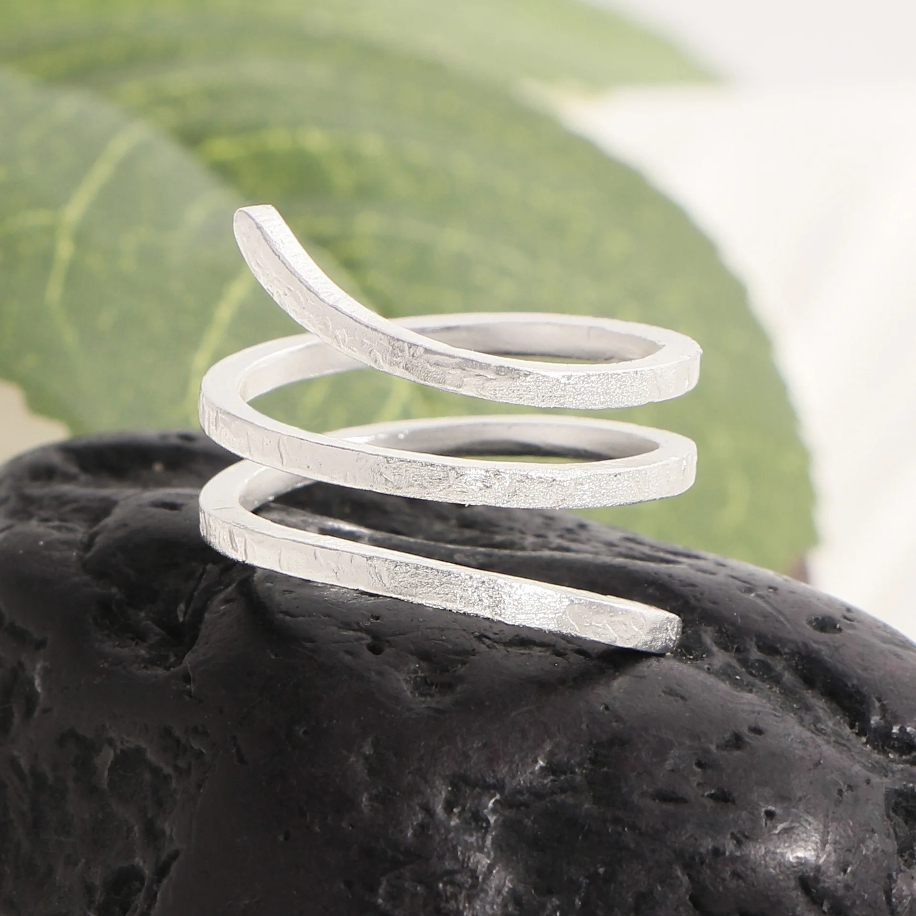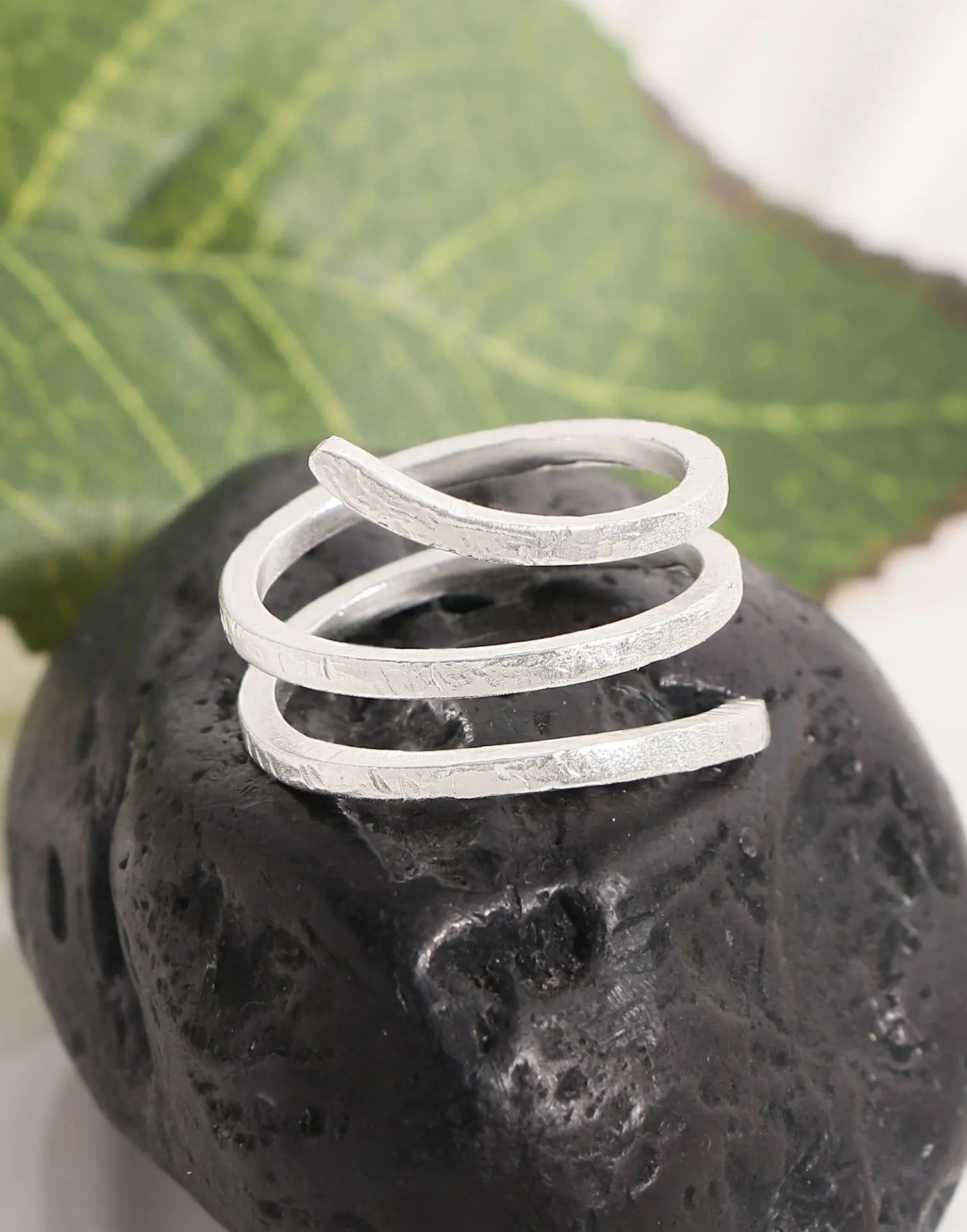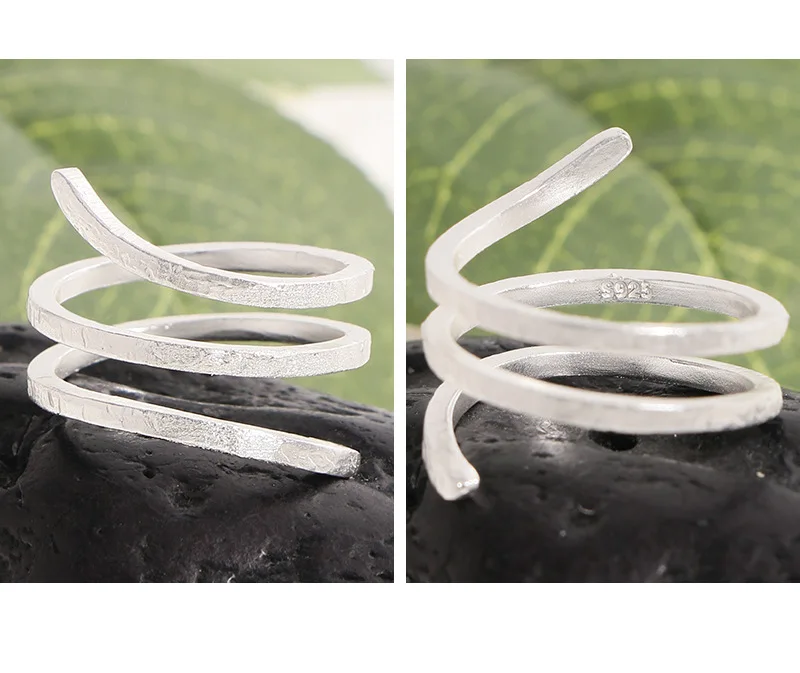 F.I.N.S Original S925 Sterling Silver Spiral Ring Texture Multi Layered Open Adjustable Mid Finger Jewelry Prevent Allersgy Gift