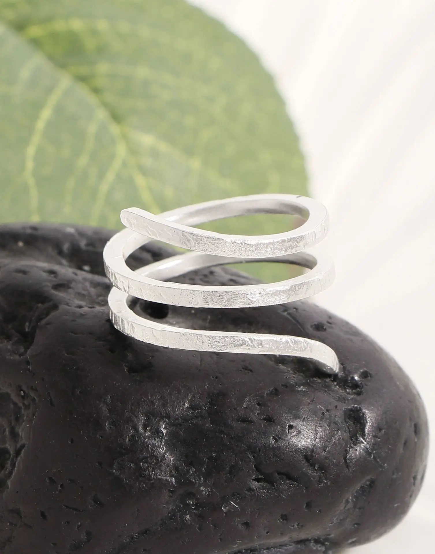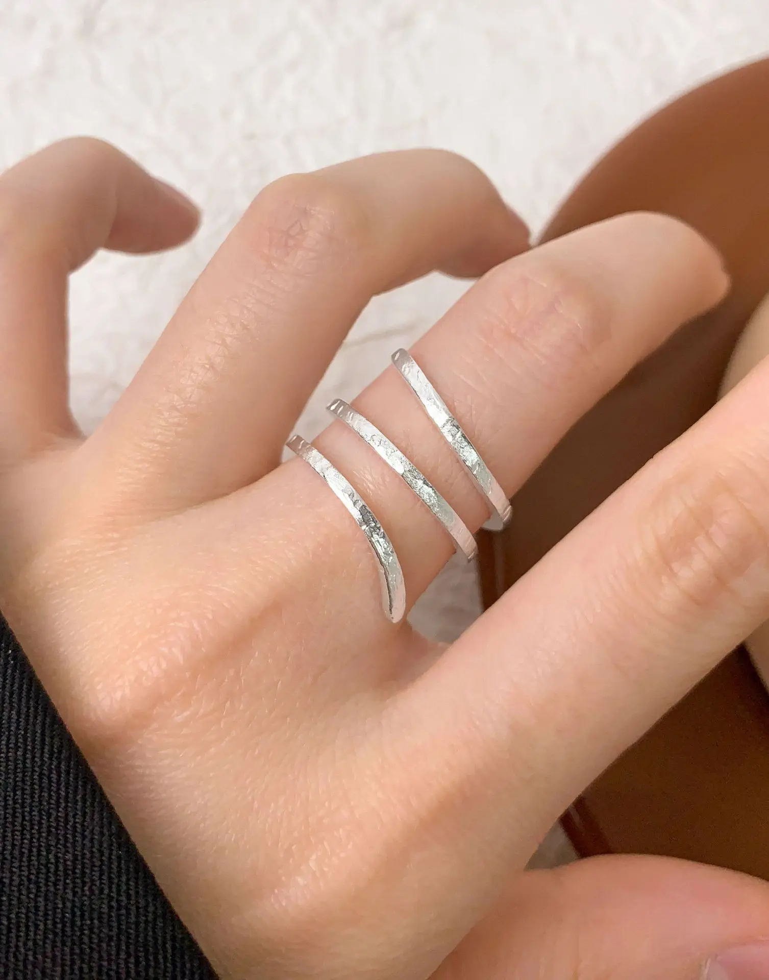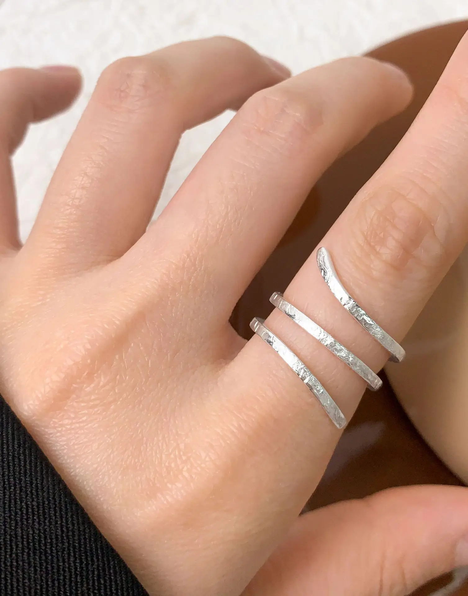 F.I.N.S Original S925 Sterling Silver Spiral Ring Texture Multi Layered Open Adjustable Mid Finger Jewelry Prevent Allersgy Gift