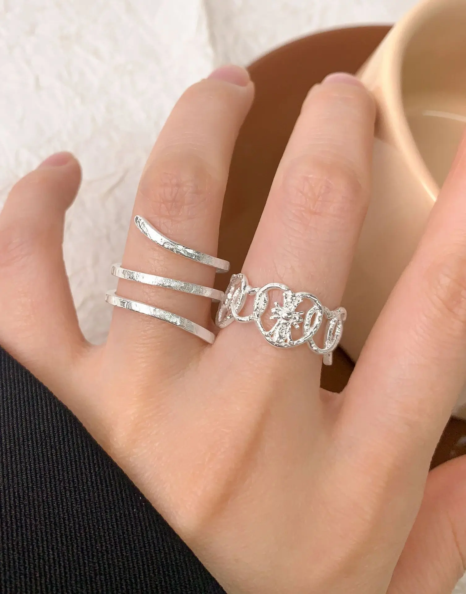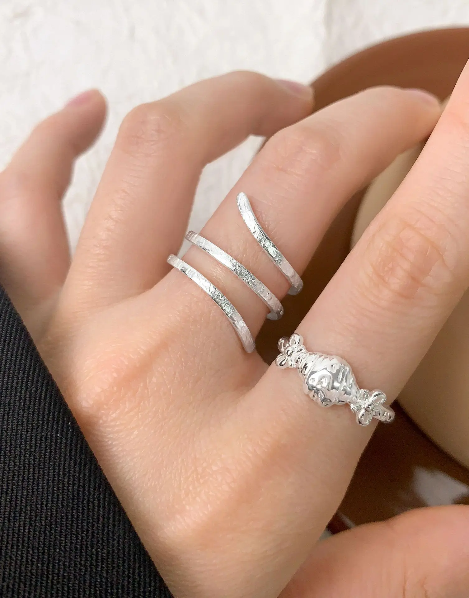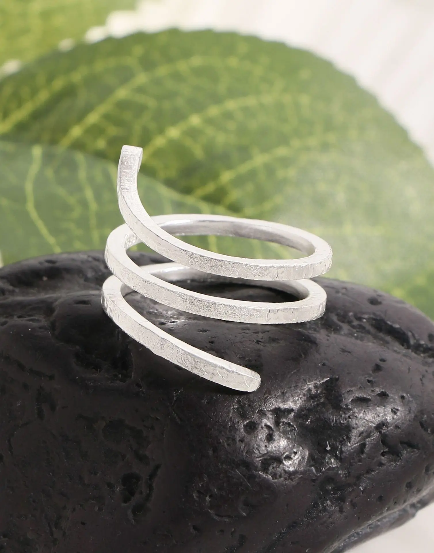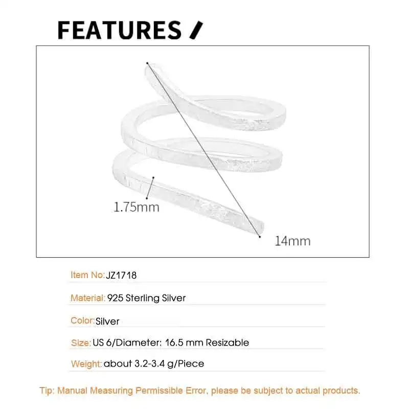 Jewel Type : F.I.N.S Original S925 Sterling Silver Spiral Ring Texture Multi Layered Open Adjustable Mid Finger Jewelry Prevent Allersgy Gift