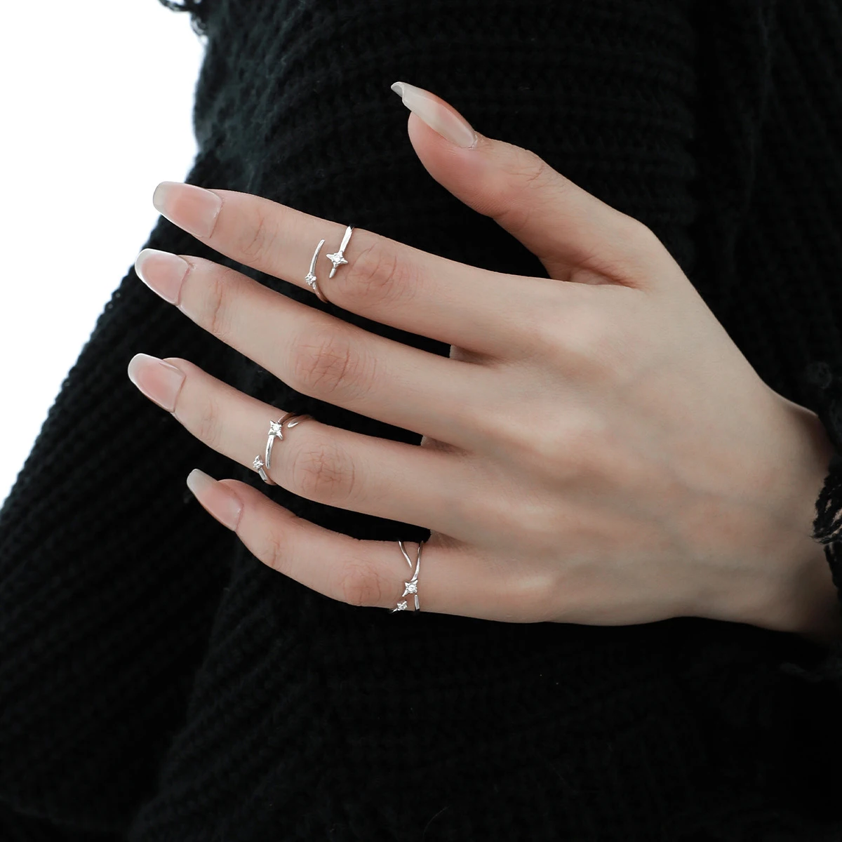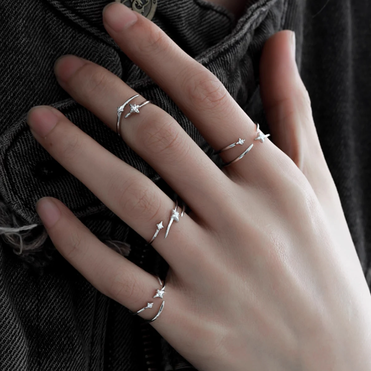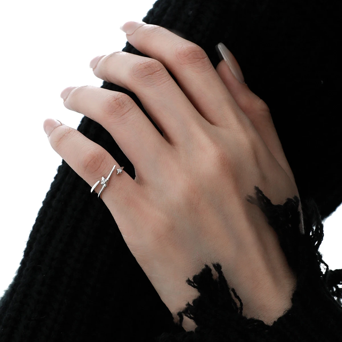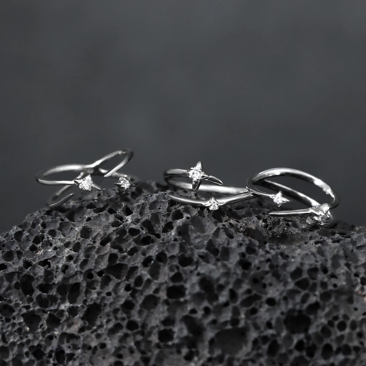 F.I.N.S Original Star Track Zircon S925 Sterling Silver Tail Ring Open Index Finger Stackable Hypoallergenic Fine Jewelry