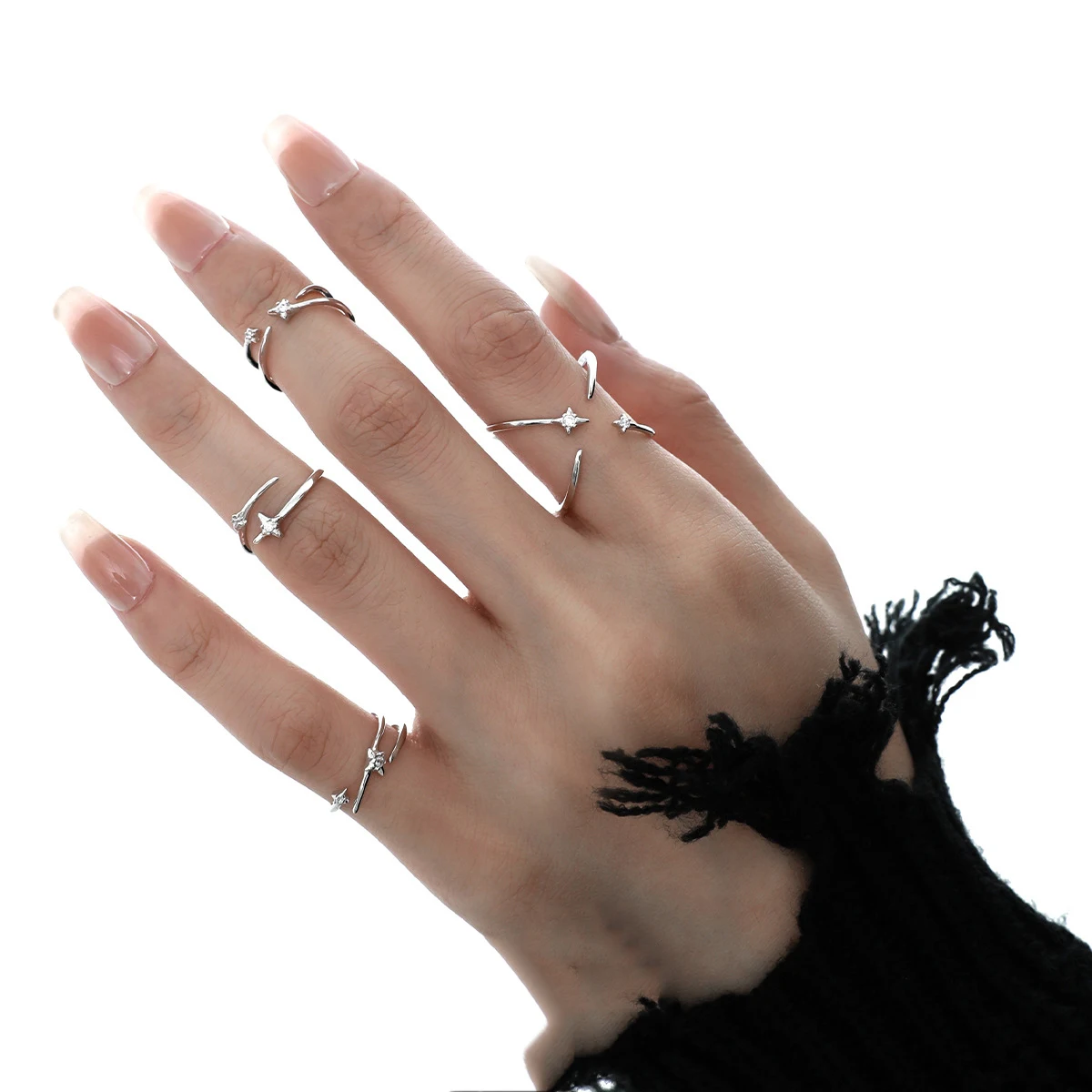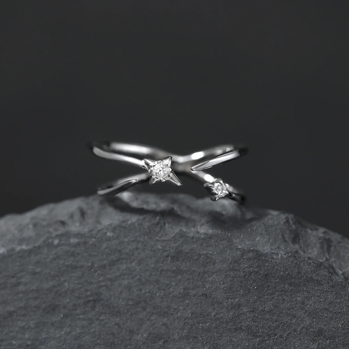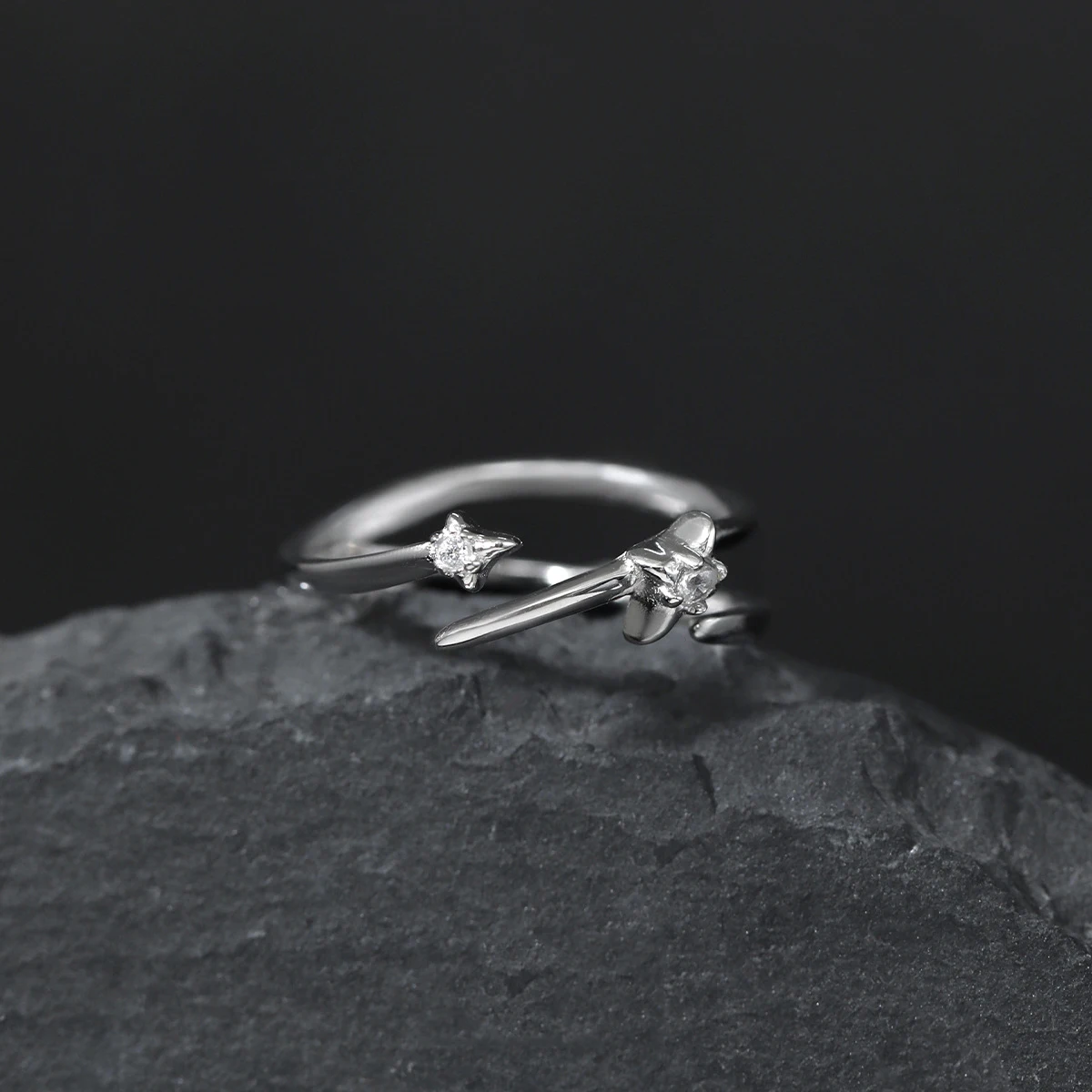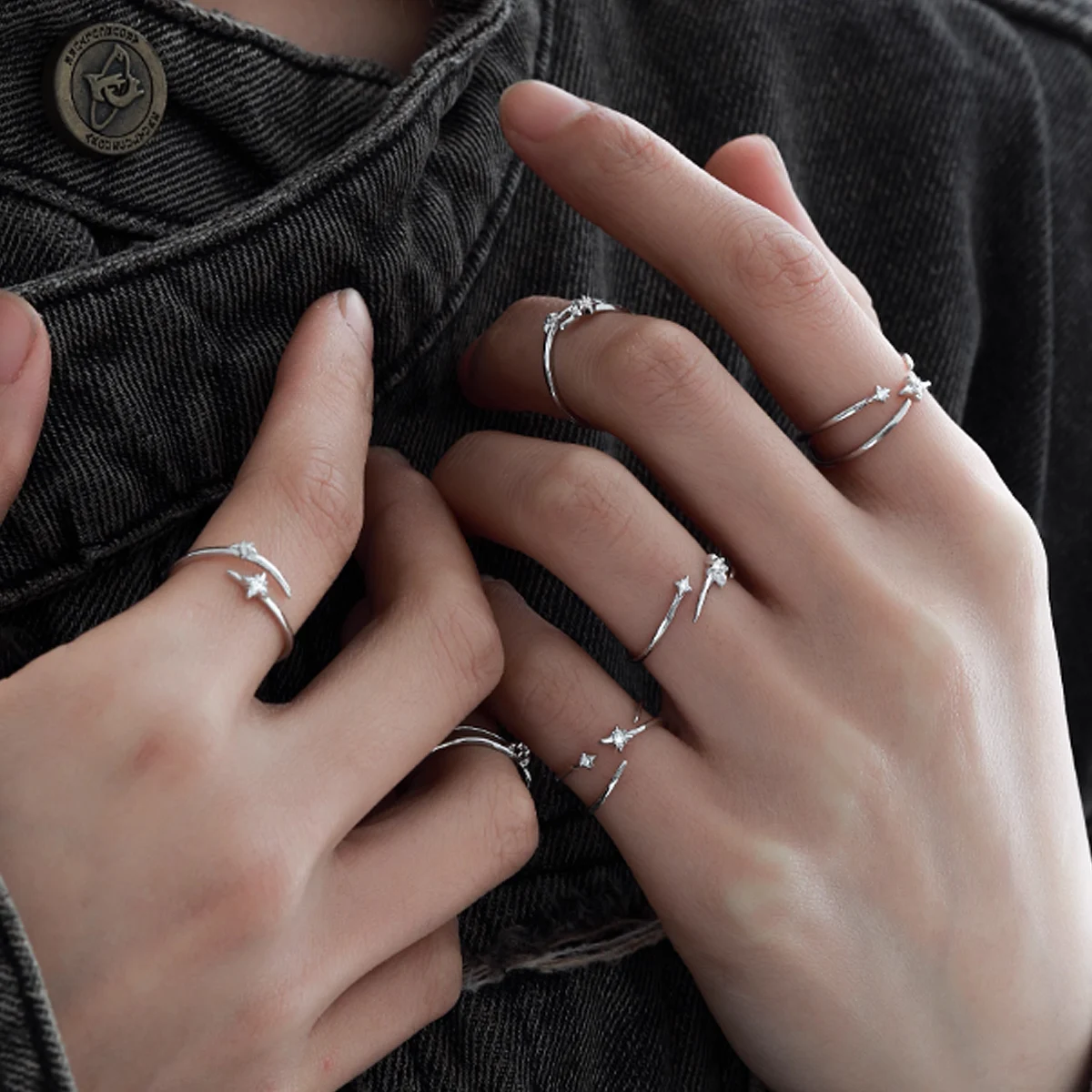 F.I.N.S Original Star Track Zircon S925 Sterling Silver Tail Ring Open Index Finger Stackable Hypoallergenic Fine Jewelry