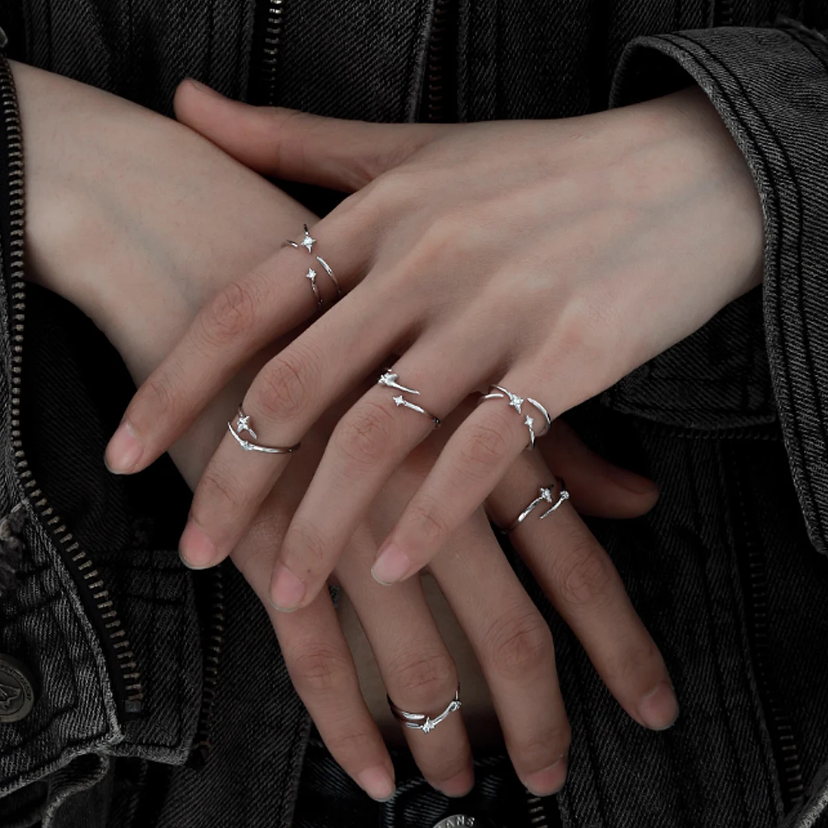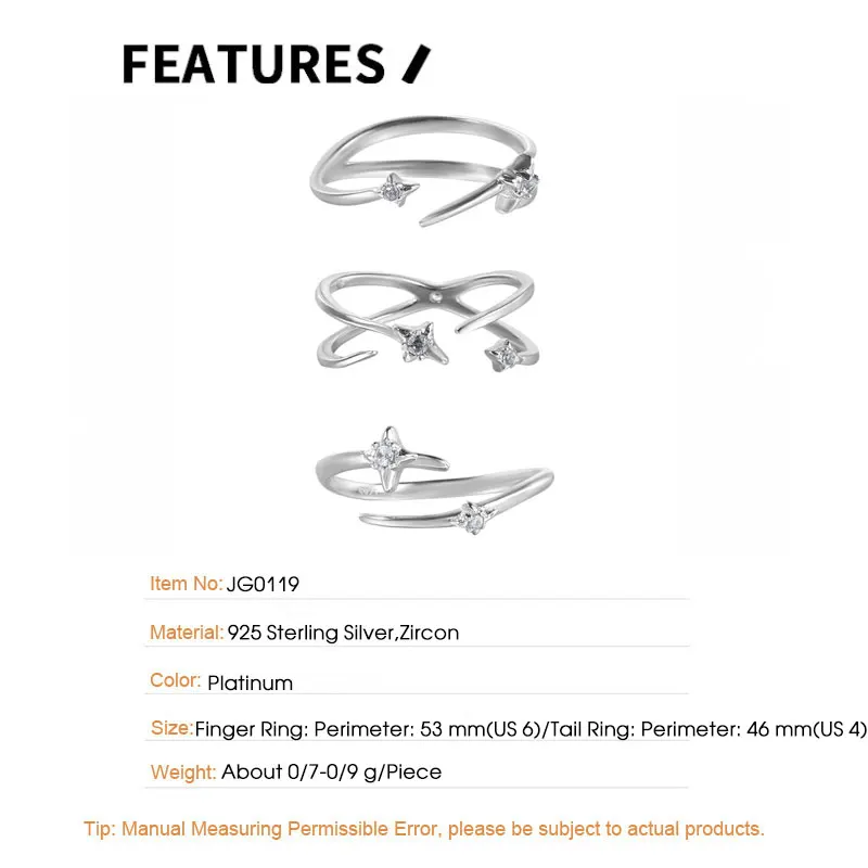 Jewel Type : F.I.N.S Original Star Track Zircon S925 Sterling Silver Tail Ring Open Index Finger Stackable Hypoallergenic Fine Jewelry