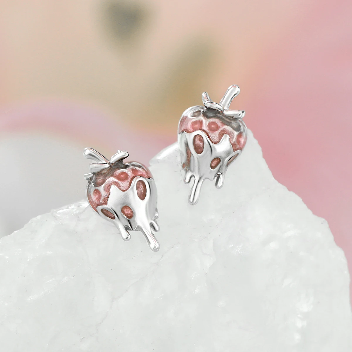 F.I.N.S Original Sweet Cute Strawberry S925 Sterling Silver Stud Earrings Oil-dropping Plant Piercing Ear Fashion Fine Jewelry