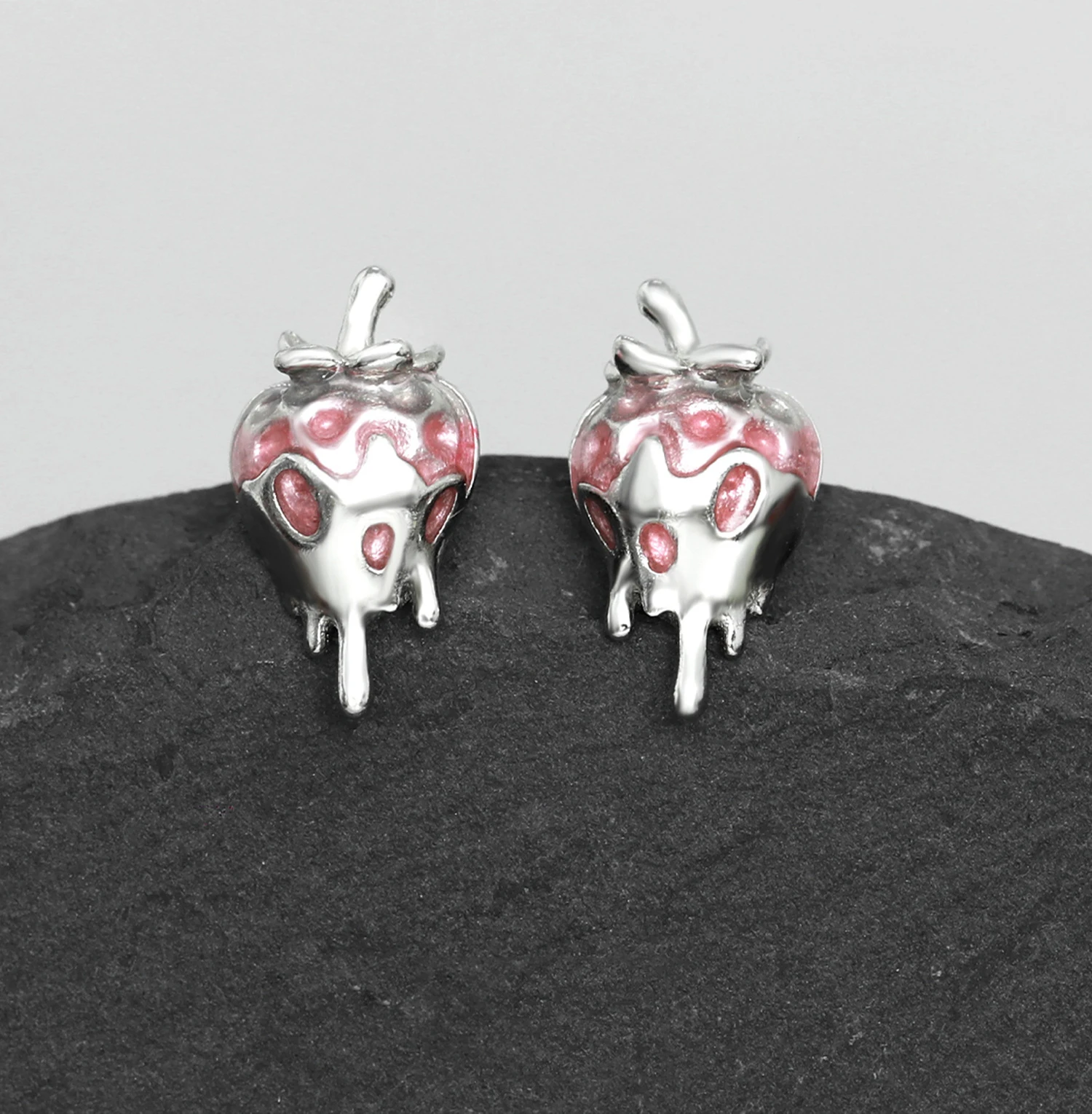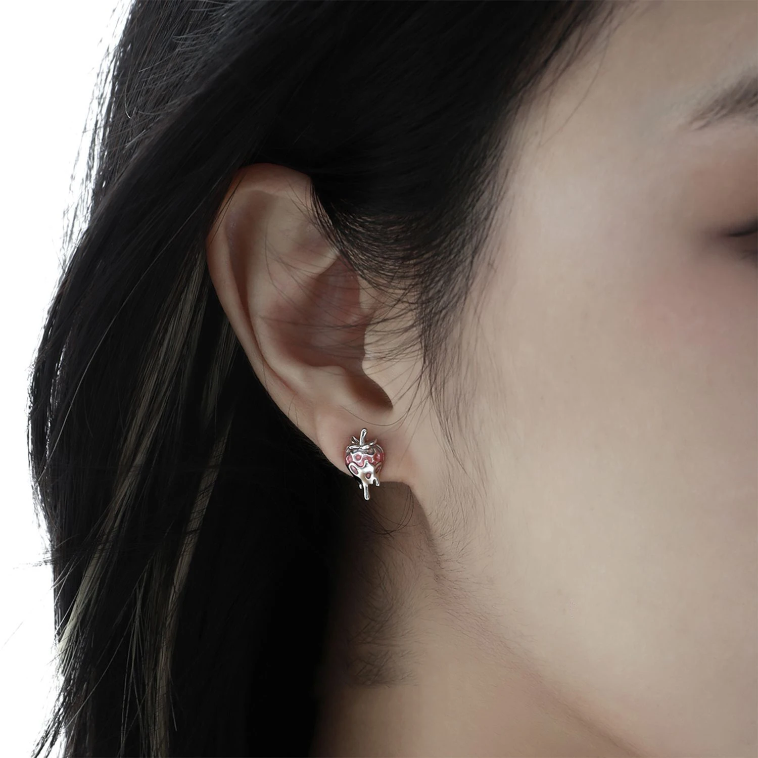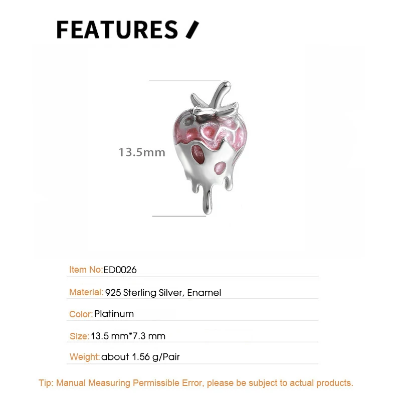 Jewel Type : F.I.N.S Original Sweet Cute Strawberry S925 Sterling Silver Stud Earrings Oil-dropping Plant Piercing Ear Fashion Fine Jewelry