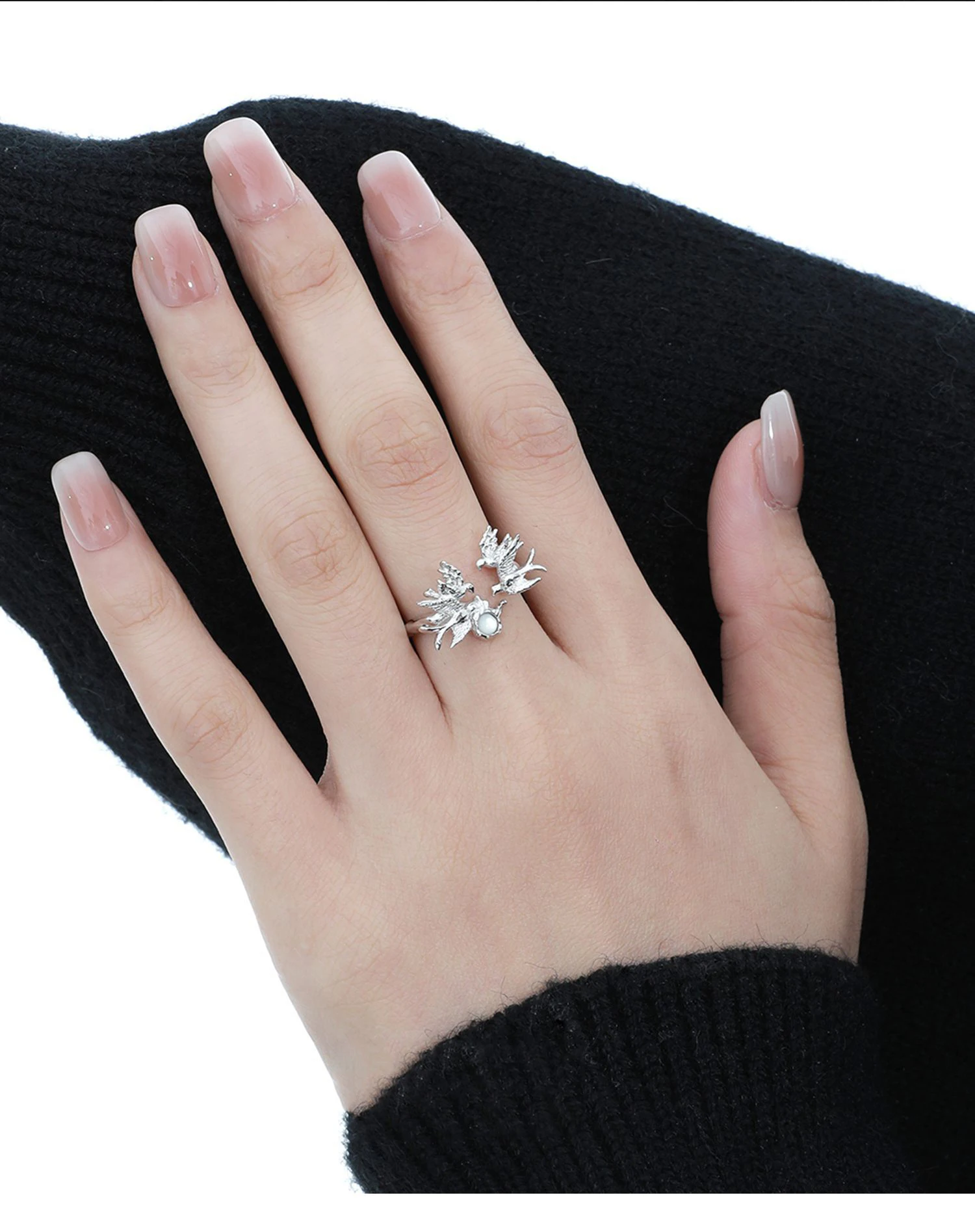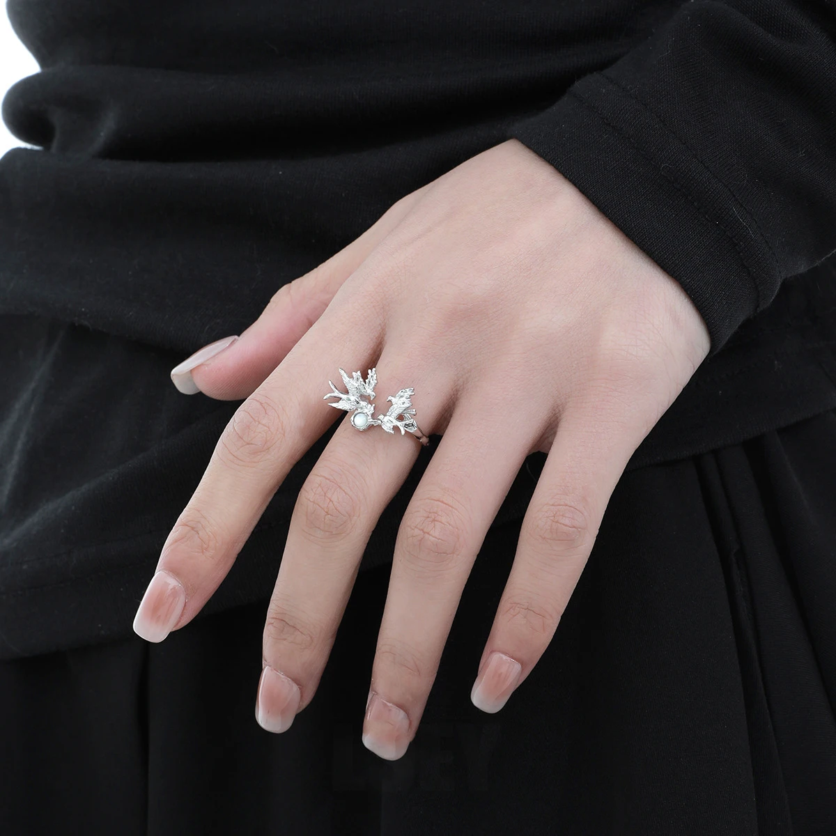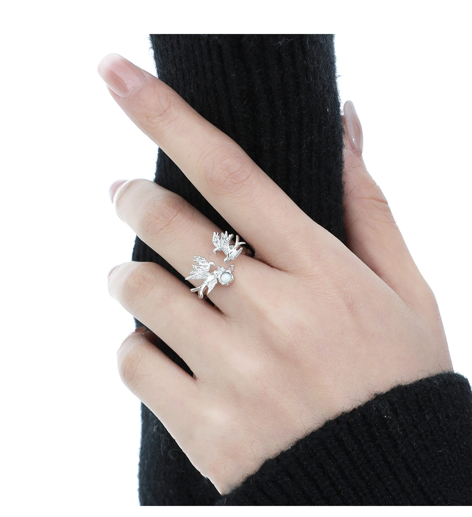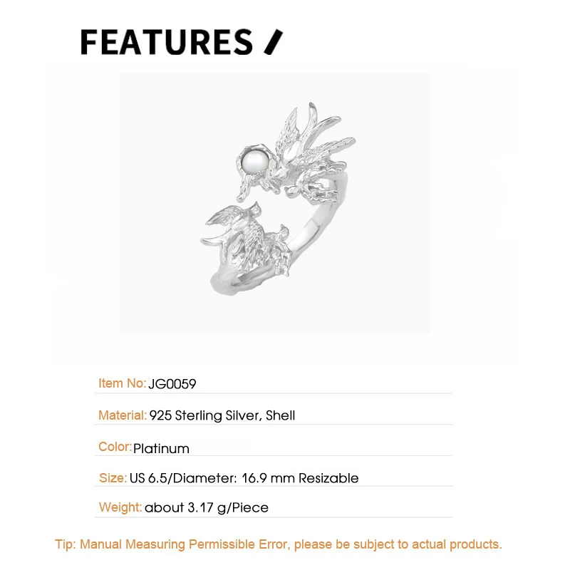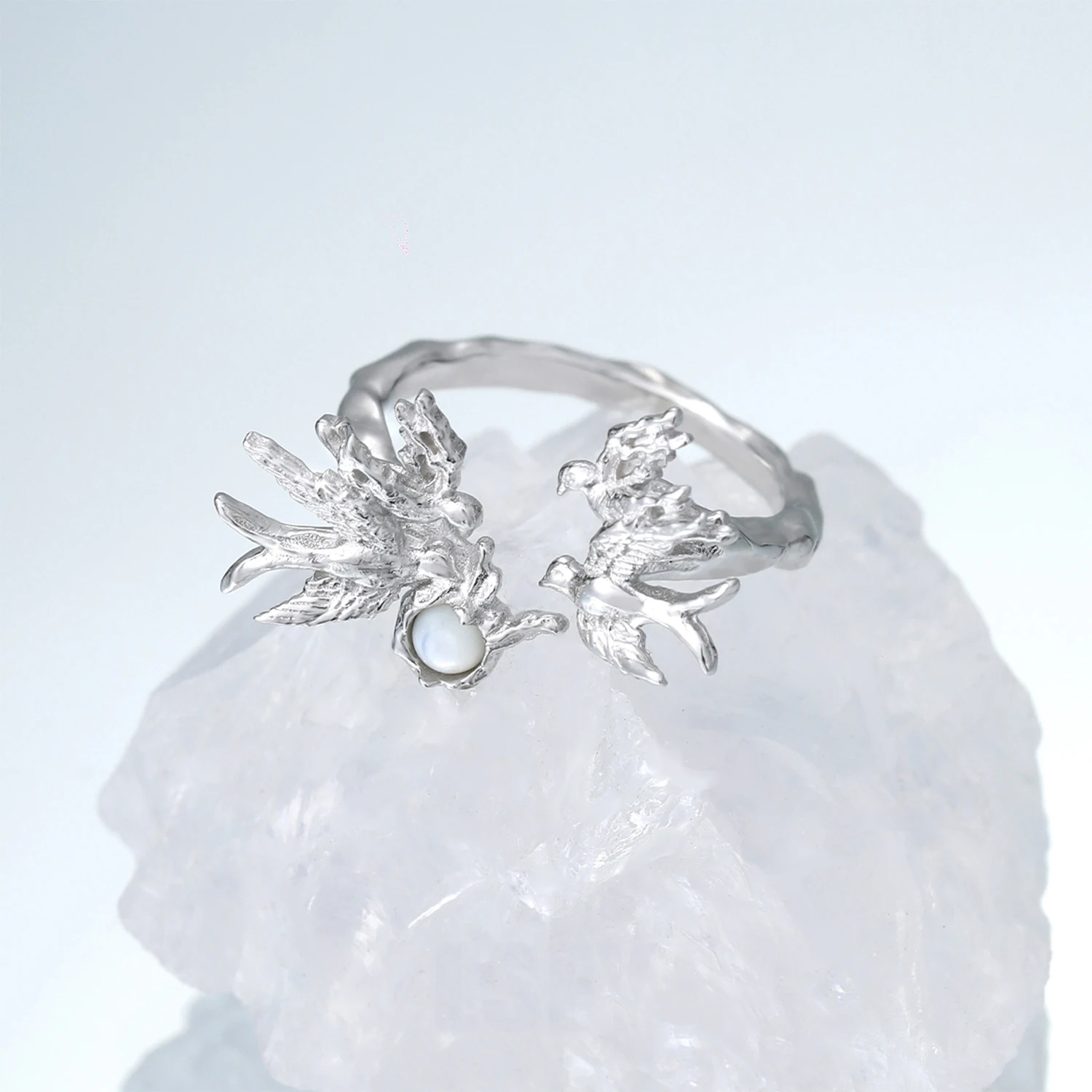Jewel Type : F.I.N.S Original Temperament S925 Sterling Silver Ring Birds White Shell Opening Adjutable Finger Hypoallergenic Fine Jewelry