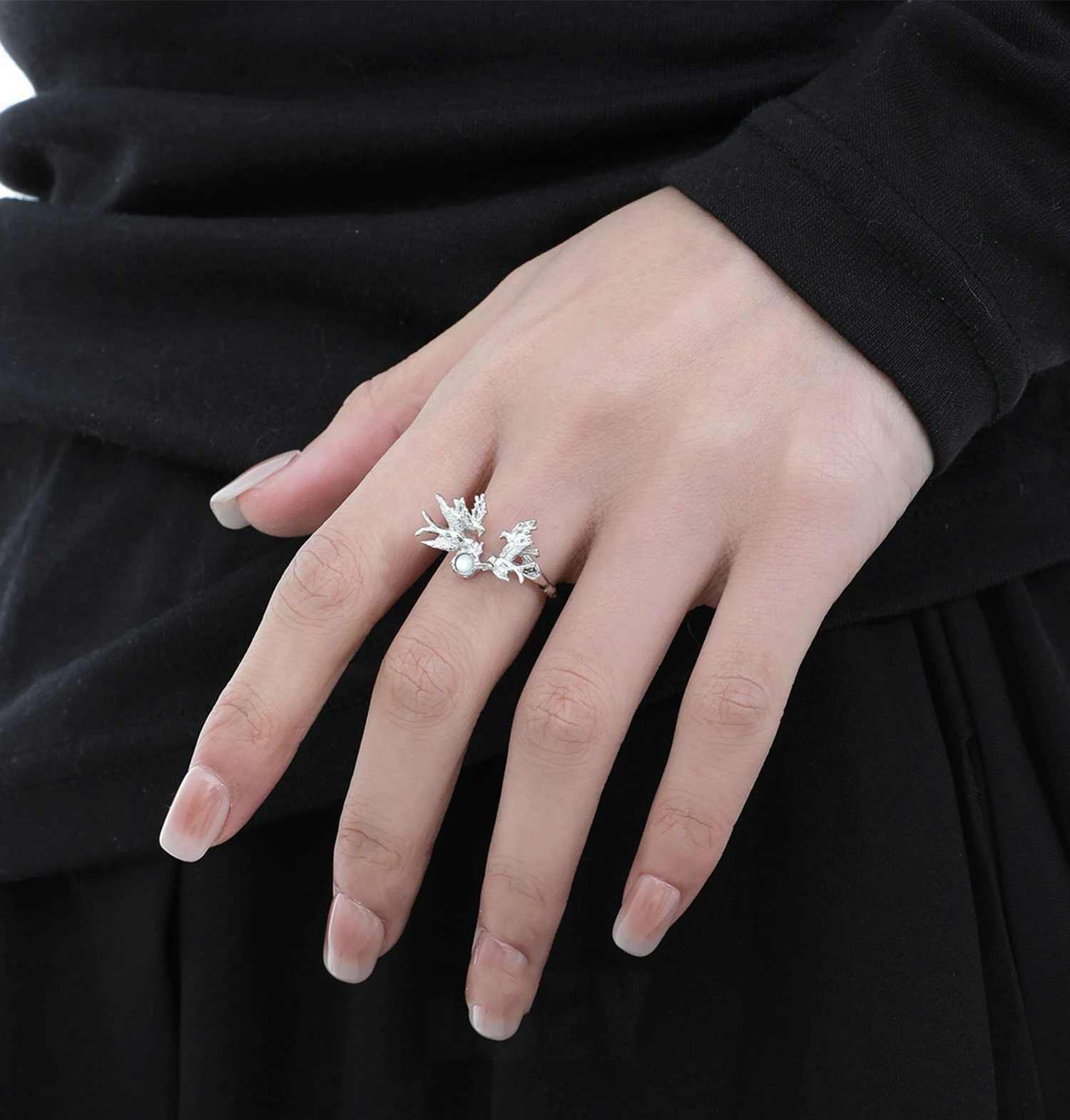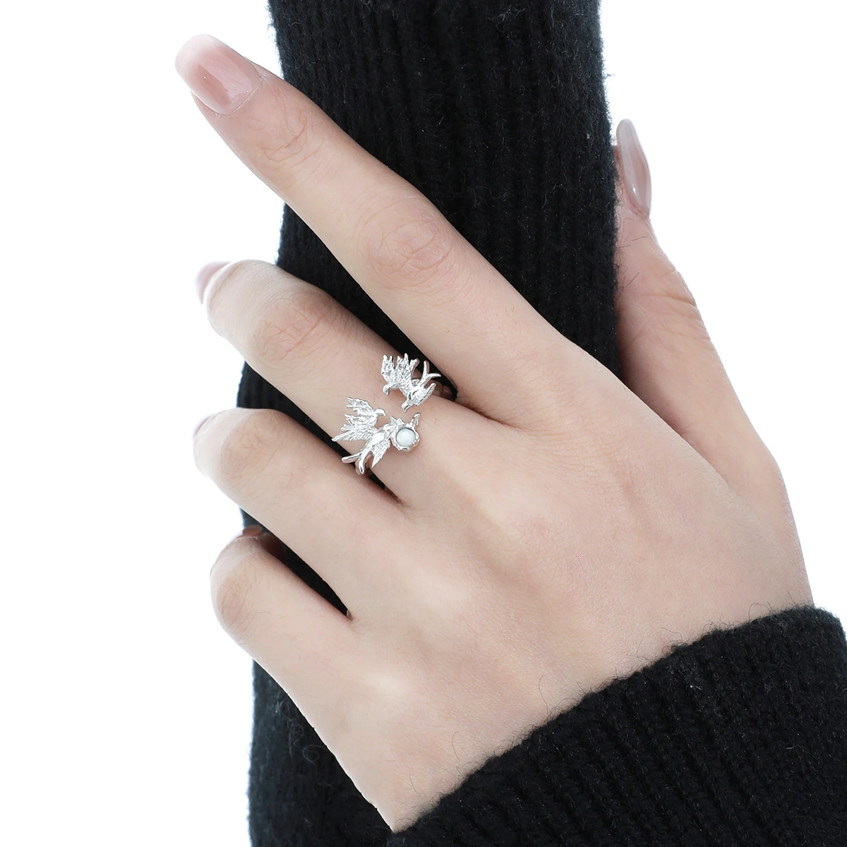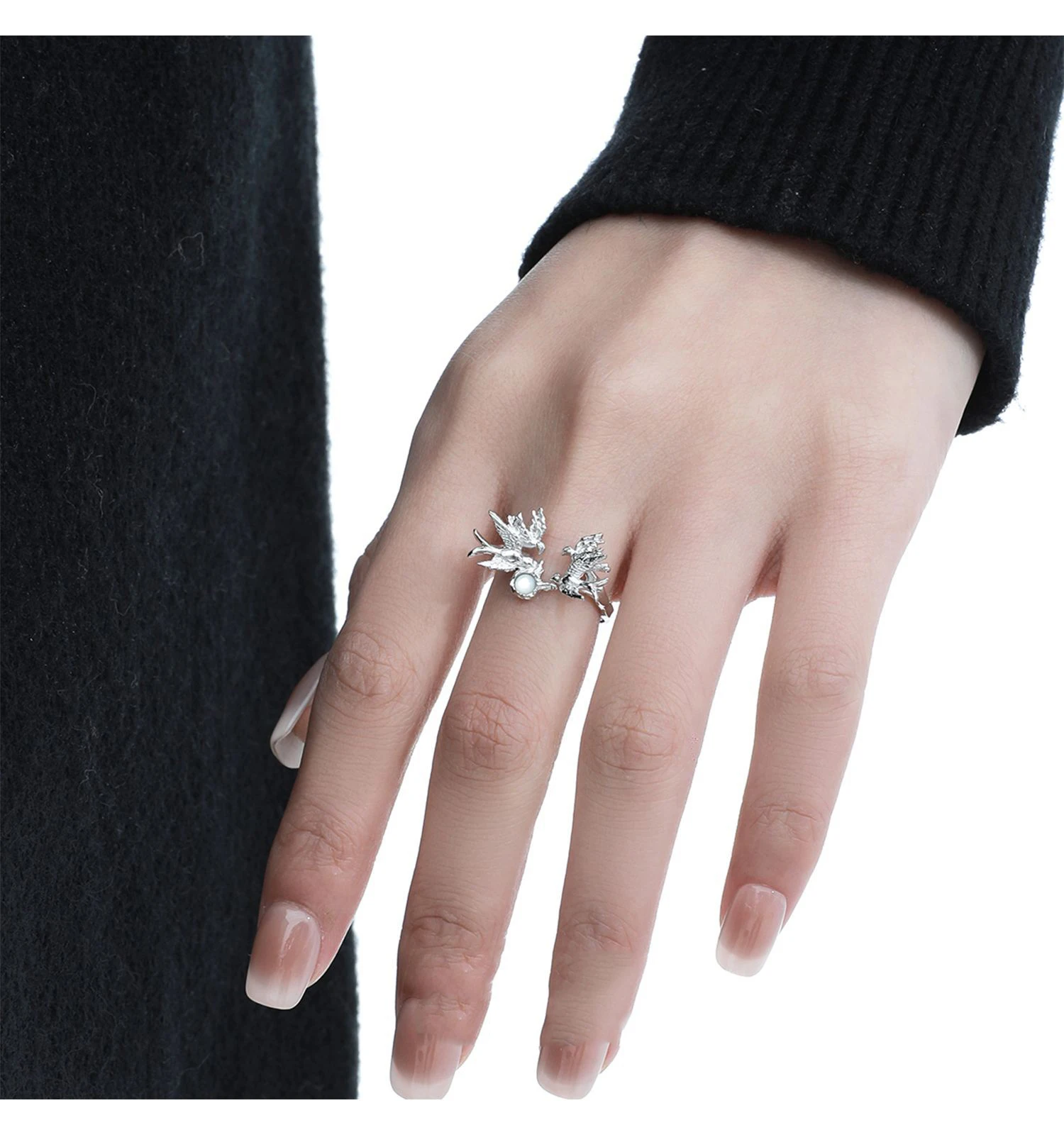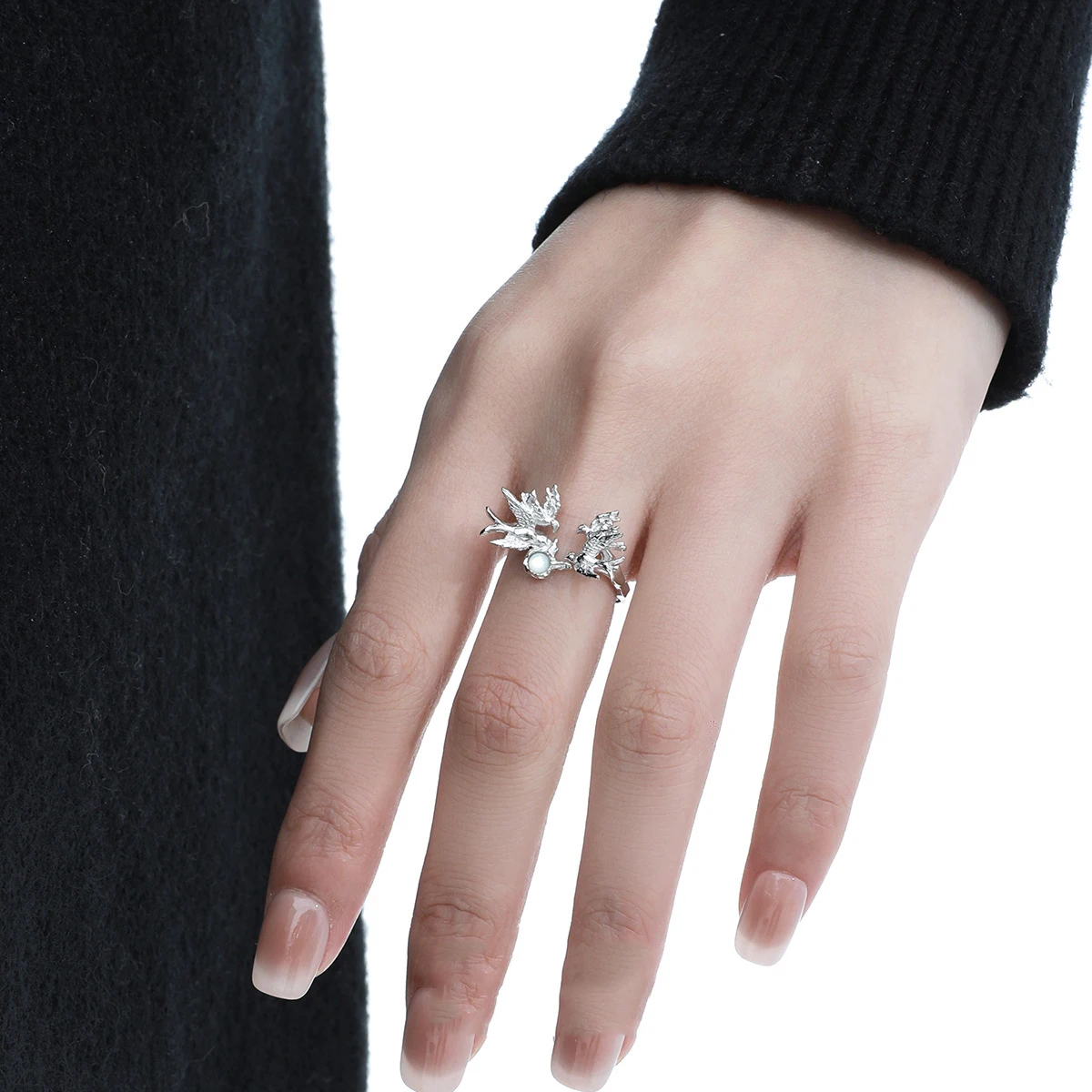 Jewel Type : F.I.N.S Original Temperament S925 Sterling Silver Ring Birds White Shell Opening Adjutable Finger Hypoallergenic Fine Jewelry