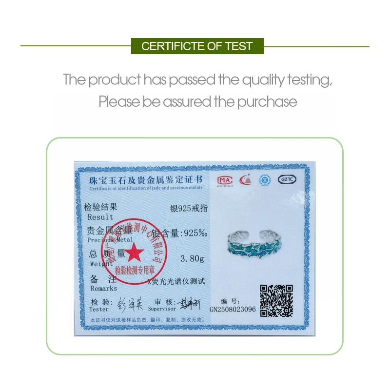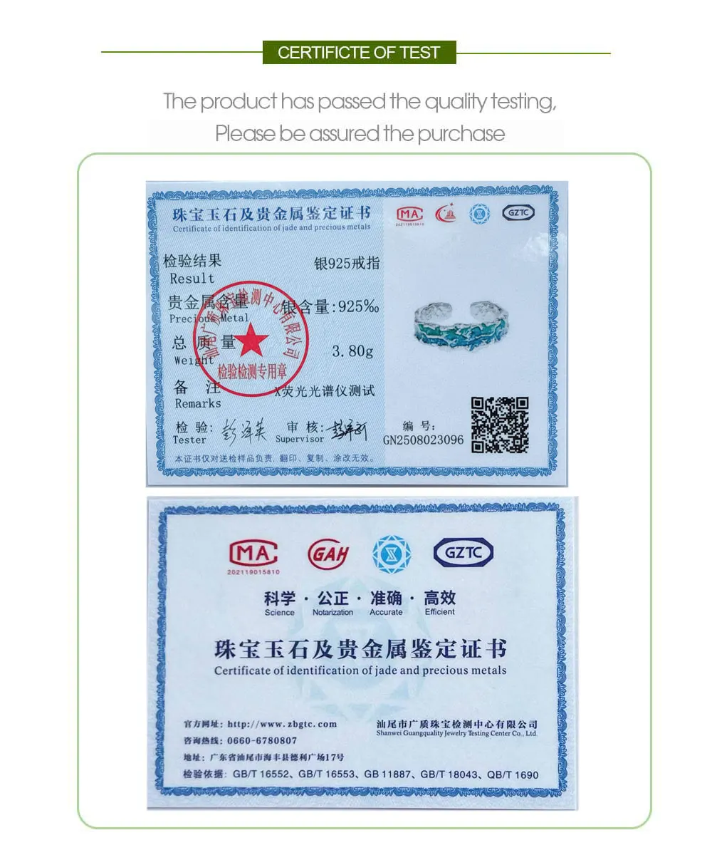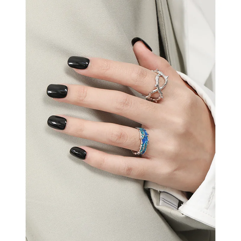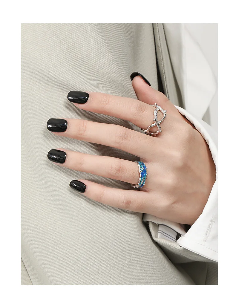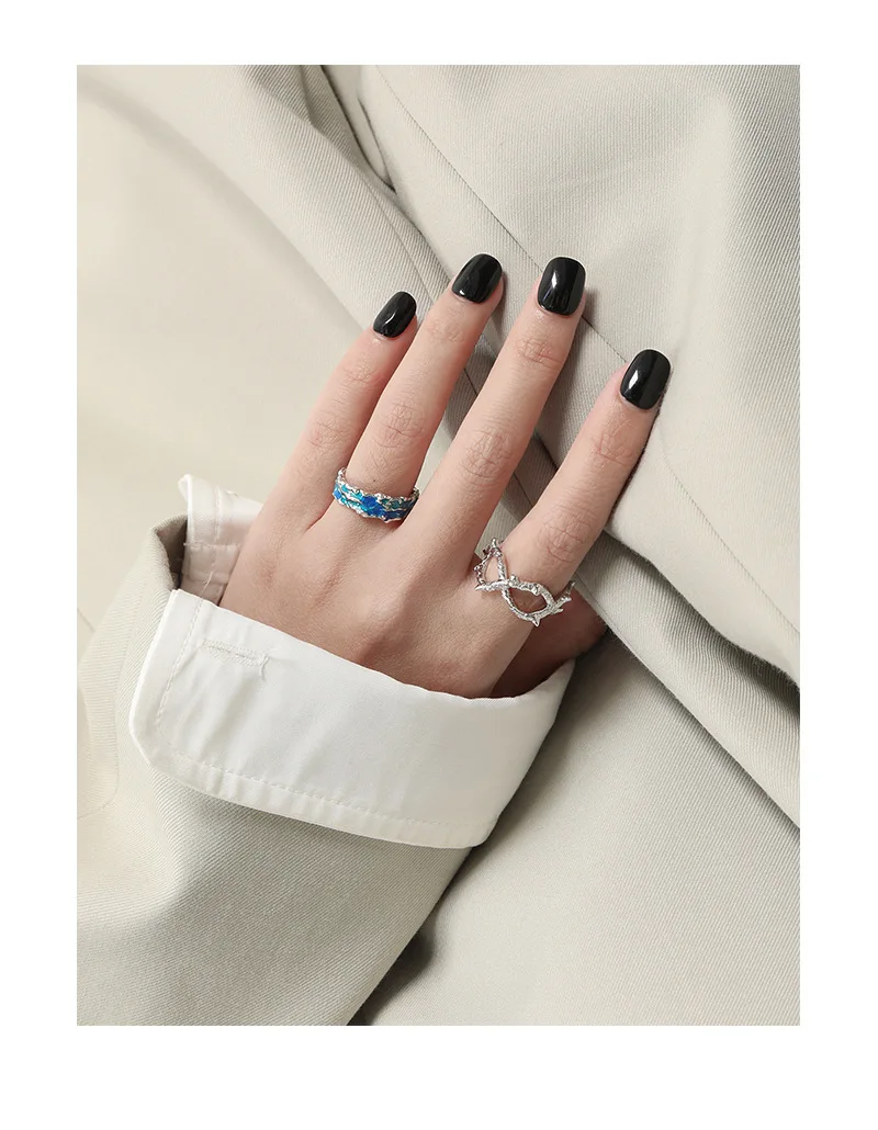 Jewel Type : F.I.N.S Original Texture Irregular 100% S925 Sterling Silver Open Ring Concave Convex Blue Green Enamel Resizable Finger Jewelry