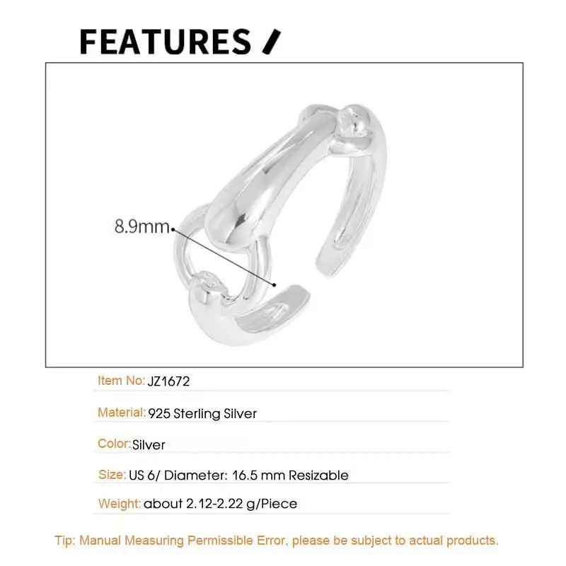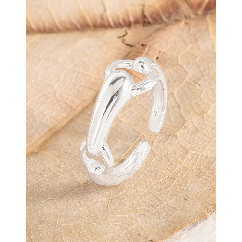 F.I.N.S Original Texture S925 Sterling Silver Opening Ring Circle Crossed Smooth Adjustable Finger Fine Jewelry Anti-Allergic