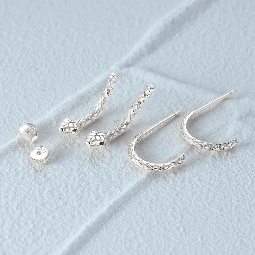 F.I.N.S Pure 925 Sterling Silver Snake Adjustable Stud Earrings Creative Piercing Cartilage Party Street Jewelry Prevent Allergy