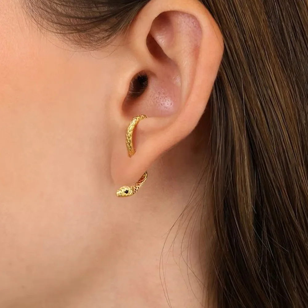 Jewel Type : F.I.N.S Pure 925 Sterling Silver Snake Adjustable Stud Earrings Creative Piercing Cartilage Party Street Jewelry Prevent Allergy