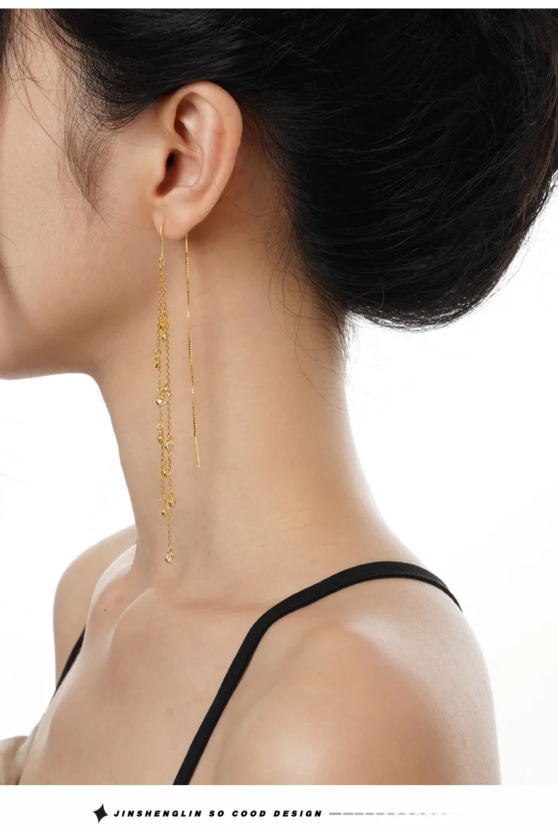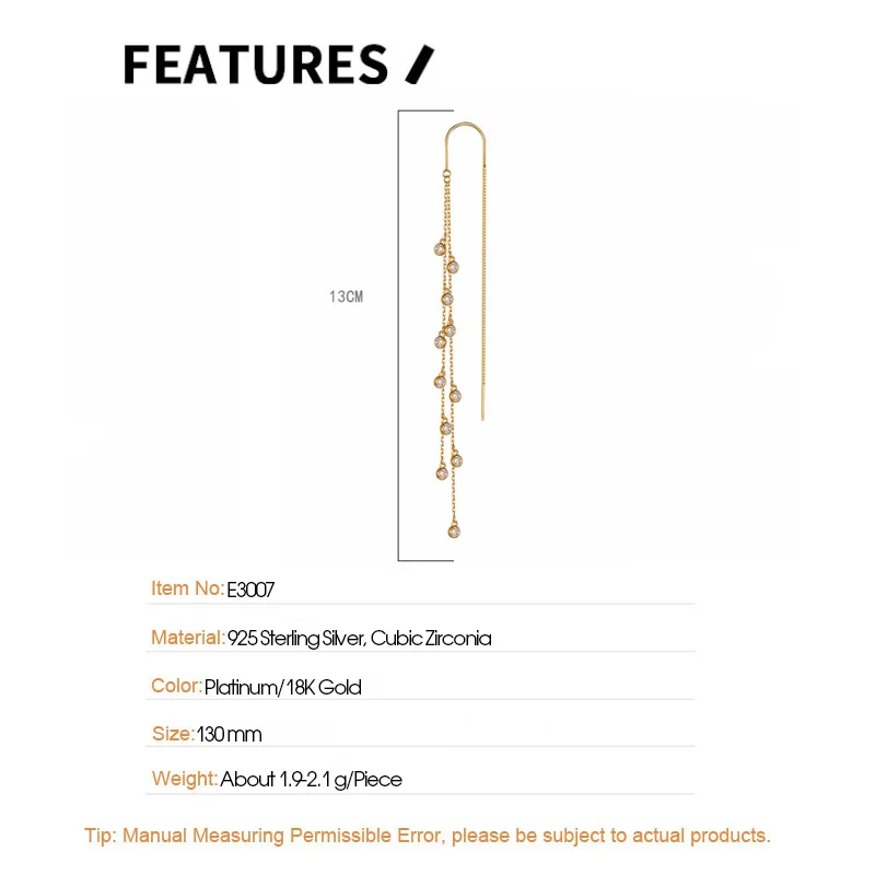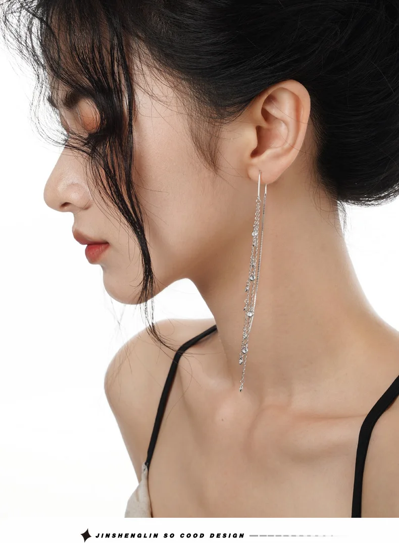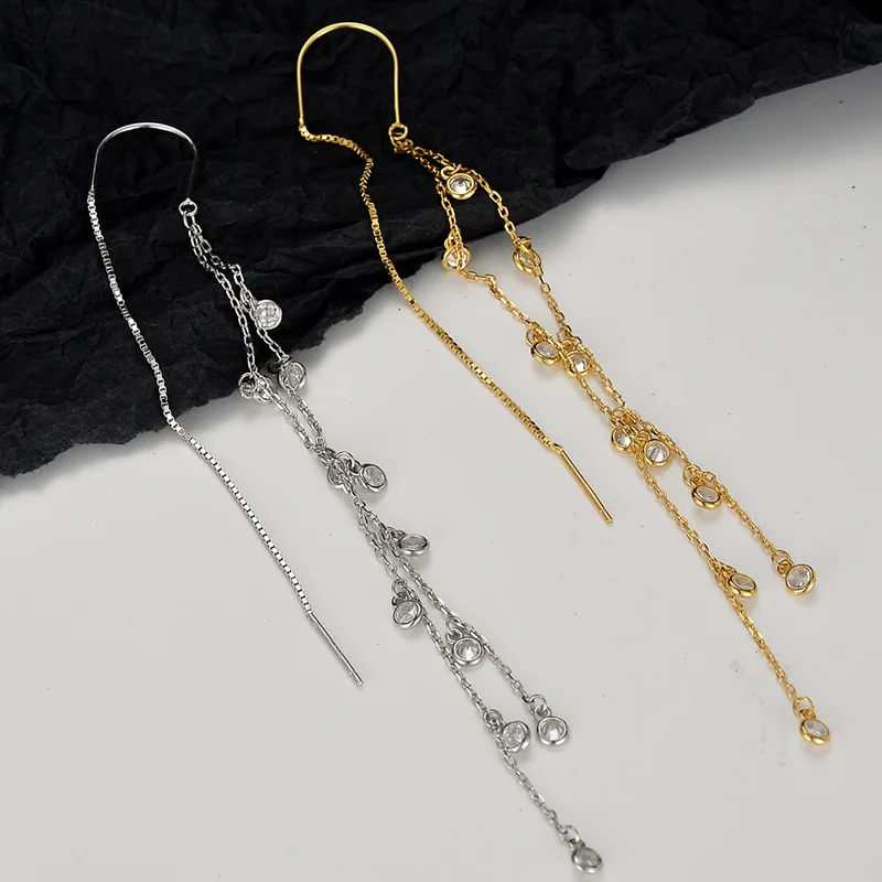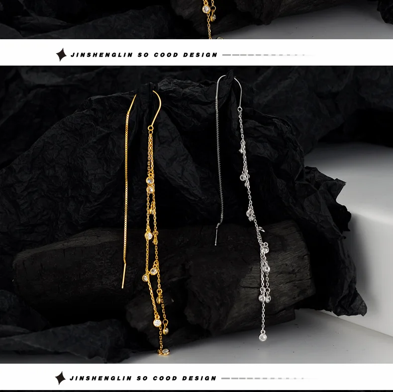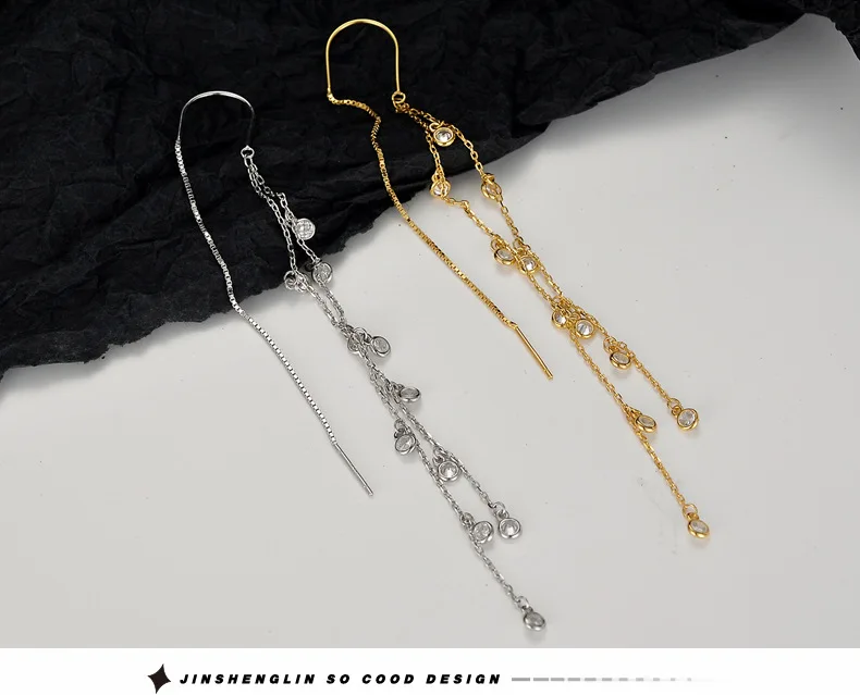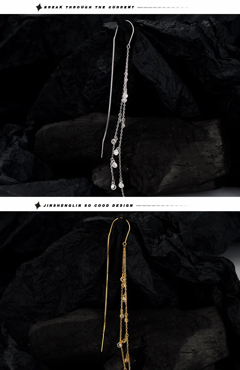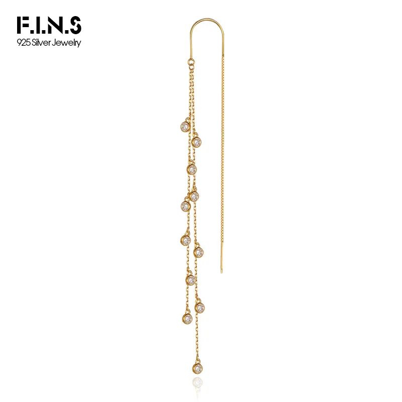 Jewel Type : F.I.N.S Pure S925 Sterling Silver Long Zircon Tassel Drop Earrings Luxury Hanging Pierced Ear Line Dangling Fine Jewelry