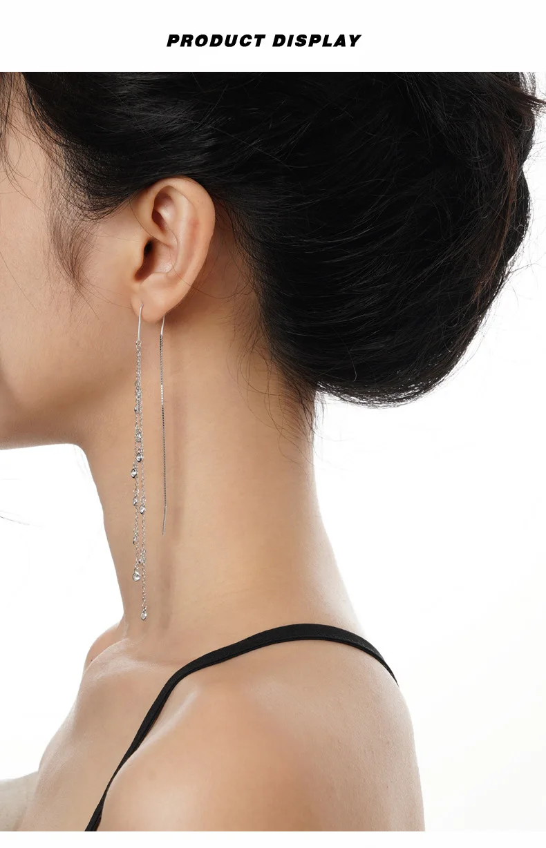 F.I.N.S Pure S925 Sterling Silver Long Zircon Tassel Drop Earrings Luxury Hanging Pierced Ear Line Dangling Fine Jewelry