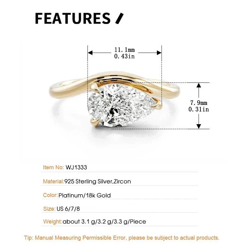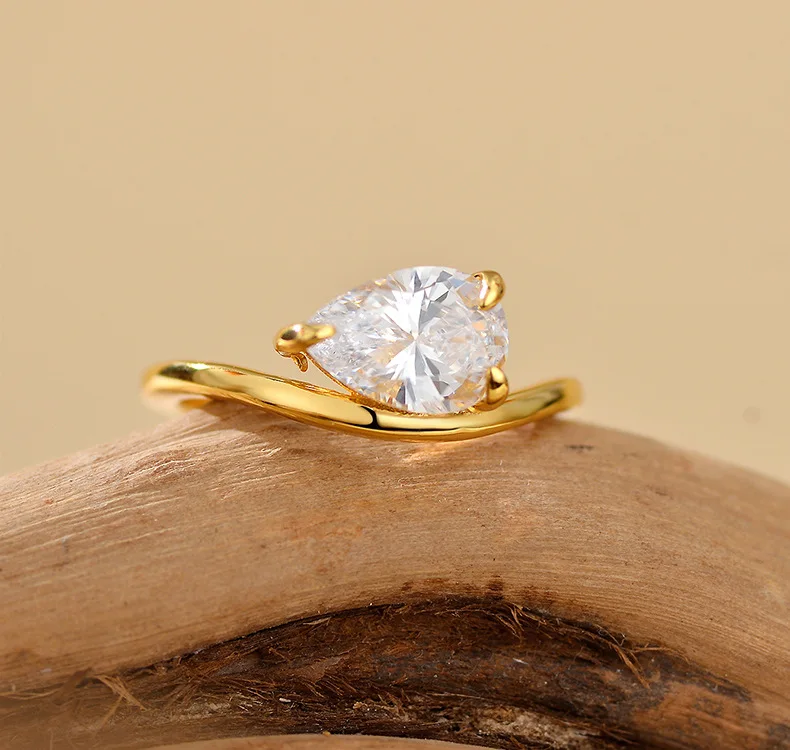Jewel Type : F.I.N.S S925 Sterling Silver Big Waterdrop Zircon Ring Wavy Plain Ring INS Fashion Minimalist Wedding Party Fine Jewelry Gifts