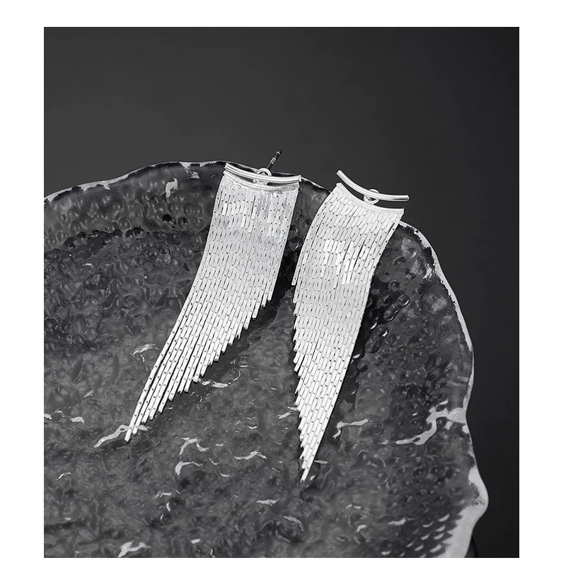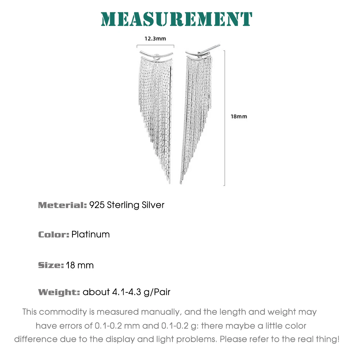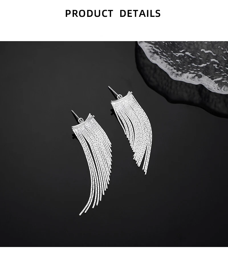F.I.N.S S925 Sterling Silver Long Tassel Drop Earrings Luxury Design Piercing Fringe Hanging Ear Studs Prevent Allergy Jewelry